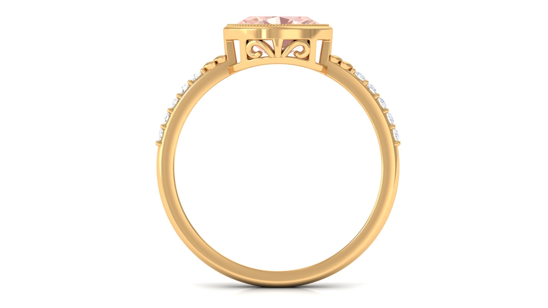 Standing the test of time, a Vintage Morganite Ring boasts ornate designs that are inspired by the Art Deco, Edwardian, and Victorian Eras. In a broader context, it features art-forward geometric patterns as well as intricate milgrain, filigree, and antique engravings that are brought to life with heavy metalwork. With the old-world vibe of these designs complementing the feminine appeal of Morganite, this Antique Morganite Ring offers you the best of both worlds.