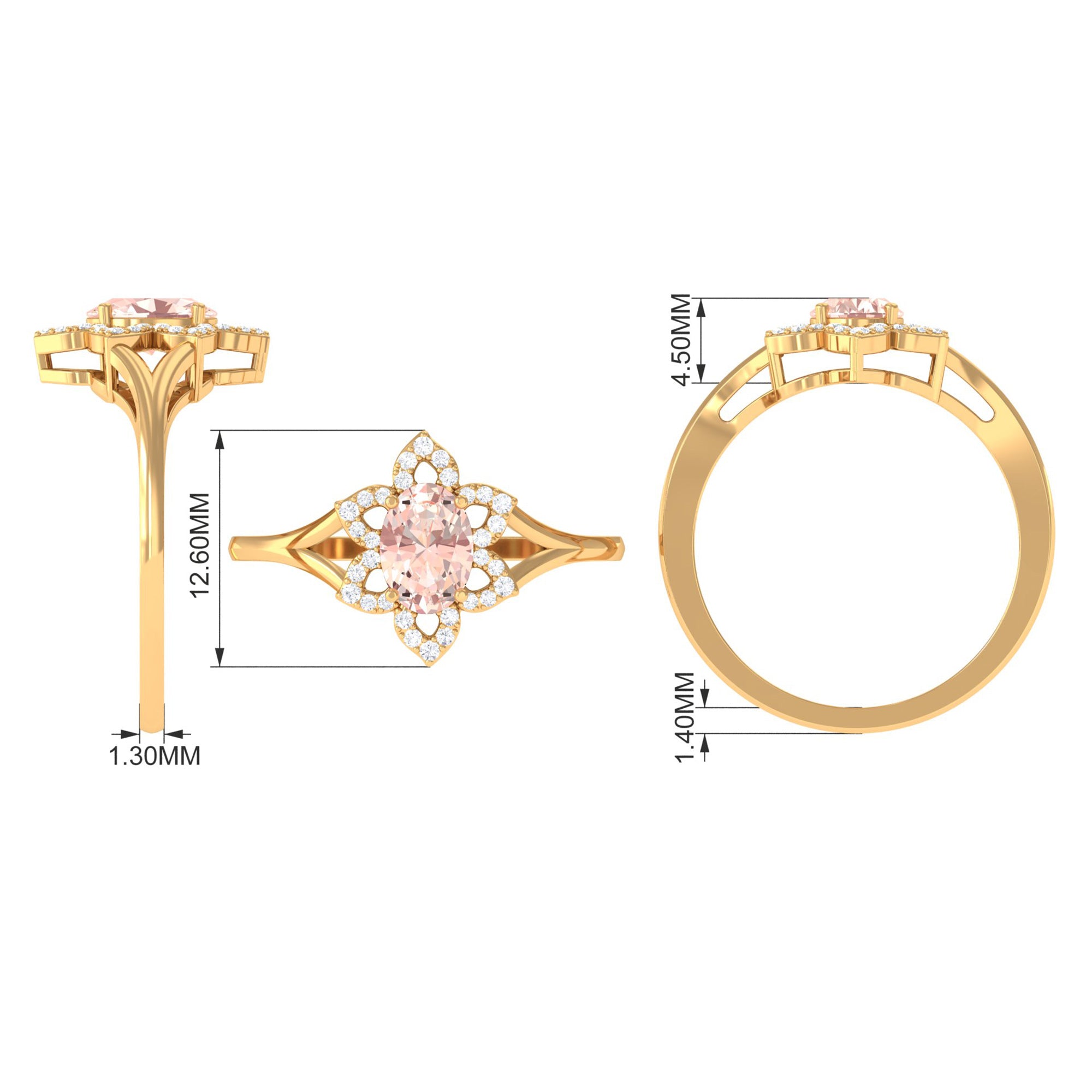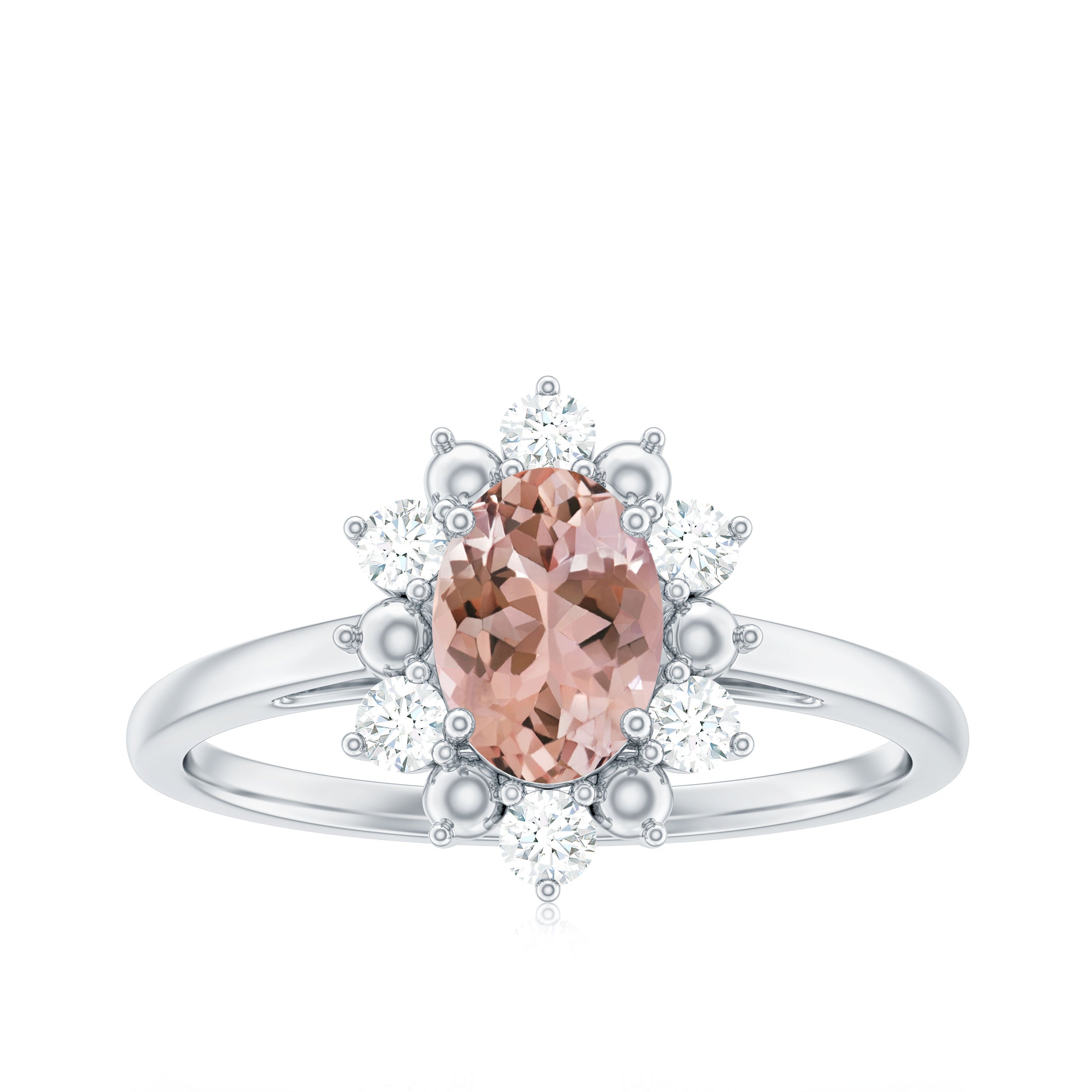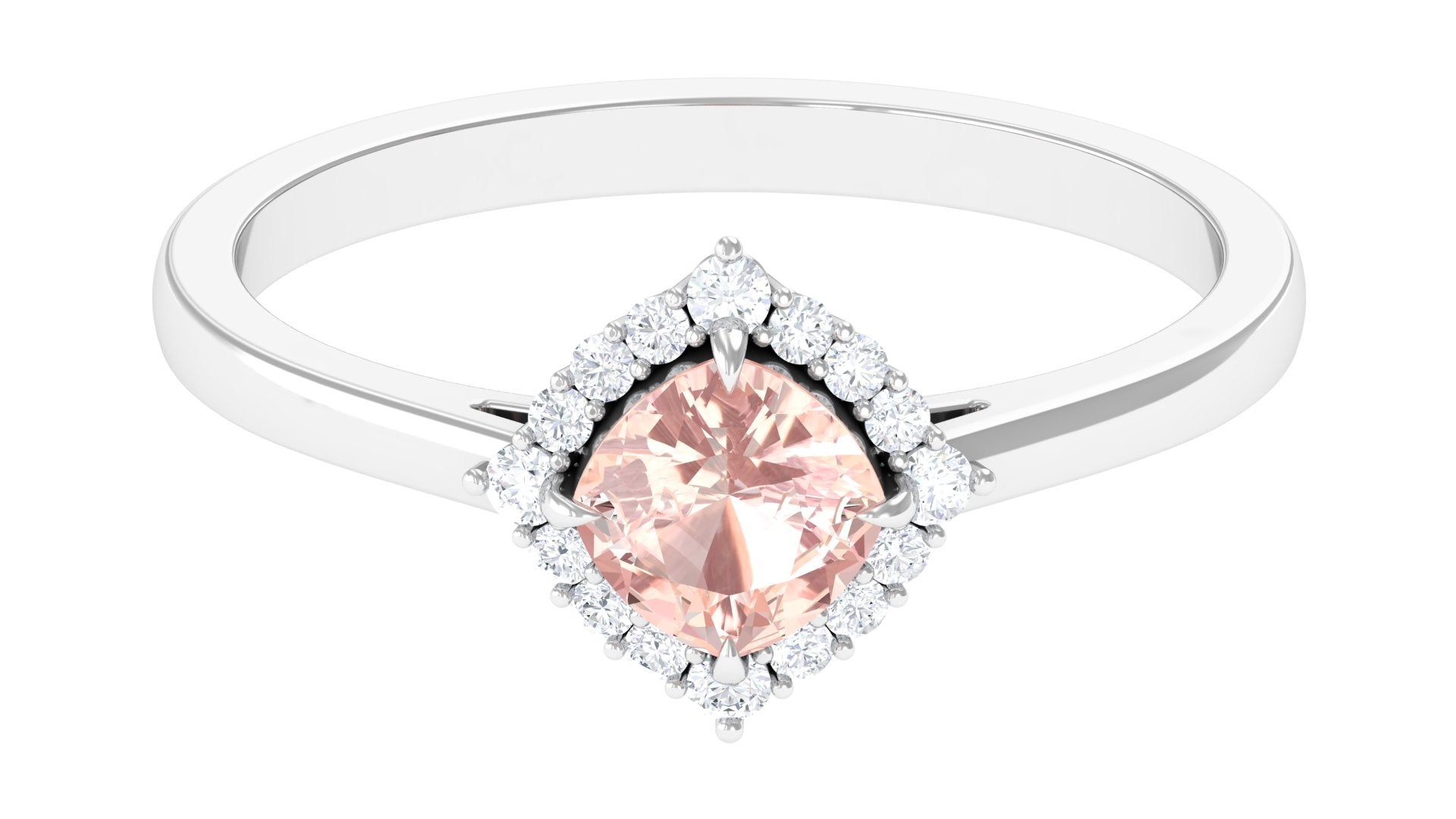 Lending a sparkling visual appeal to the conventional solitaire style, a Halo Ring encircles the center Morganite with a shimmering loop of Diamond/Moissanite. The Halo effortlessly draws more attention to the beauty of your Morganite by making it appear larger (while saving your precious bucks). So if you’re all about the glitz and glam, a Halo Style Morganite Engagement Ring might be a great fit for you.