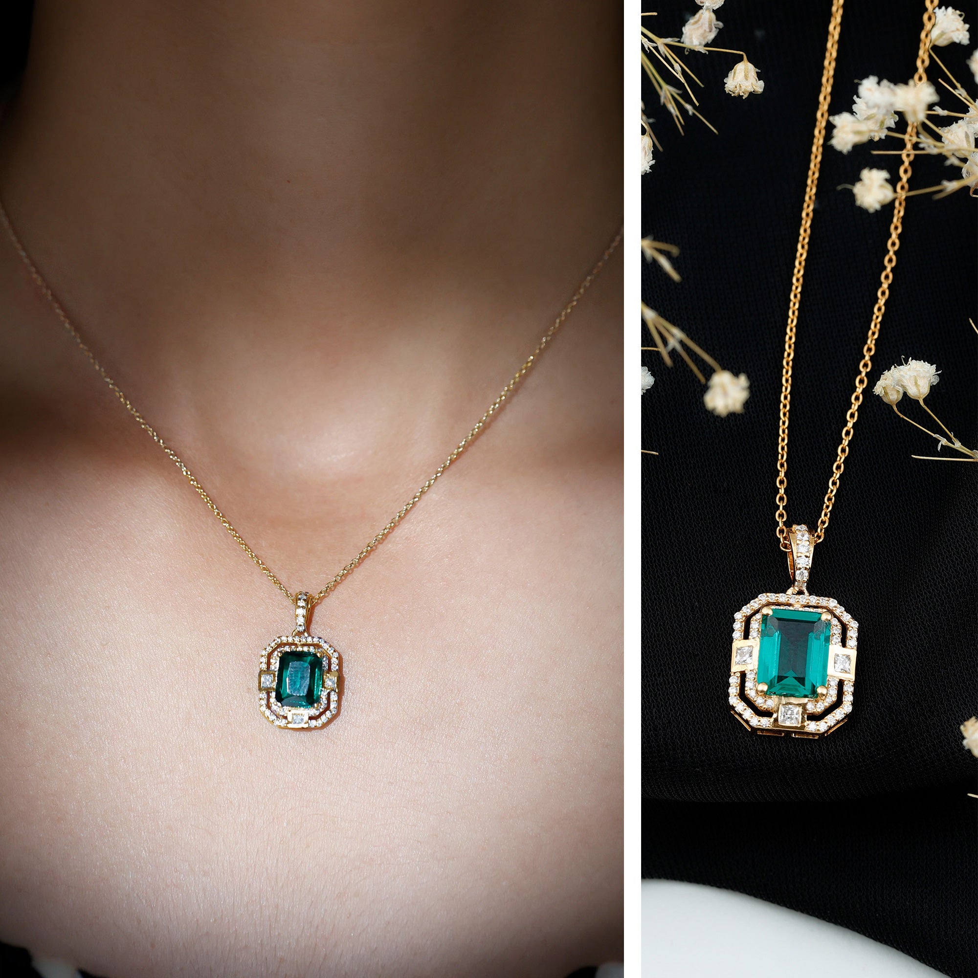 Emerald: Emerald symbolizing renewal, growth, and prosperity are lush green gems for necklaces. Green emeralds are royal pieces for every jewelry lover.