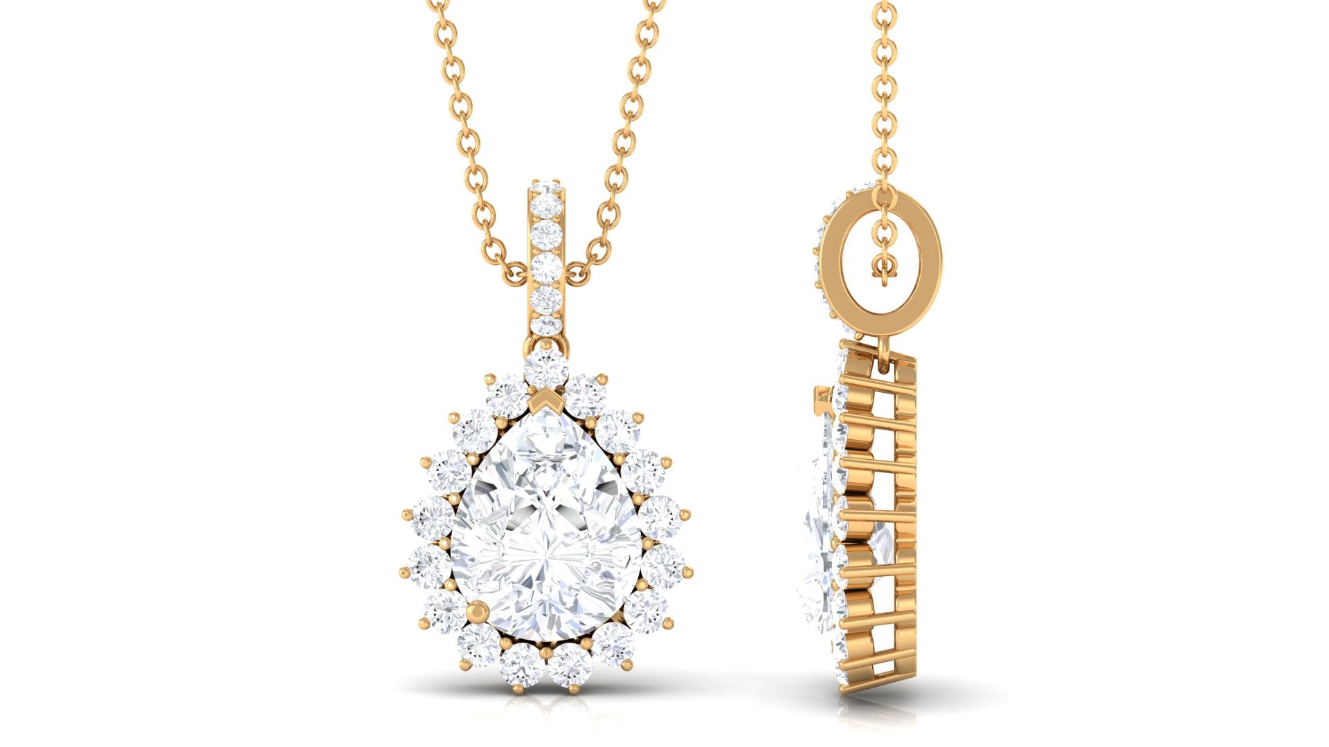 Halo Necklace: Halo necklaces are for those who love extra sparkle in their necklaces, besides the shine of single gemstone. Central gemstone is surrounded by dainty shining or colored gemstones of different shapes to make different designs. Elegant and eye-catching, these necklaces are statement pieces for your every moment.