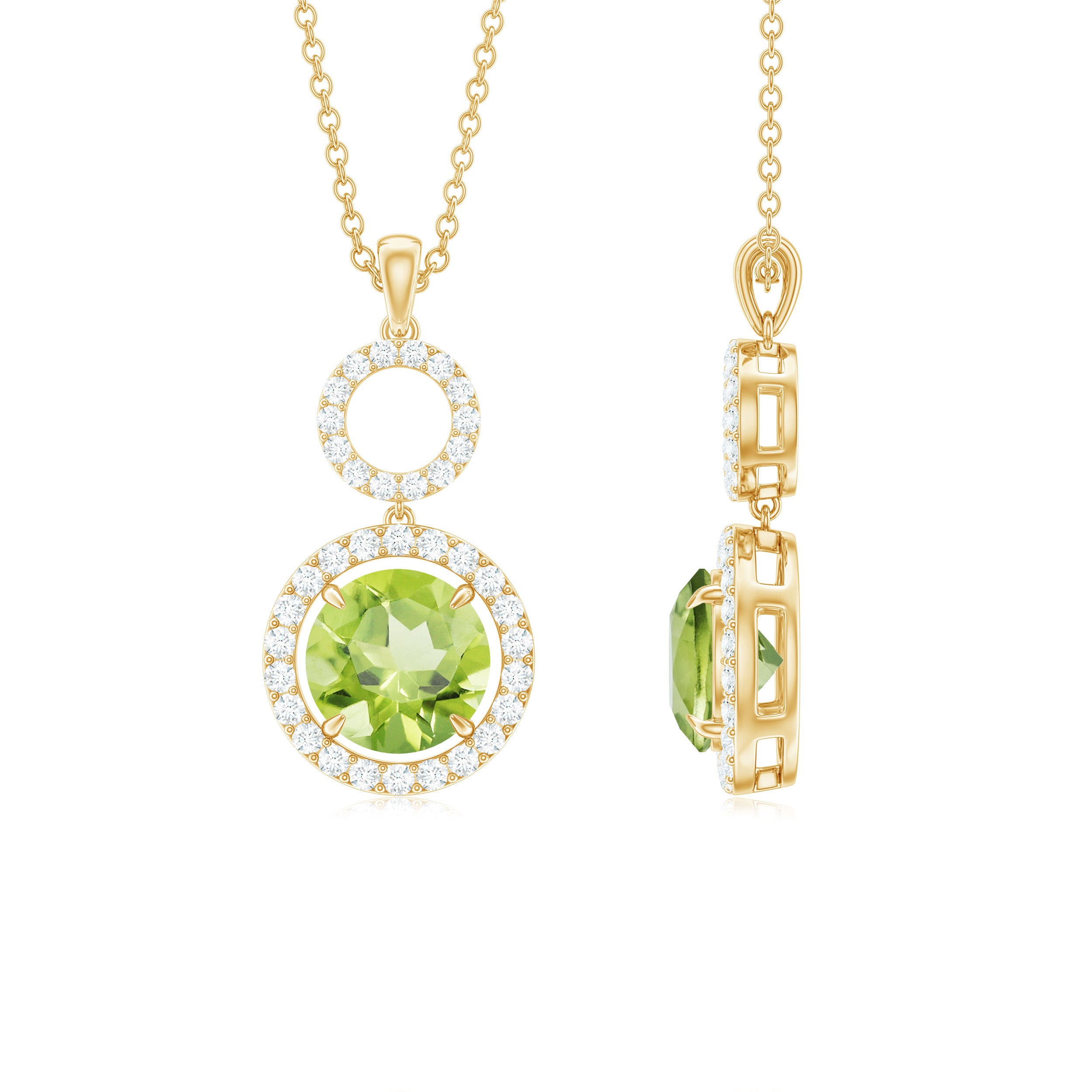 Halo Necklace: Halo necklaces are for those who love extra sparkle in their necklaces, besides the shine of single gemstone. Central gemstone is surrounded by dainty shining or colored gemstones of different shapes to make different designs. Elegant and eye-catching, these necklaces are statement pieces for your every moment.