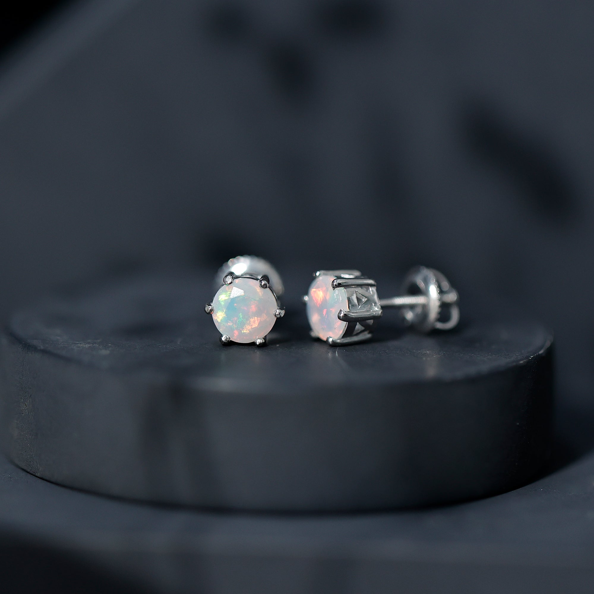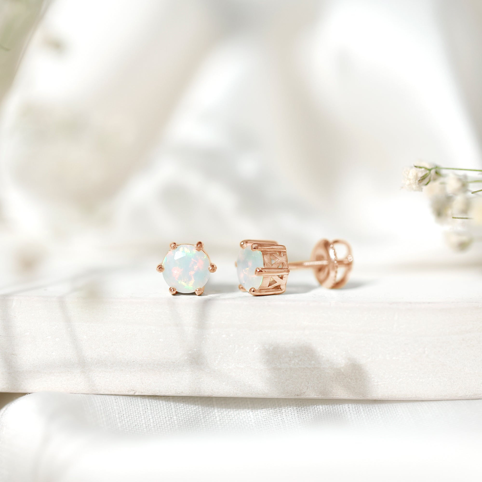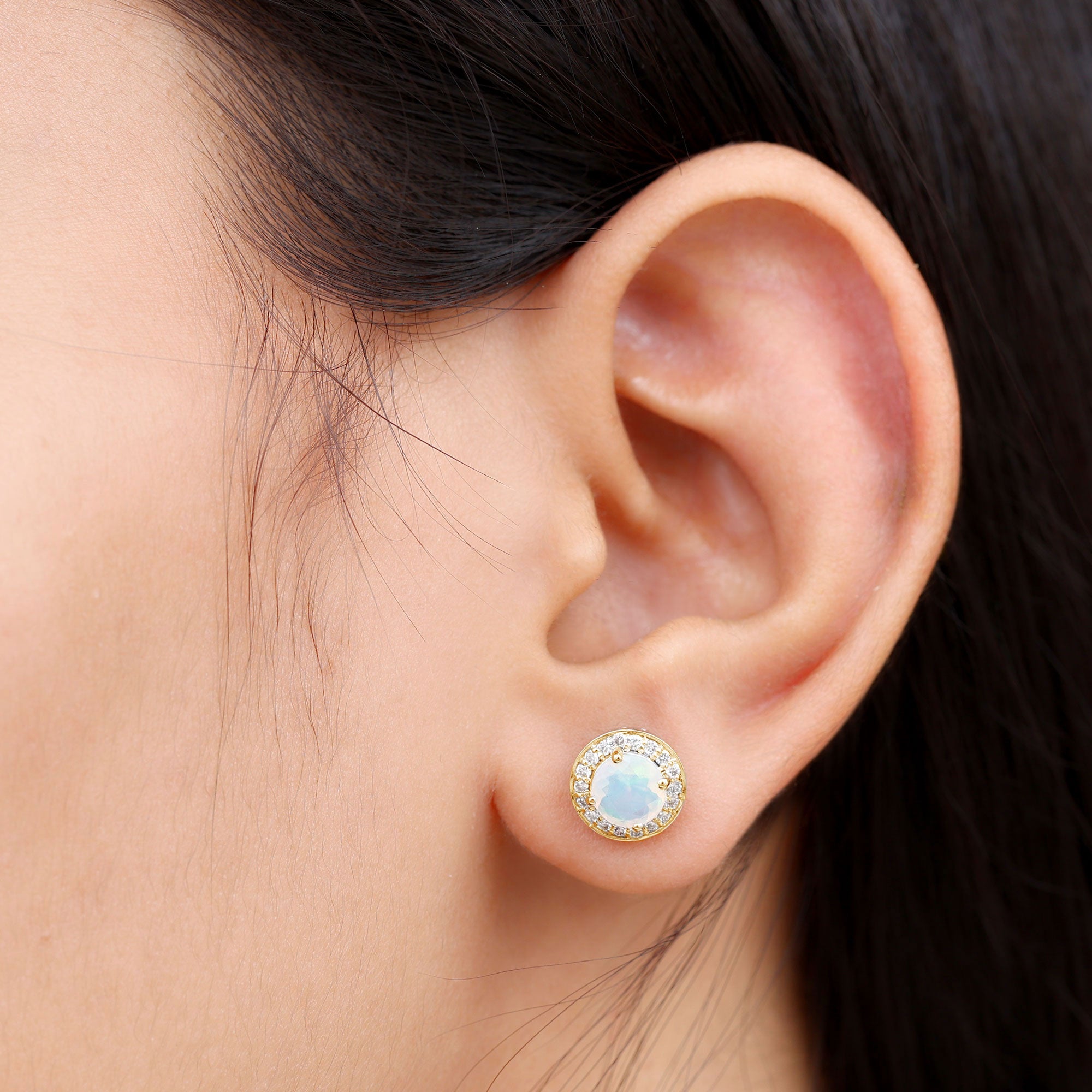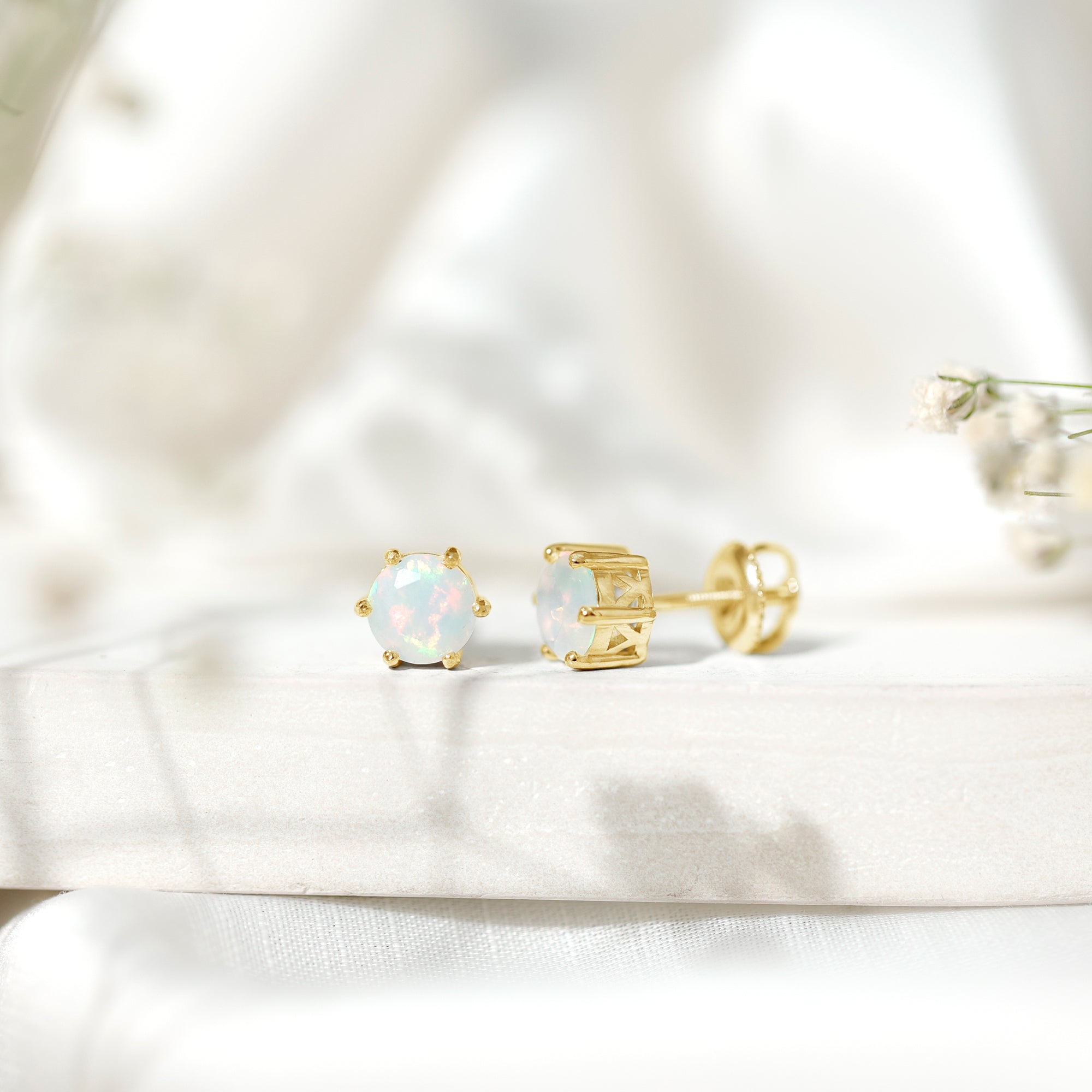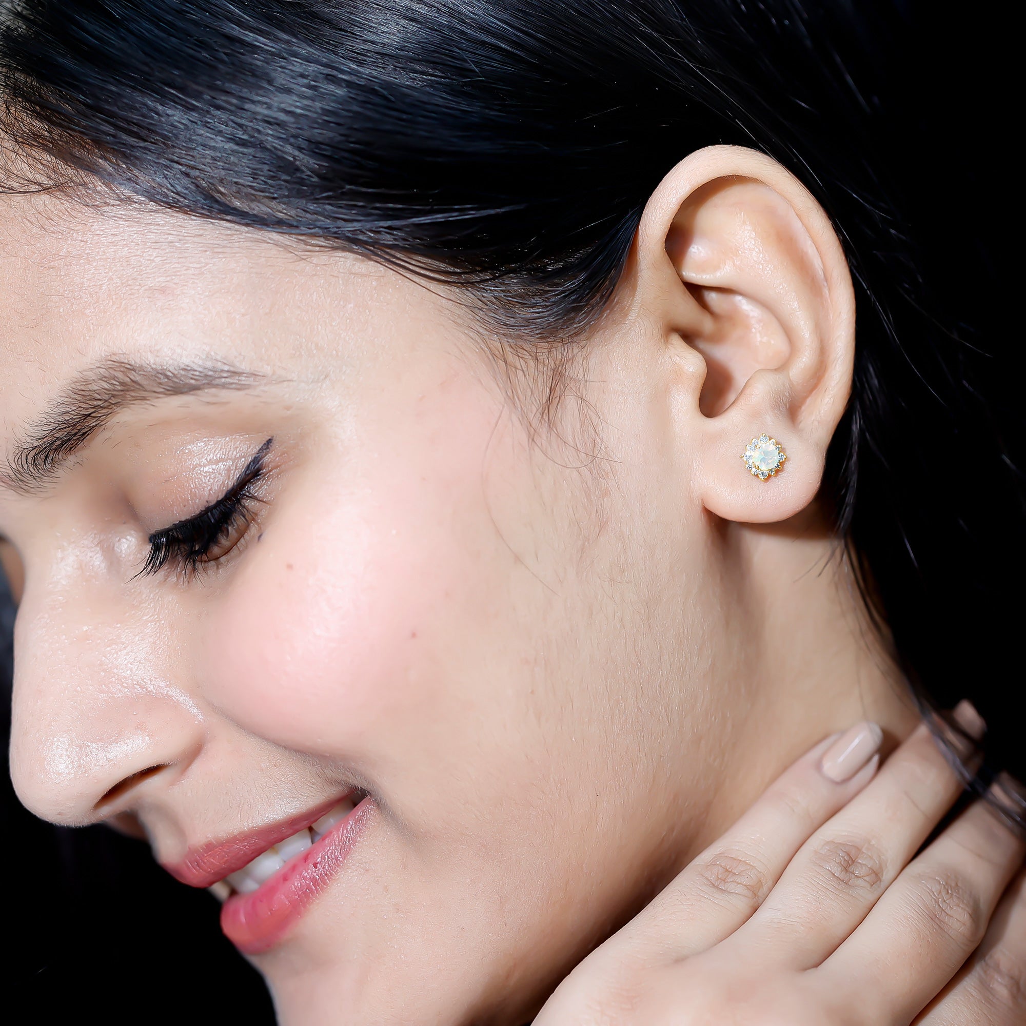Meant to be flaunted every day, Genuine Opal Stud Earrings are worn directly through the earlobe (often secured by a screw, latch, or butterfly post back). To effortlessly lend their classic and minimalist style an eye-catching colorful touch, they are adorned with the Centerpiece of Ethiopian Opal. The best part? You could go from teaming up these Opal Gold Stud Earrings with your work ensembles or complement your fancy attires with their understated appeal, they know how to fit with every look.