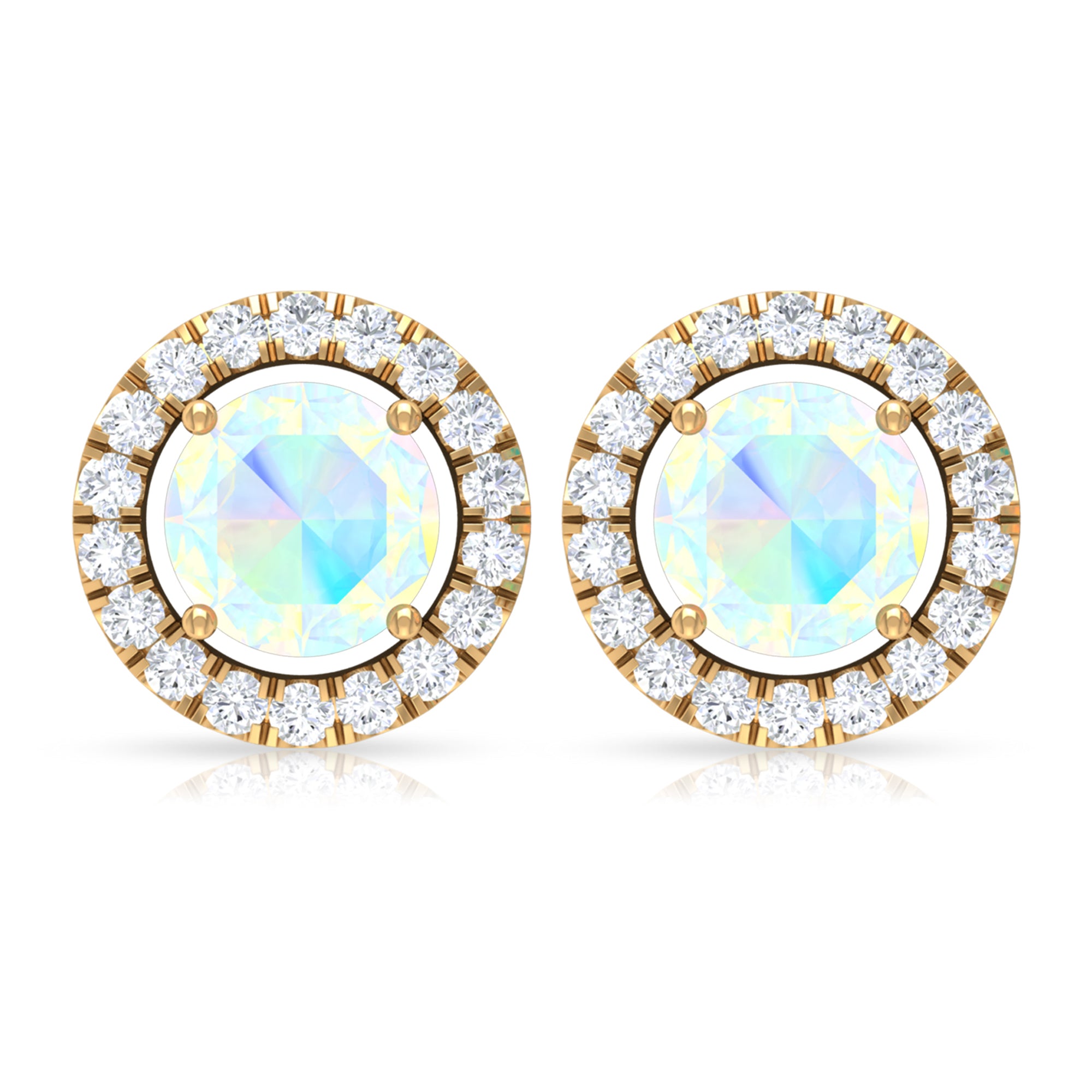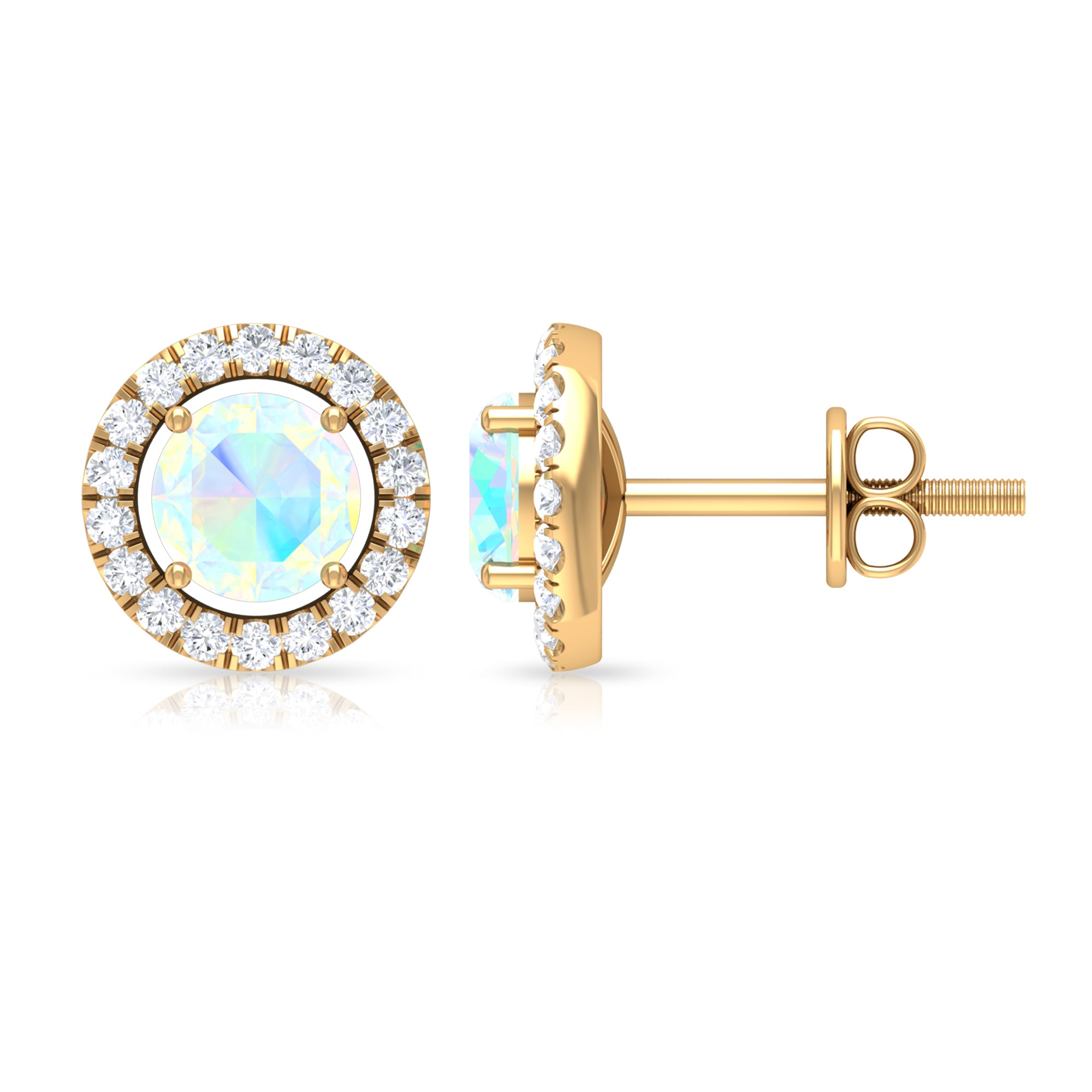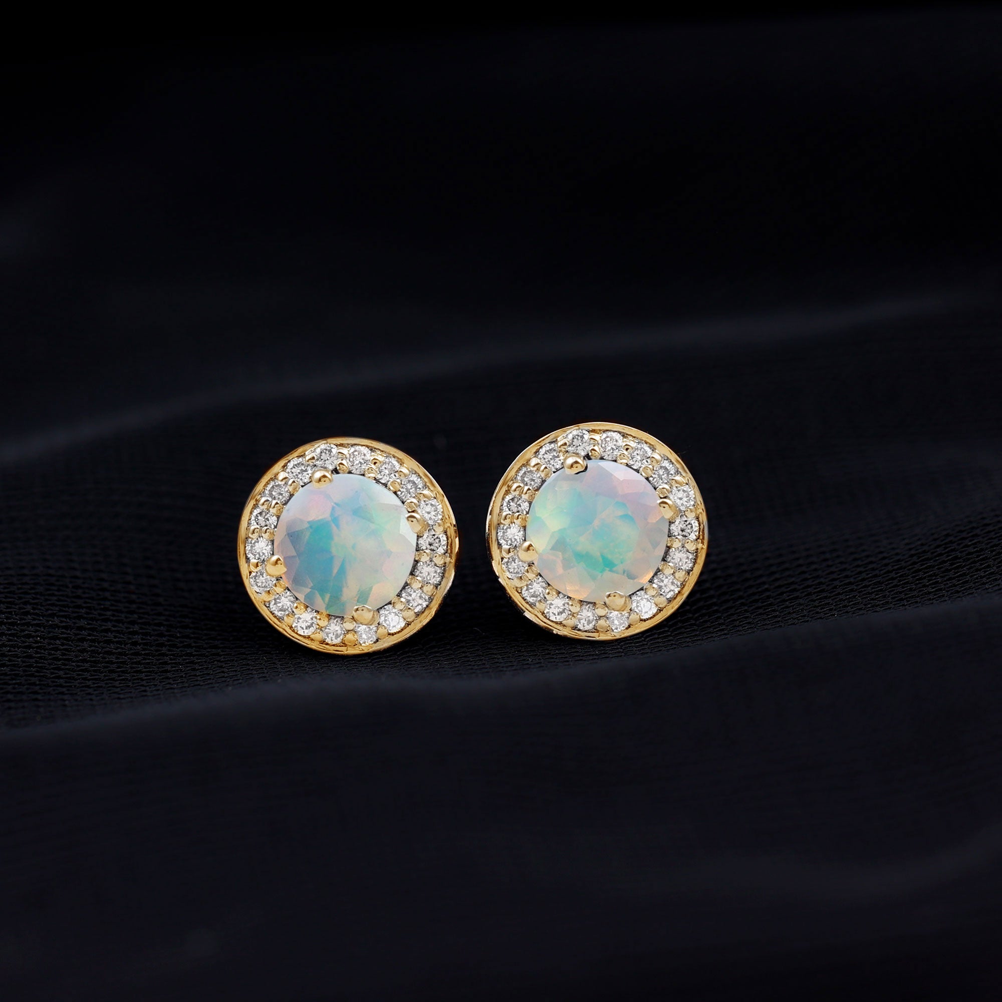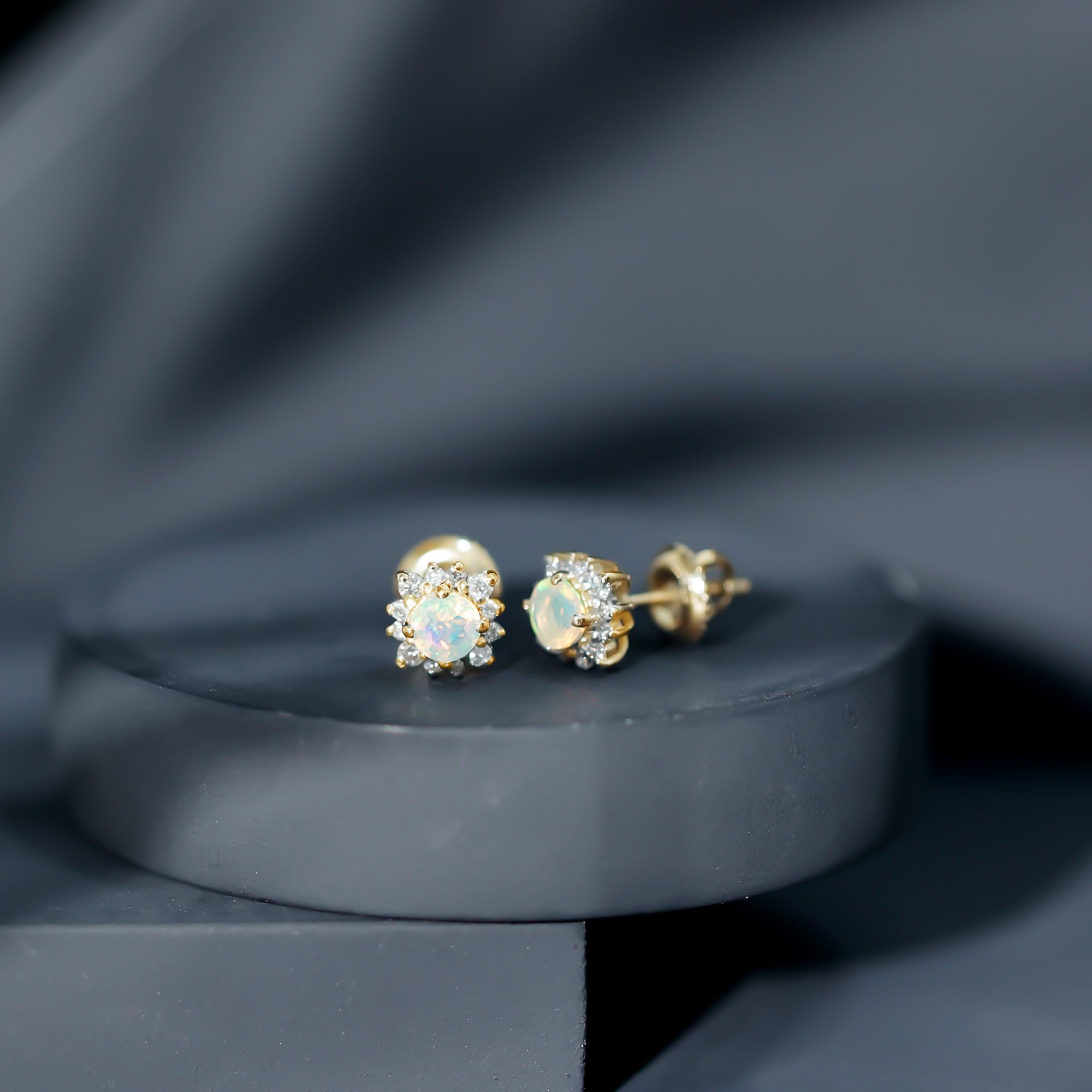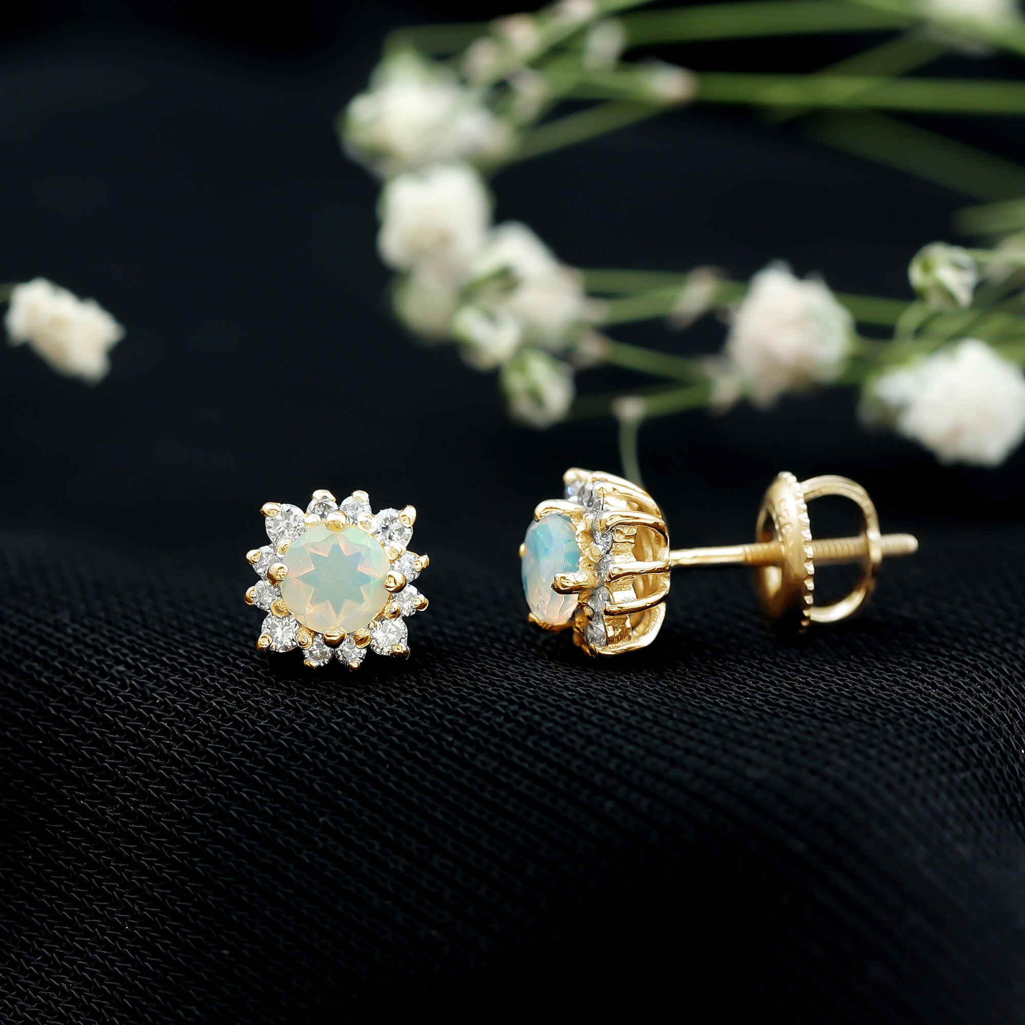 Meant to be flaunted every day, Genuine Opal Stud Earrings are worn directly through the earlobe (often secured by a screw, latch, or butterfly post back). To effortlessly lend their classic and minimalist style an eye-catching colorful touch, they are adorned with the Centerpiece of Ethiopian Opal. The best part? You could go from teaming up these Opal Gold Stud Earrings with your work ensembles or complement your fancy attires with their understated appeal, they know how to fit with every look.