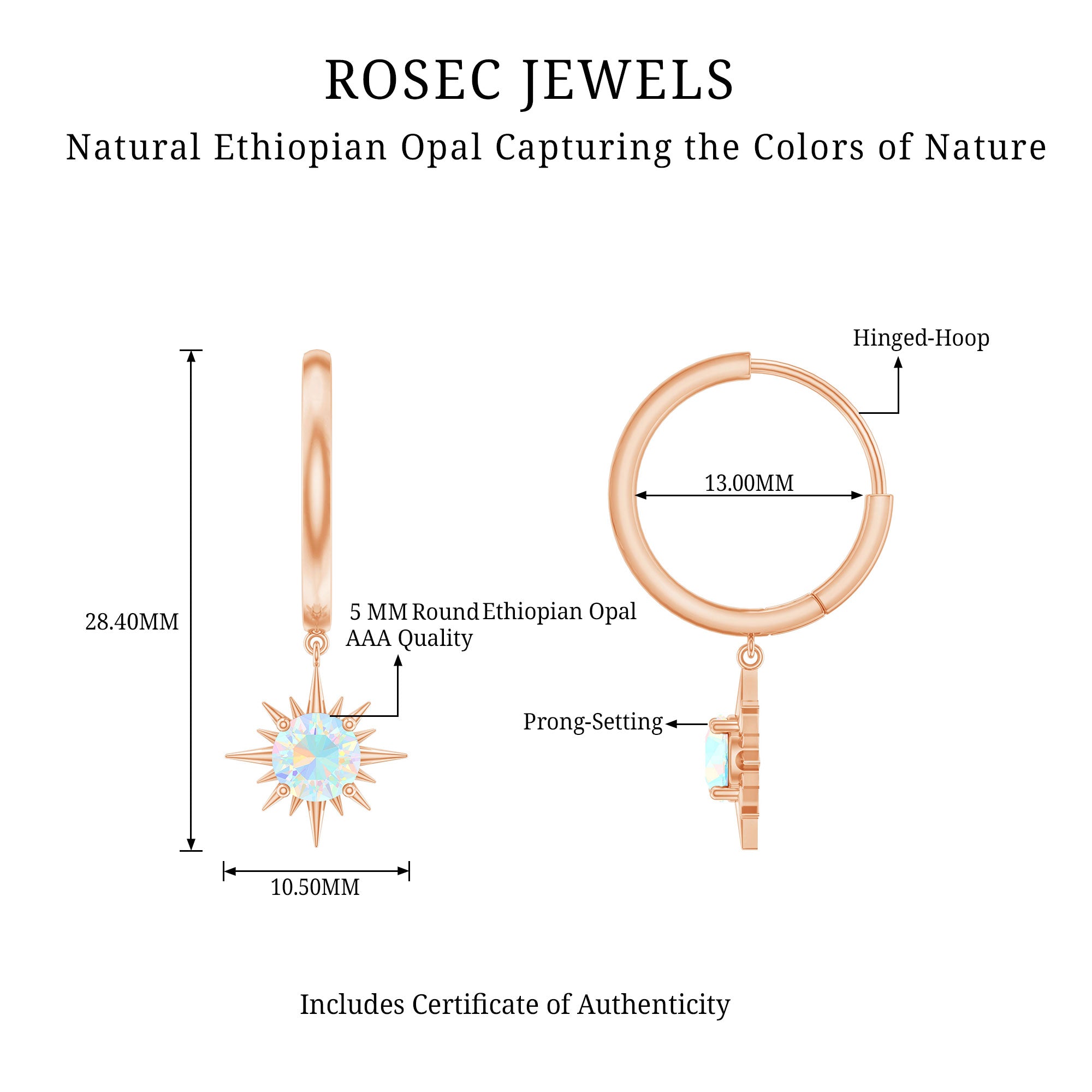 Chic and timeless, Gold Opal Hoop Earrings hang from the earlobe in a circular or semi-circular shape while emphasizing on the enchanting Centerpiece of Ethiopian Opal. Whether you’re looking for something that makes a formal statement at work or an edgy accessory for a casual day out, Opal Hoops are the perfect way forward!