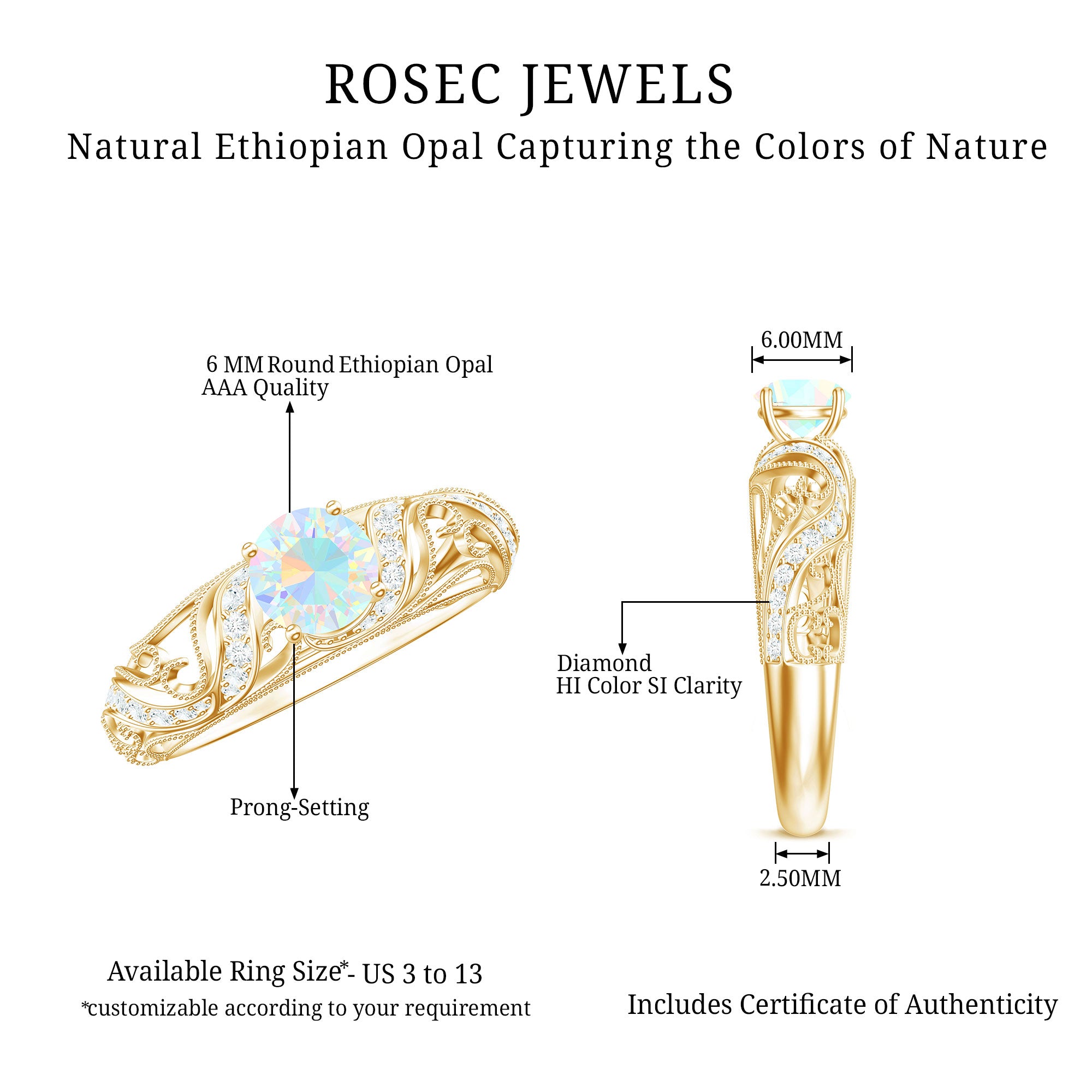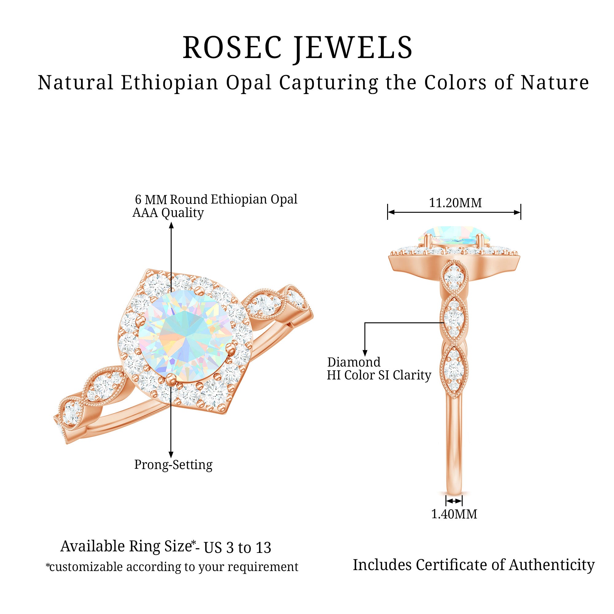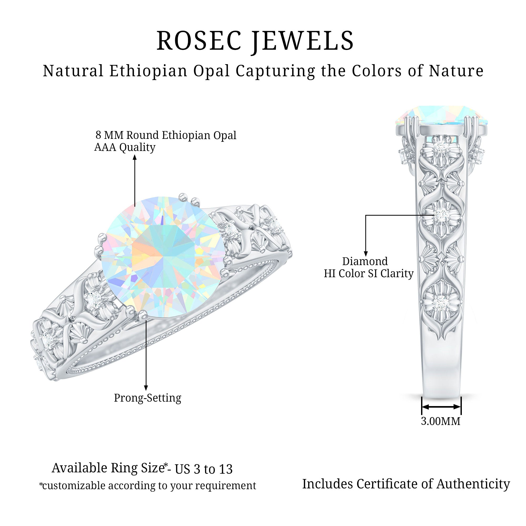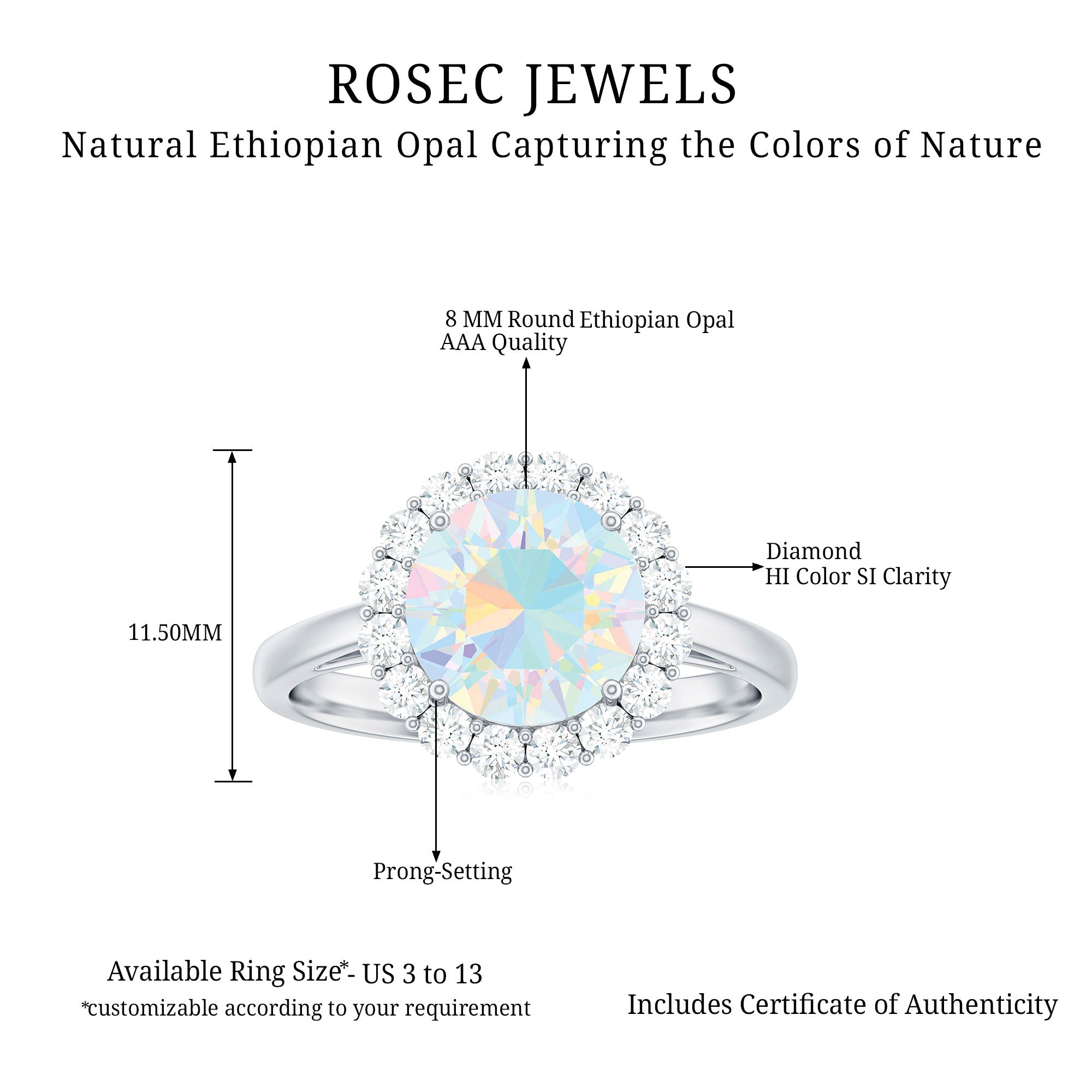 Our natural opal rings are available online at Rosec Jewels are authentic, ethically sourced, and come with a certificate. Explore the wide range and various designs of real opal rings like solitaire, halo, vintage-inspired, and others. Ethiopian opal rings have rainbow colors and look more beautiful with diamond and Moissanite.