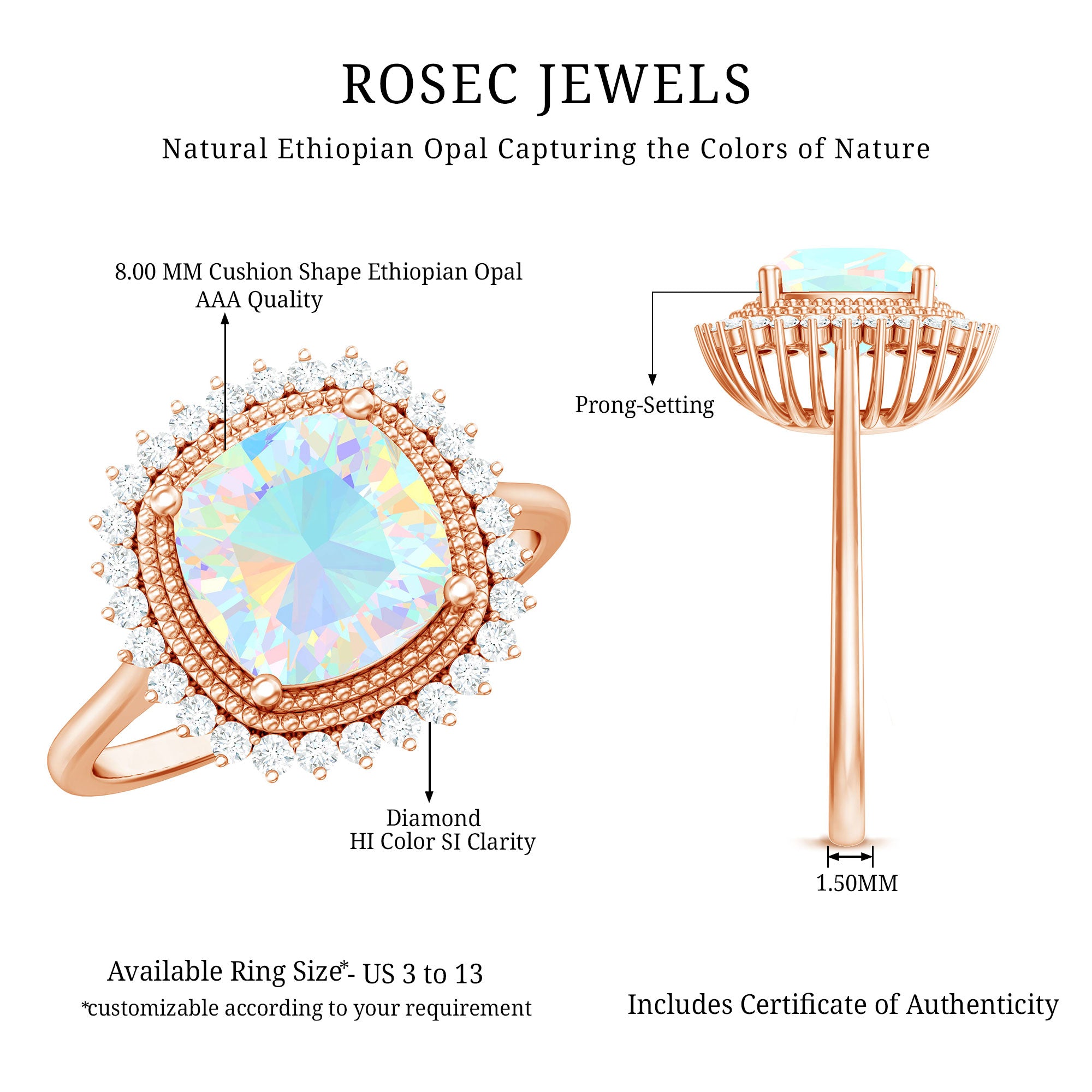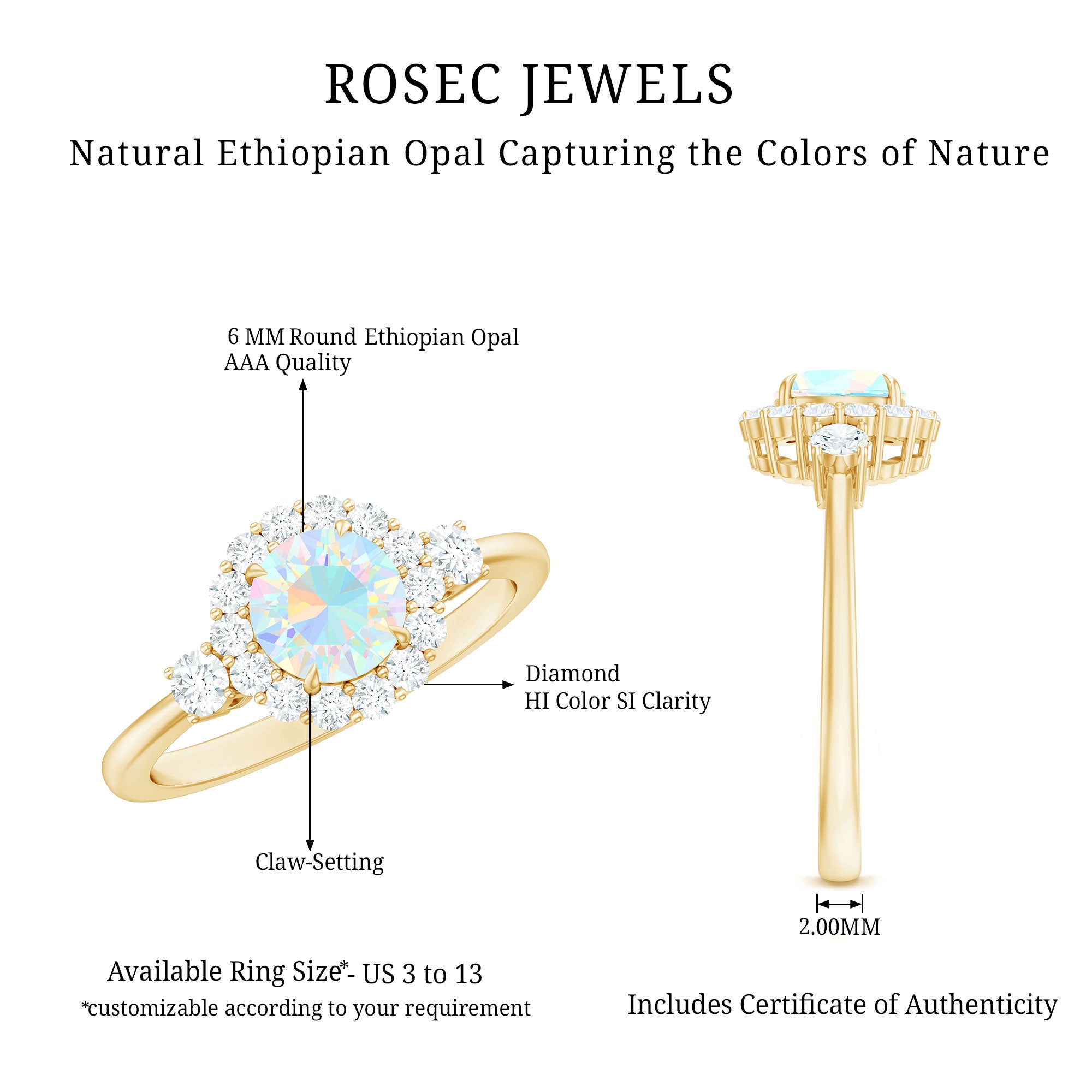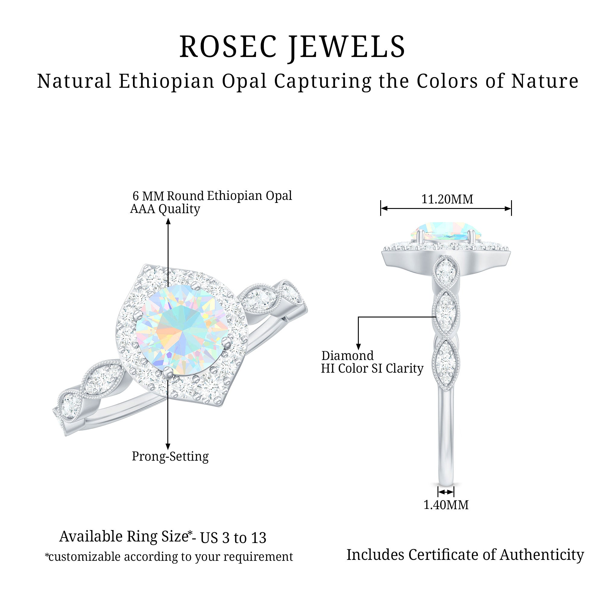 Our natural opal rings are available online at Rosec Jewels are authentic, ethically sourced, and come with a certificate. Explore the wide range and various designs of real opal rings like solitaire, halo, vintage-inspired, and others. Ethiopian opal rings have rainbow colors and look more beautiful with diamond and Moissanite.