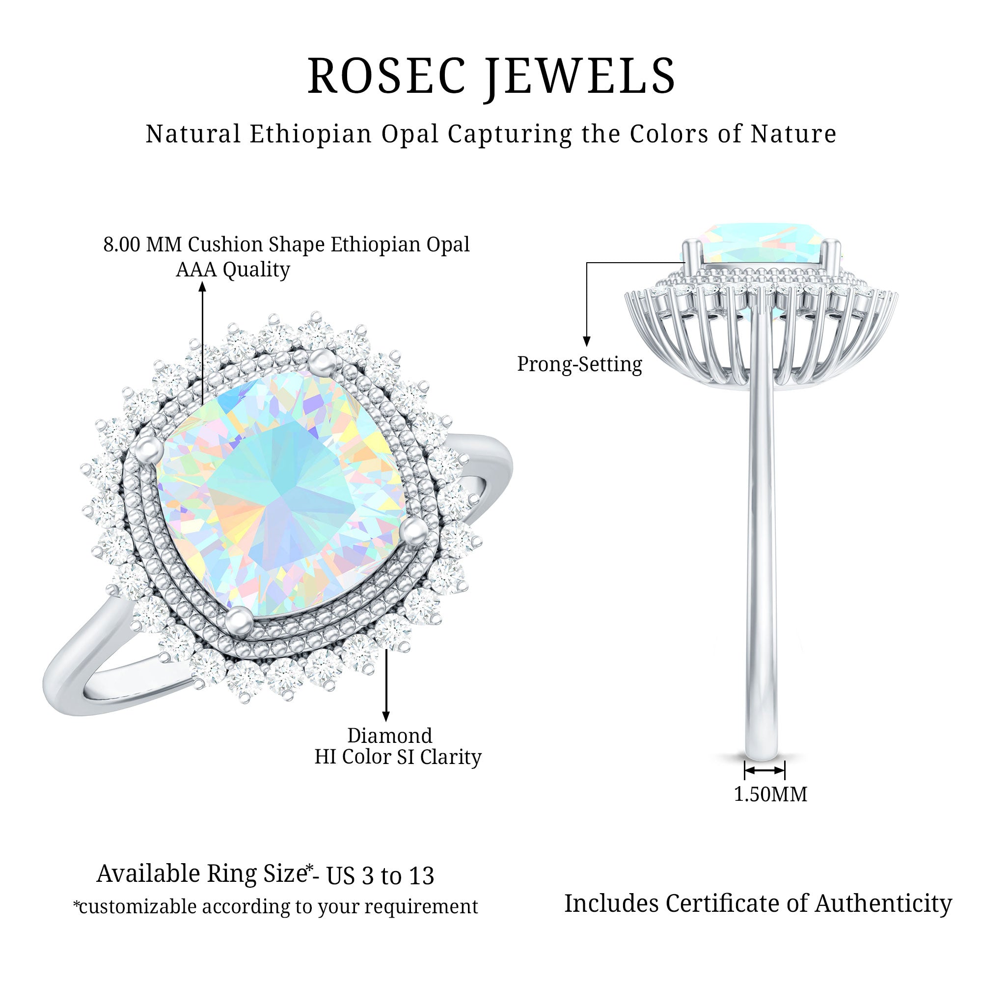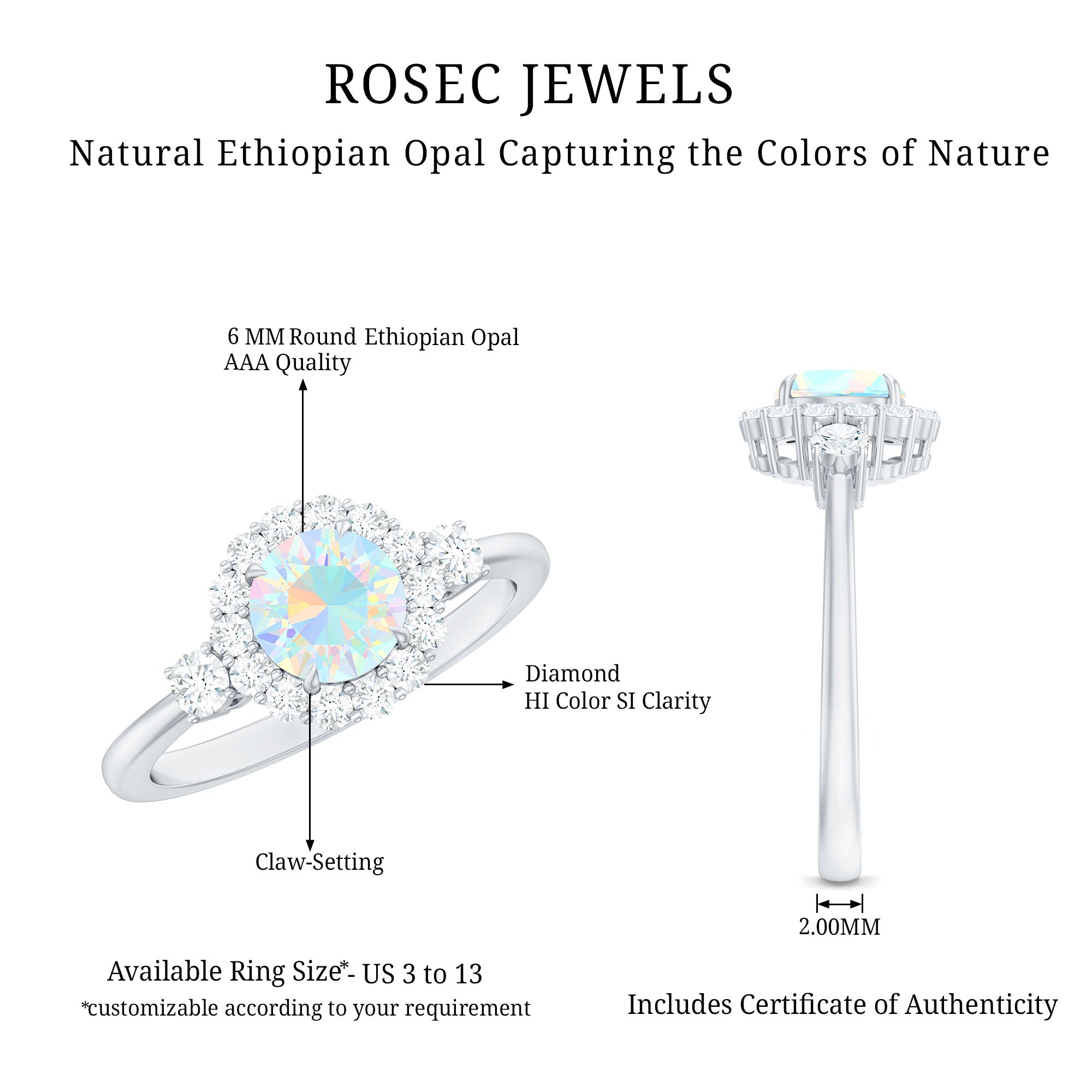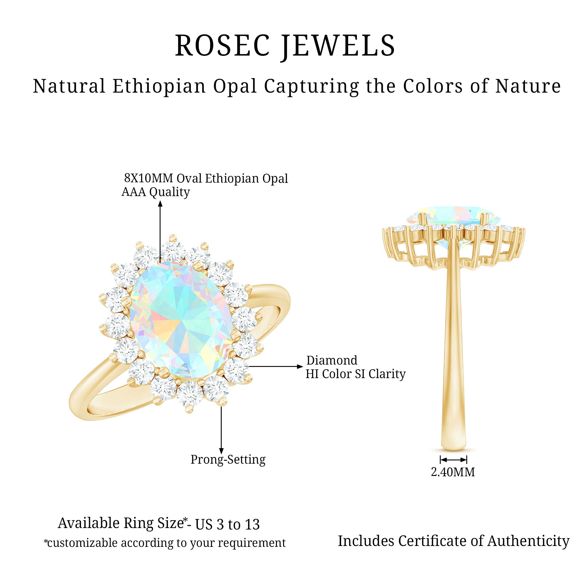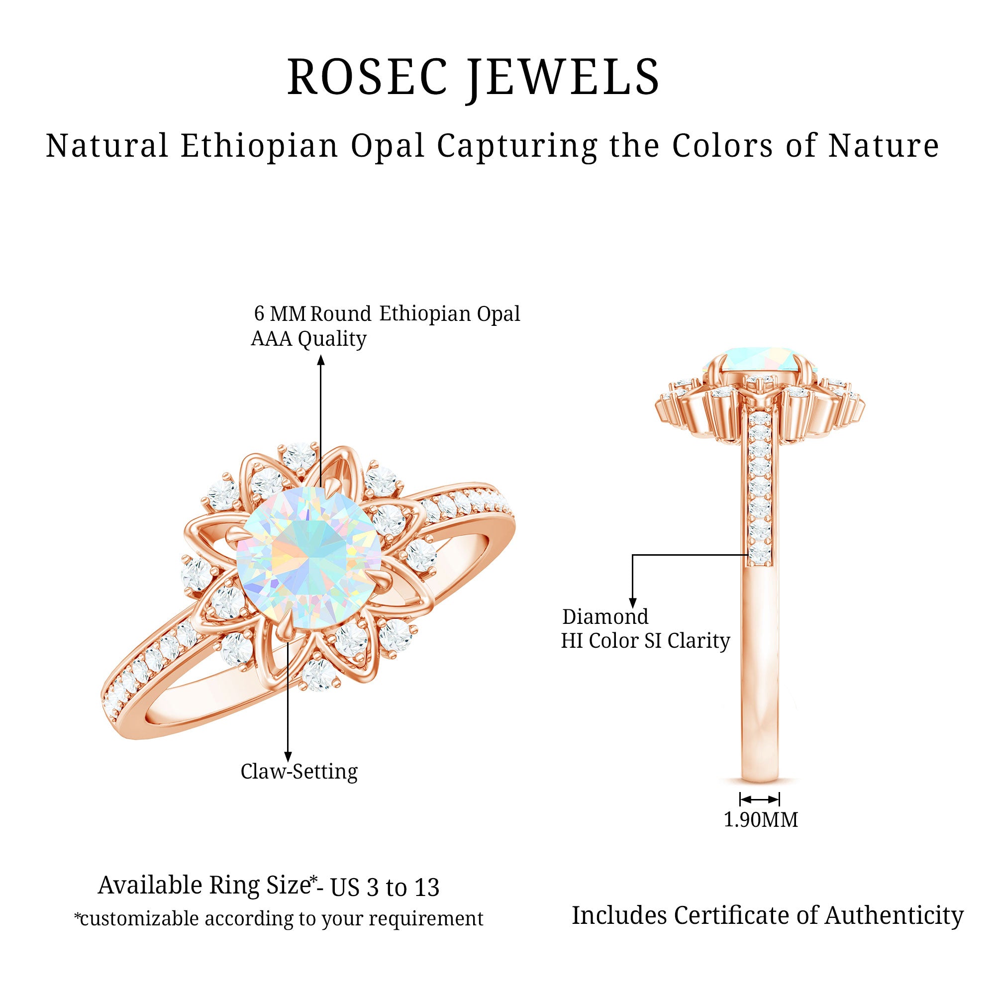 Our natural opal rings are available online at Rosec Jewels are authentic, ethically sourced, and come with a certificate. Explore the wide range and various designs of real opal rings like solitaire, halo, vintage-inspired, and others. Ethiopian opal rings have rainbow colors and look more beautiful with diamond and Moissanite.