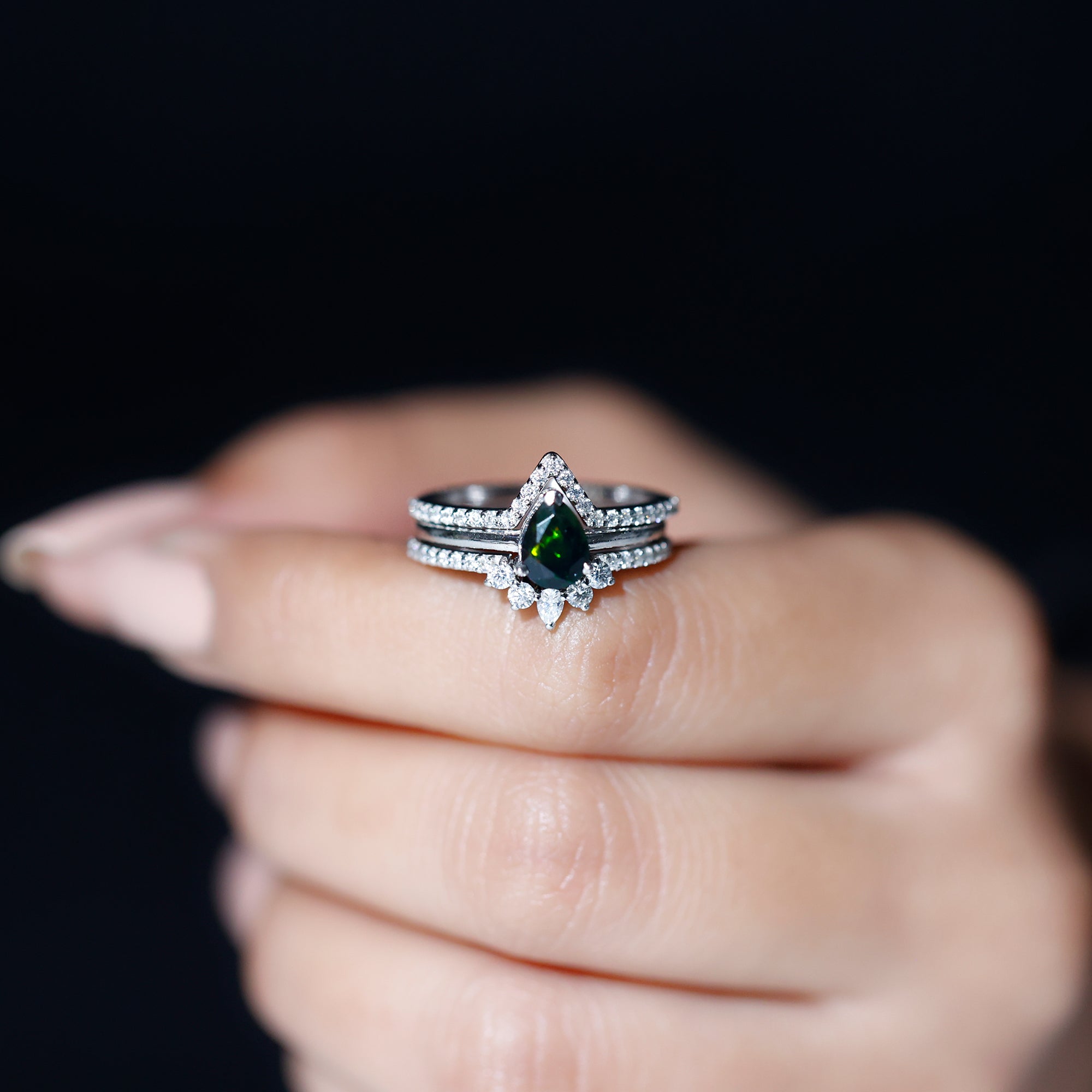Stacked Bands: Stacked band usually considered a good option as a wedding band, features small gemstones on the entire band, for a sparkling effect. With pear shaped rings these bands create a stunning and personalized look with its different styles and metal options.
