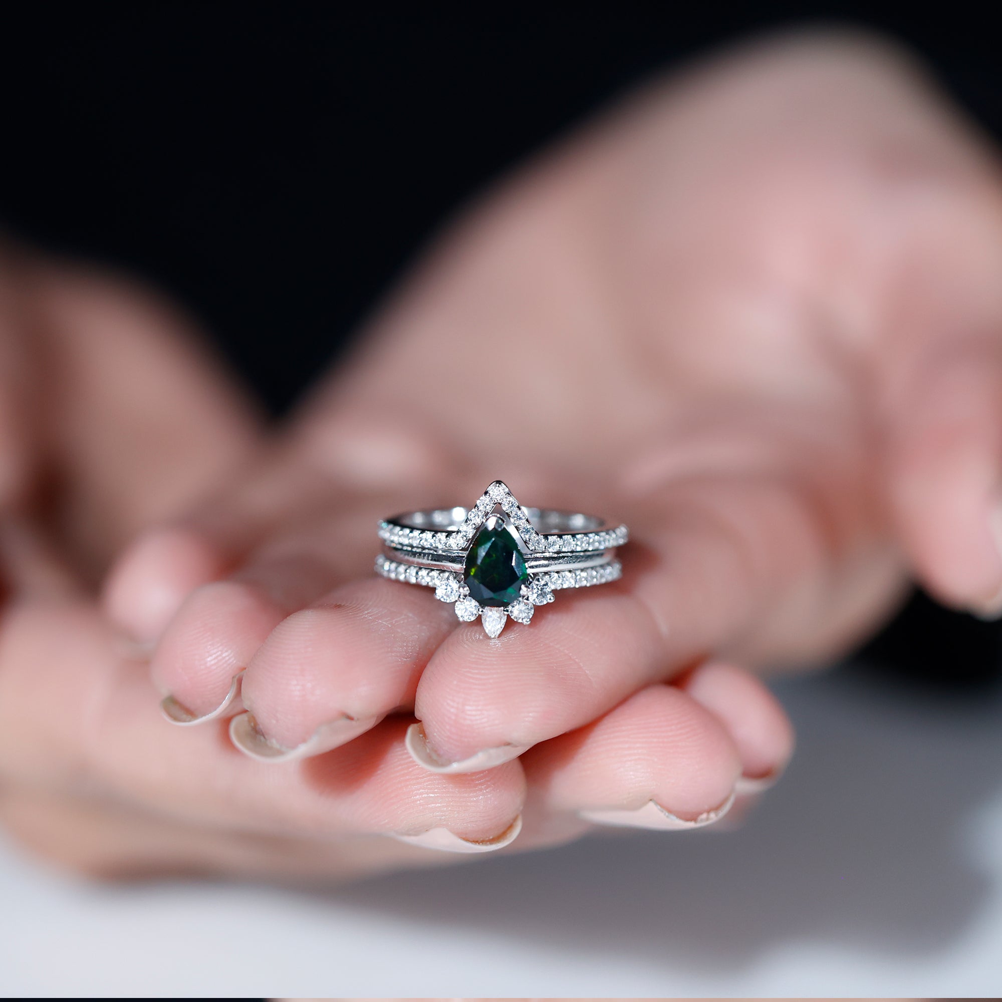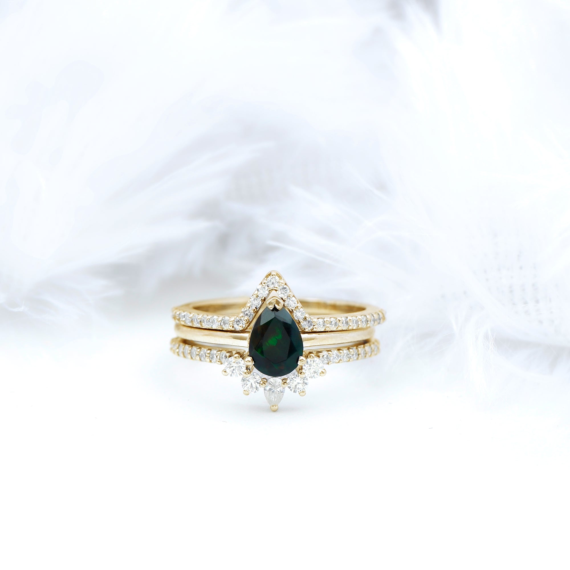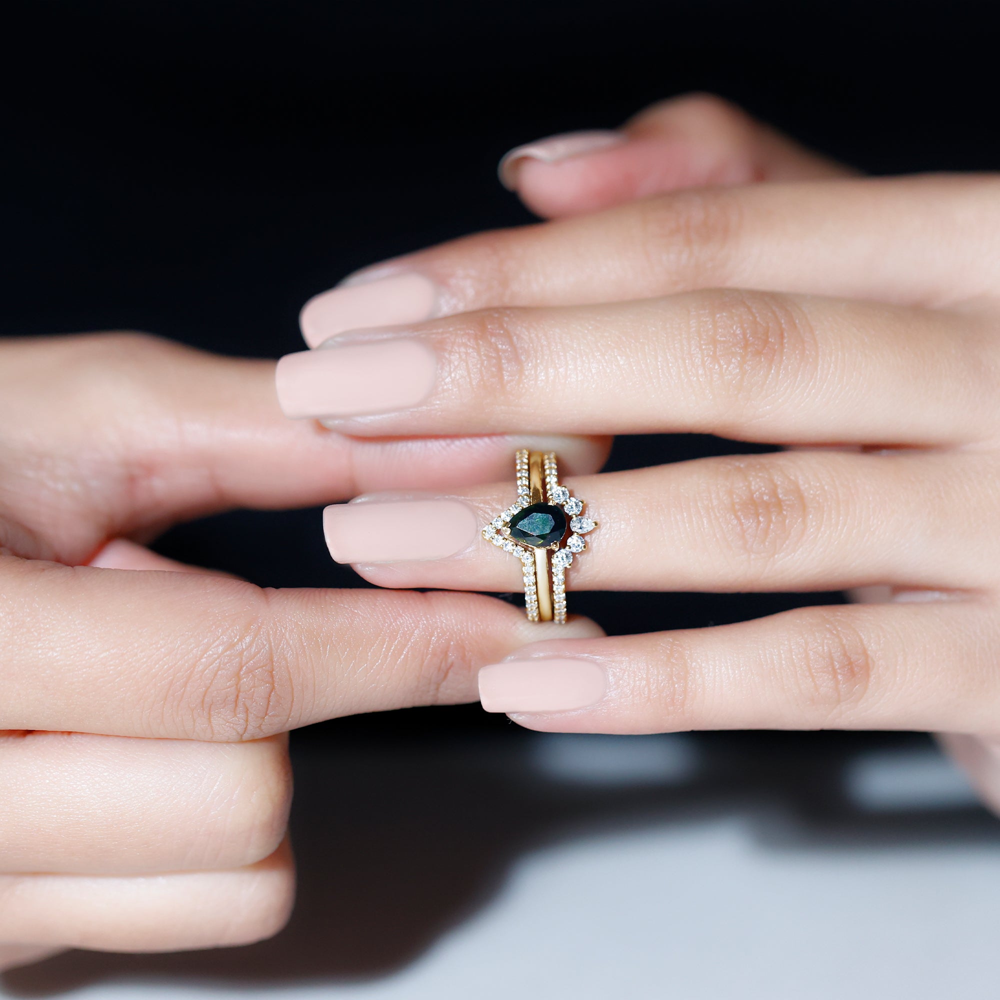 Although pear shaped engagement rings are a statement piece, that can help you stand out. But if you prefer to enhance its sparkle and beauty in a ring stack, then consider these options:
