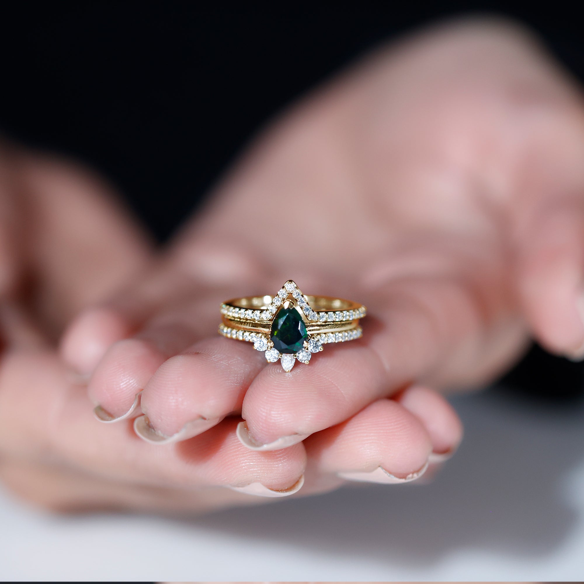Curved Bands: Curved bands or curved enhancers accentuate the pear shaped rings with their timeless elegance. They offer a balanced look and add a touch of sophistication to the pear rings. Often chosen for weddings, they build an appealing stack, if matched properly with proportions of engagement rings.
