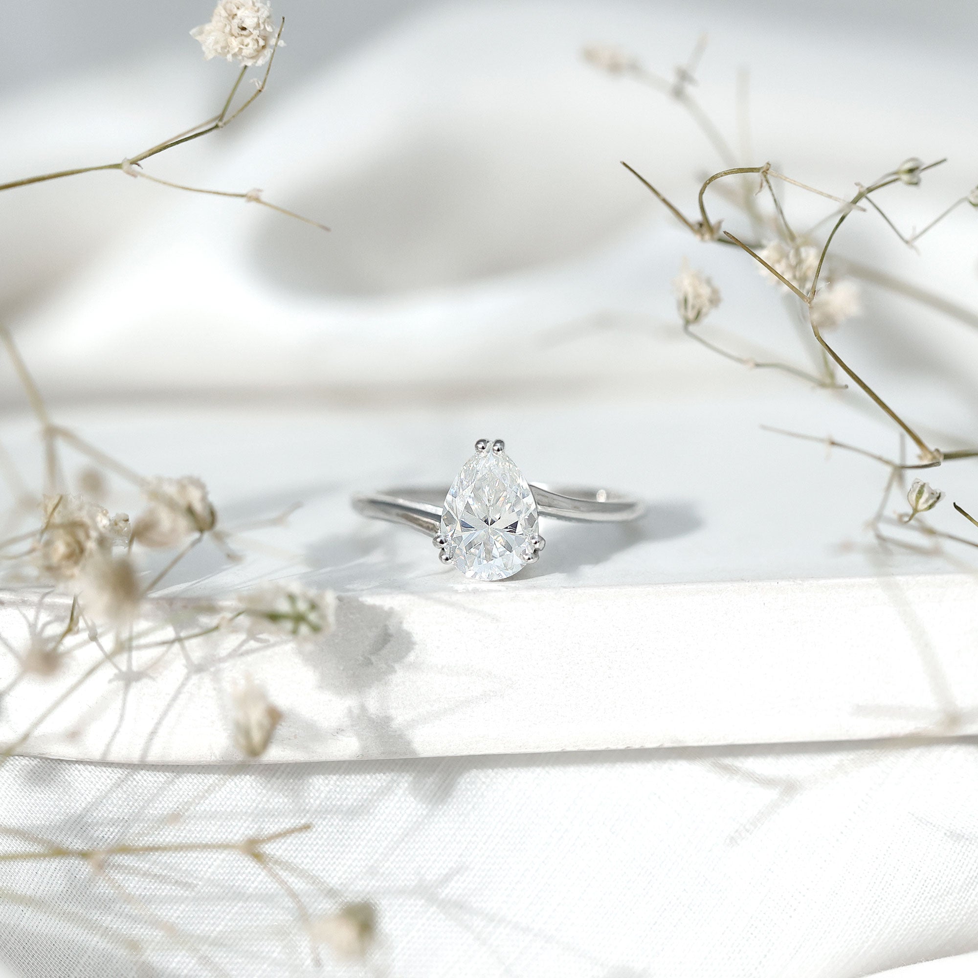 The pear shape—also known as the teardrop cut—is often chosen for its romantic symbolism. Representing love, emotion, and new beginnings, it’s a popular choice for Valentine’s Day and meaningful milestones.