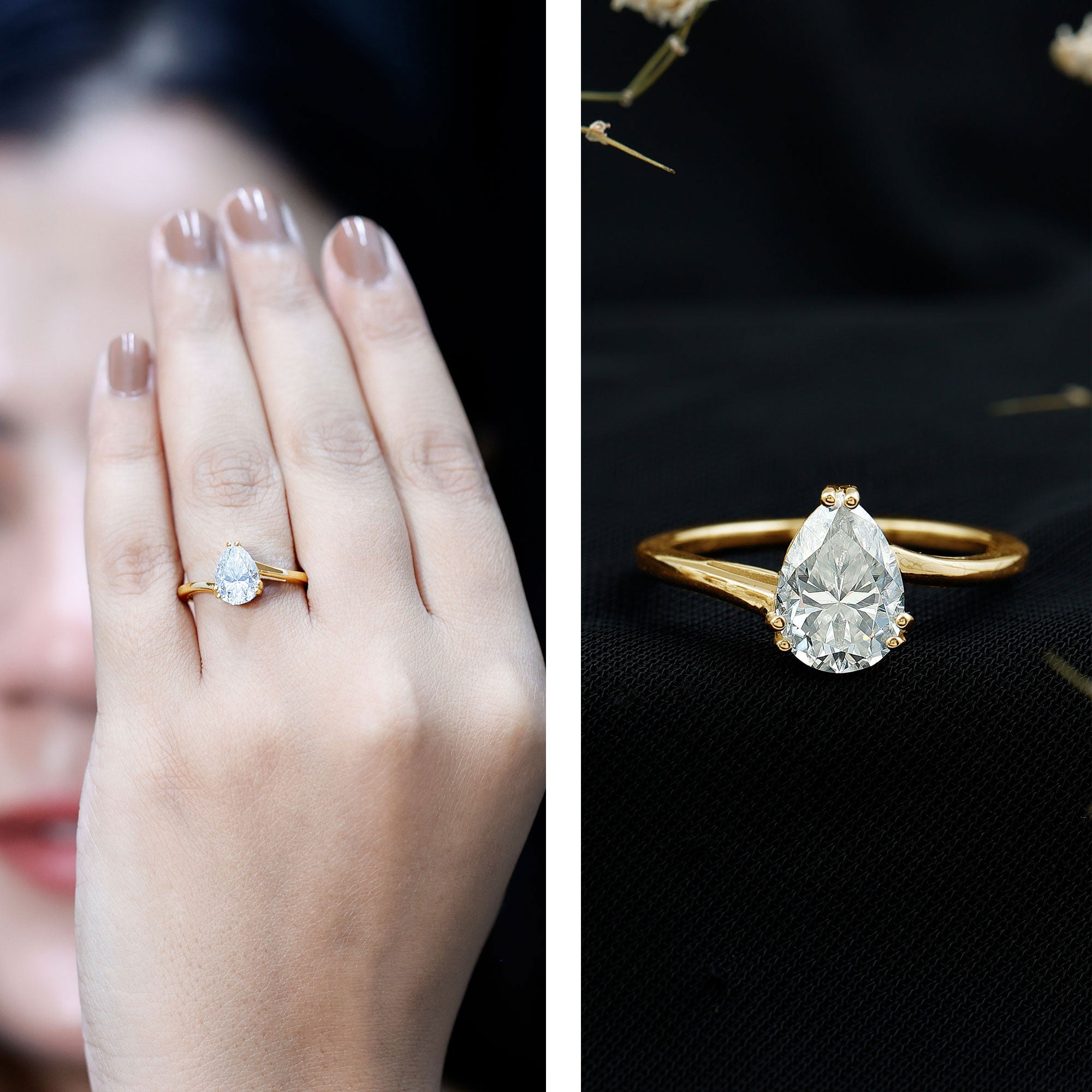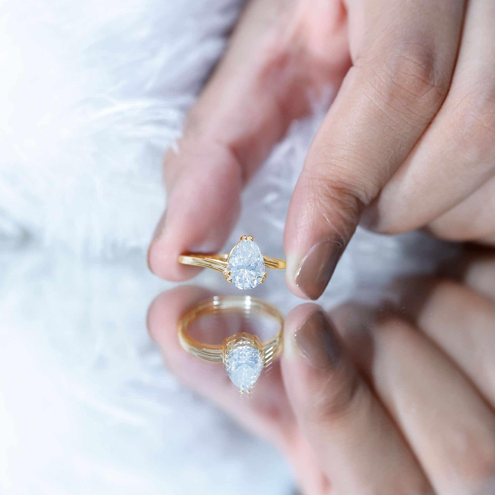 Lab Grown Diamond, Sapphire, ruby, emerald, moissanite, aquamarine, and topaz are popular choices for pear shaped jewelry.