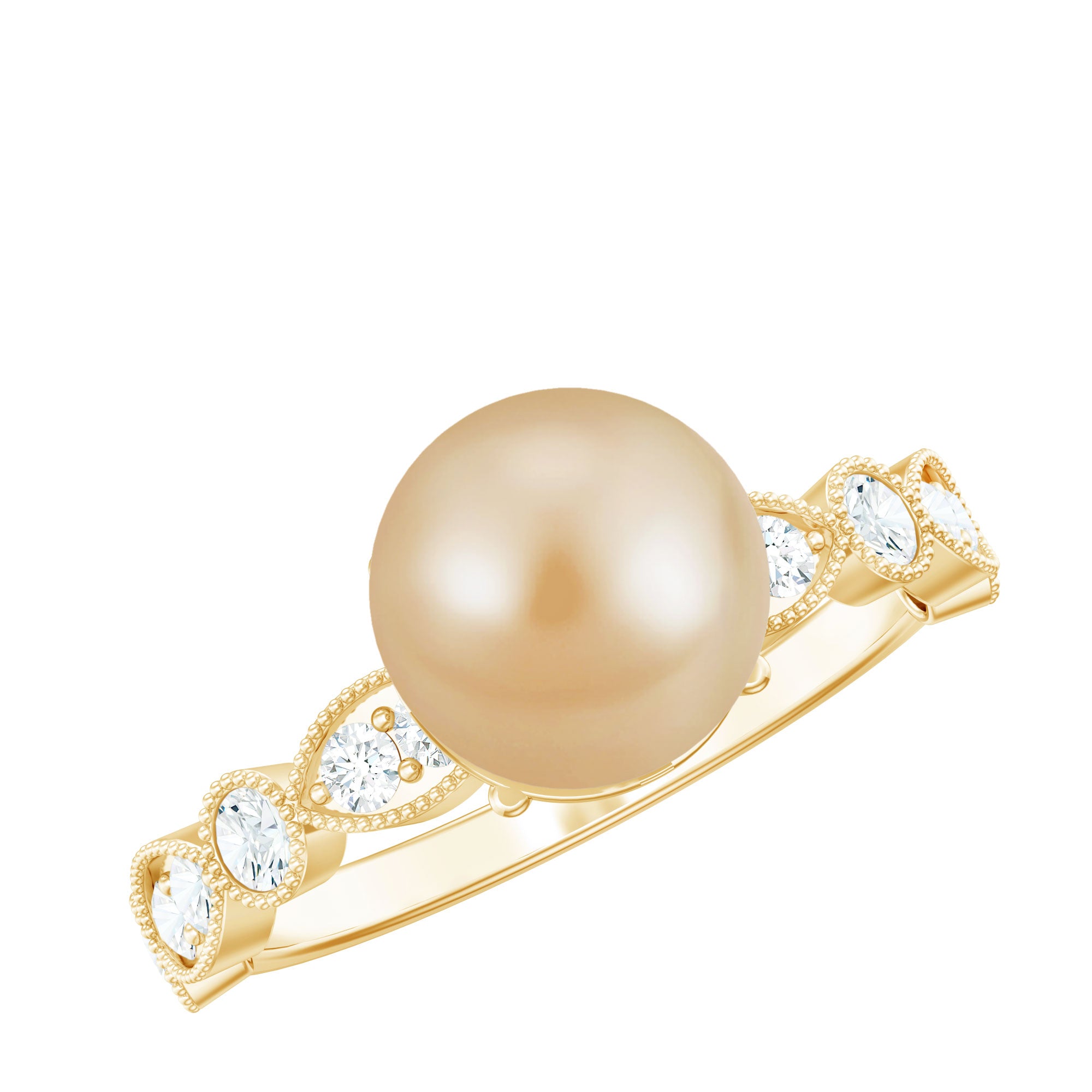 Freshwater Pearl Solitaire Rings: - Famous for their simplicity and classic appearance, these solitaire rings are designed for every age of woman. Bringing an aura of enduring elegance, this pearl solitaire ring in 10K, 14K, or 18K gold truly captivated with its alluring charm. The delicate diamond studded shank enhanced the beauty of the bead set around freshwater pearl gem. The ring's simplicity is outstanding, making it a perfect accessory for both your daytime and evening ensembles.