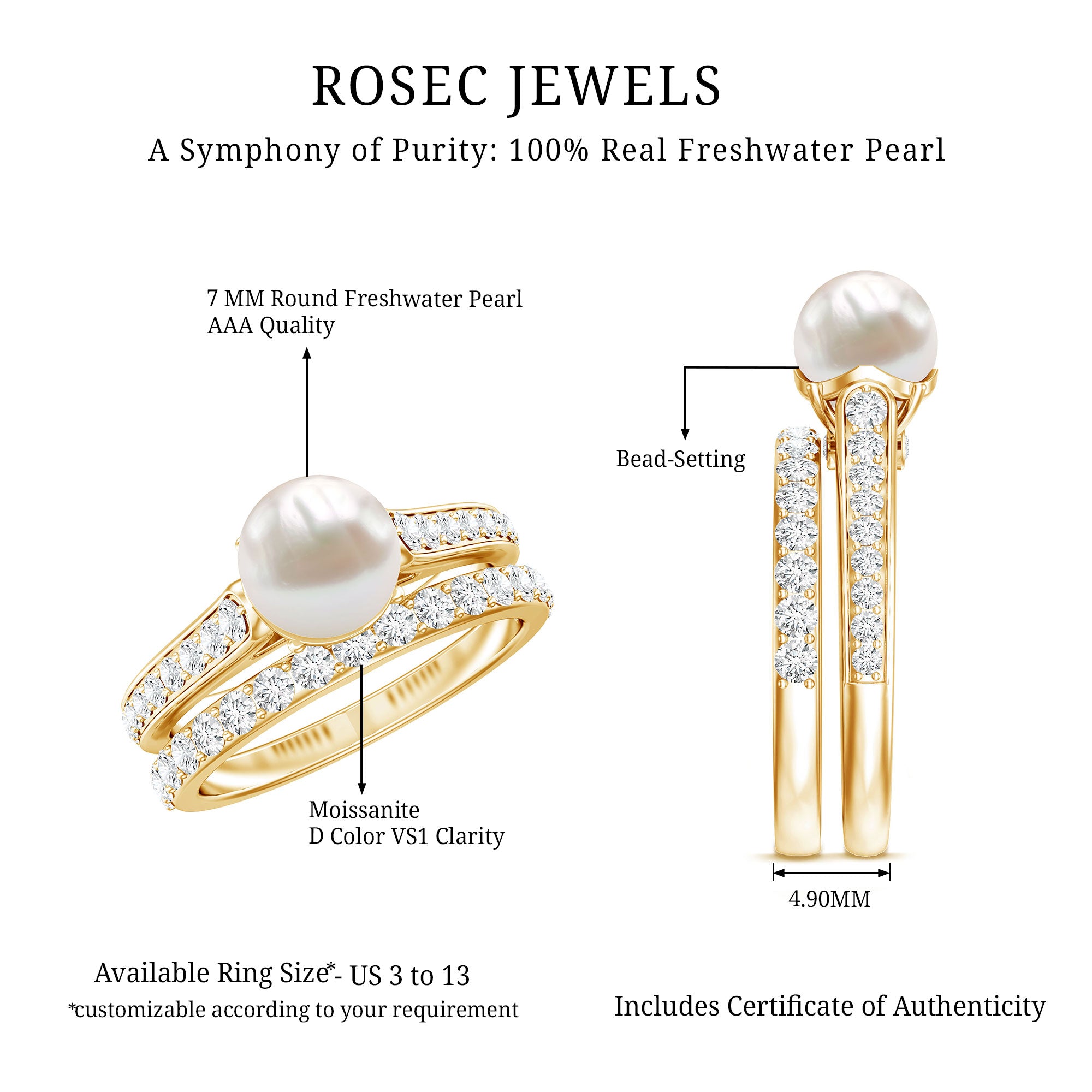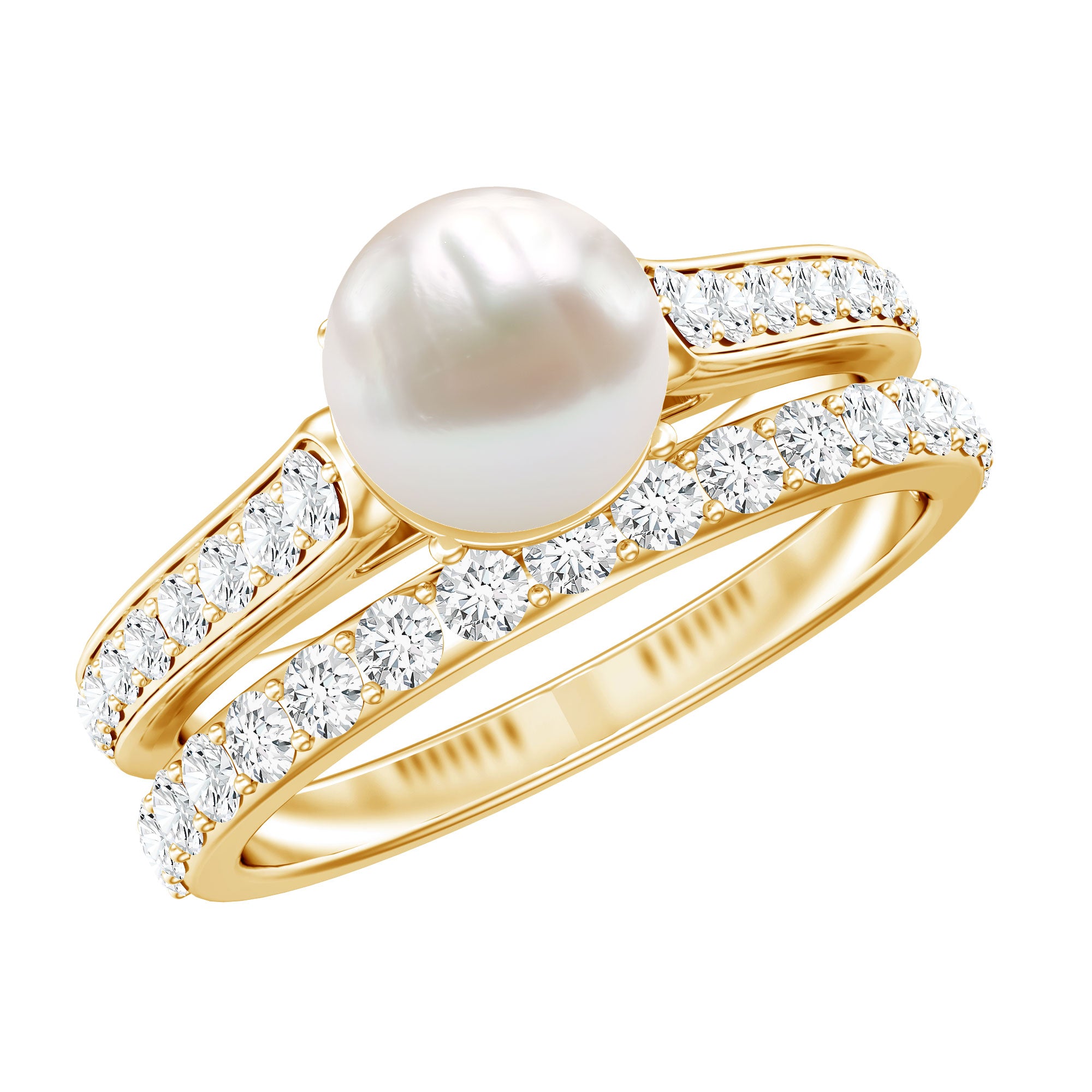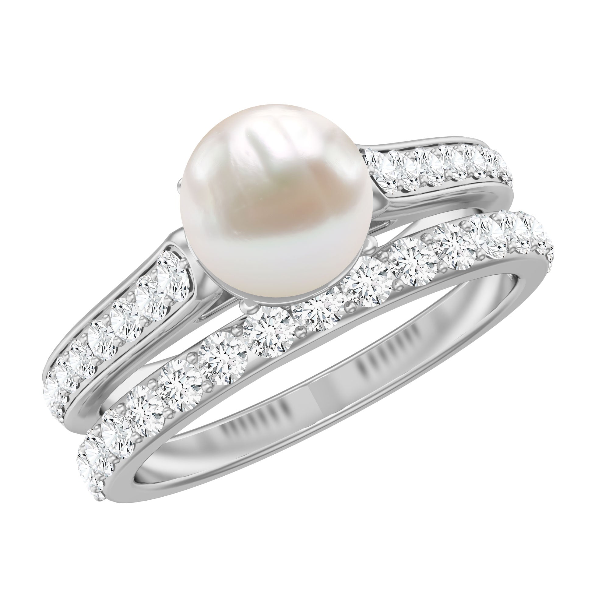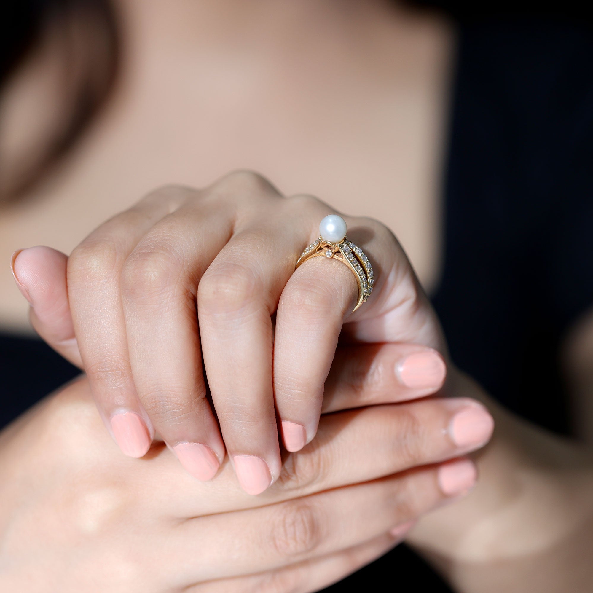 5. Freshwater Pearl Wedding Ring Set: - These exquisite ring sets often include an engagement ring and wedding band, each ring integrates freshwater pearl as a main attraction with the complementary details. These rings merge the dazzling appeal of pearl with the extra gems, the perfect accessory for a wedding occasion with a romantic feel.
