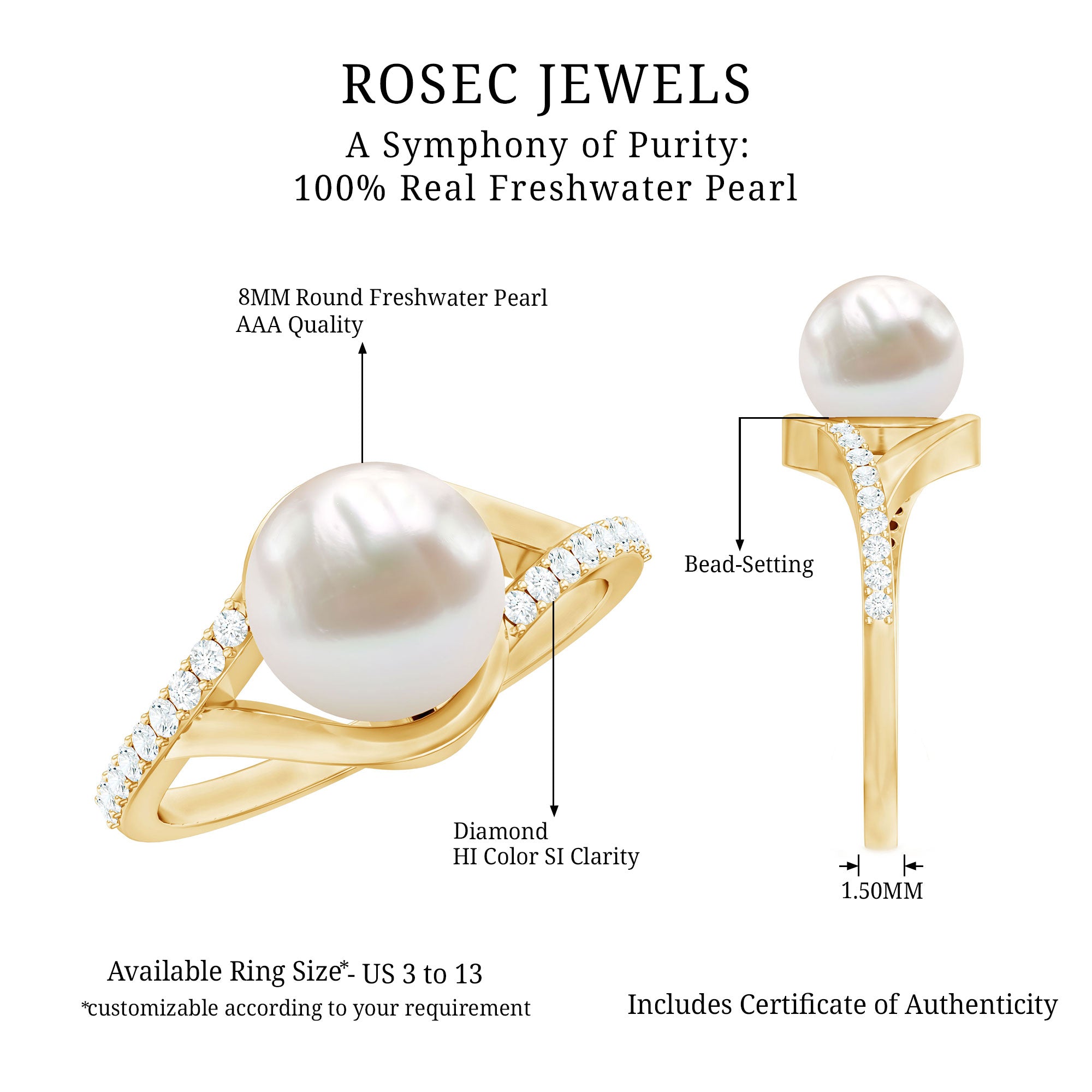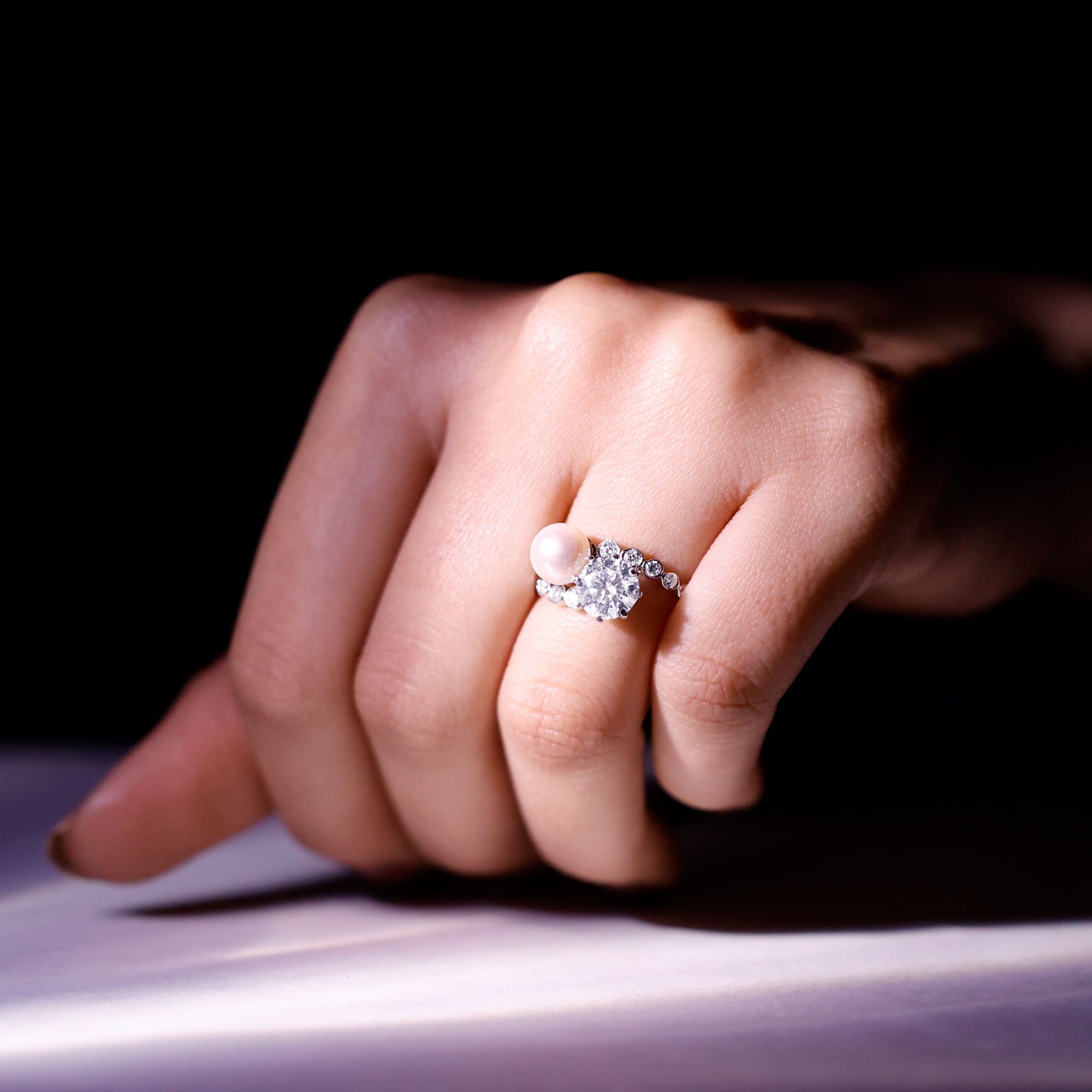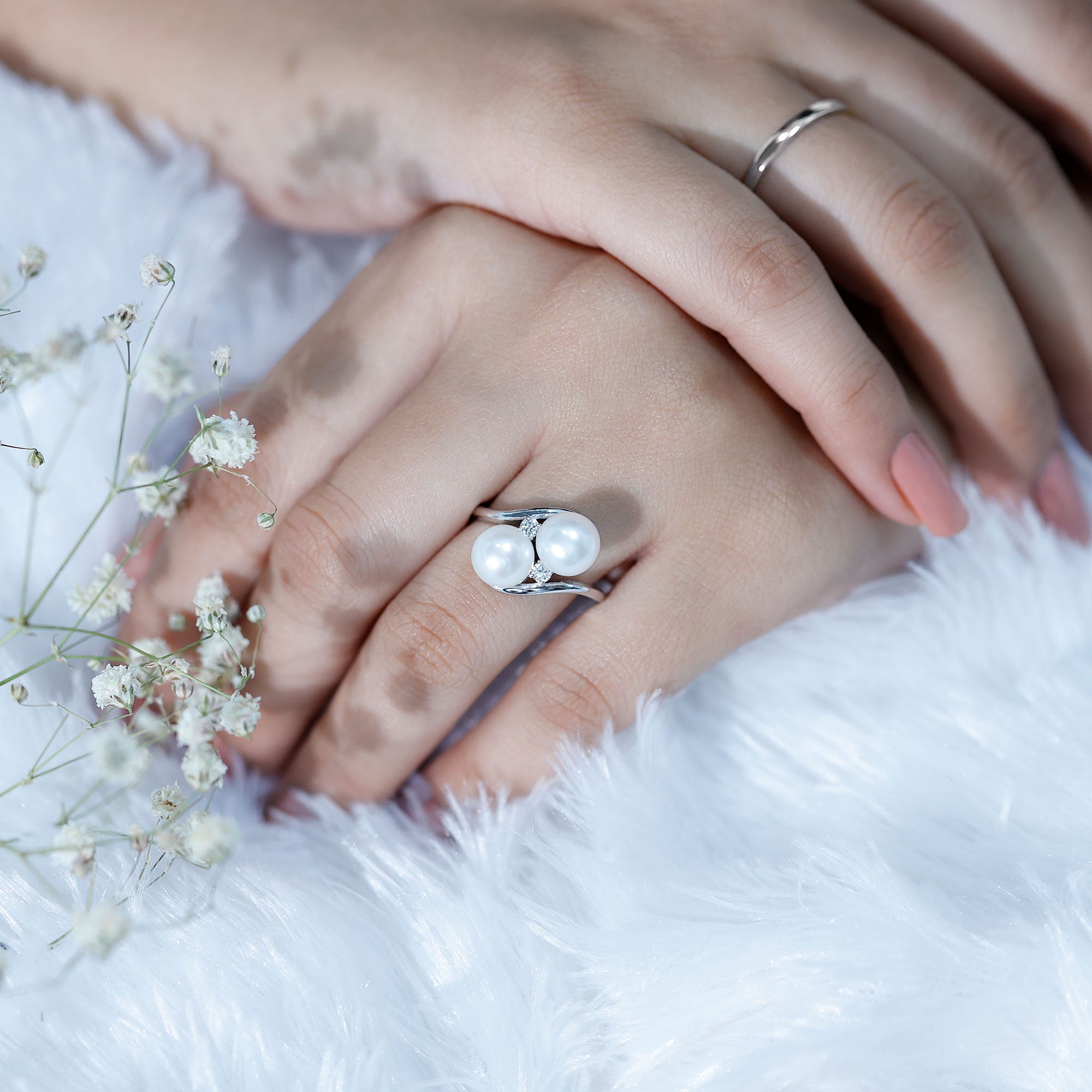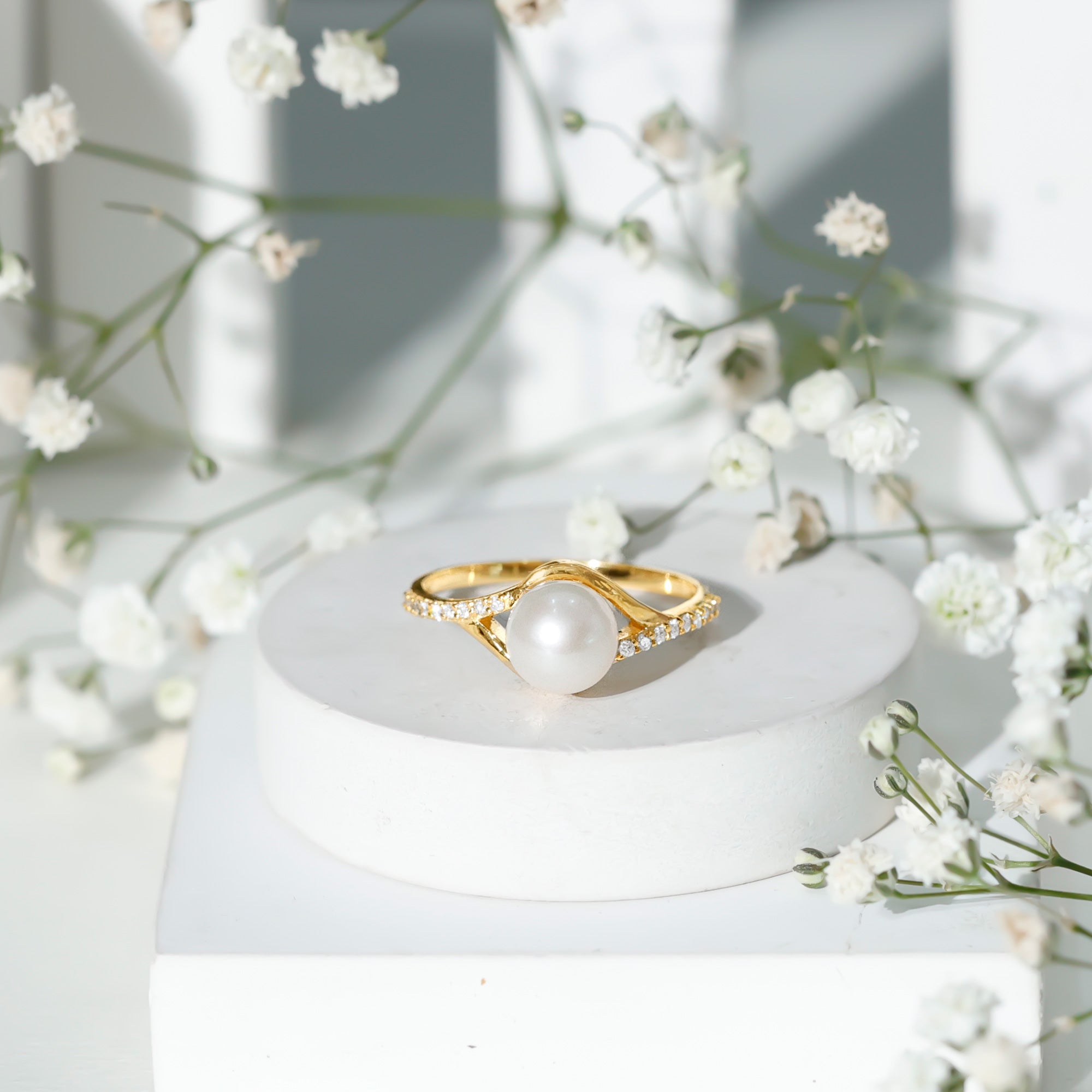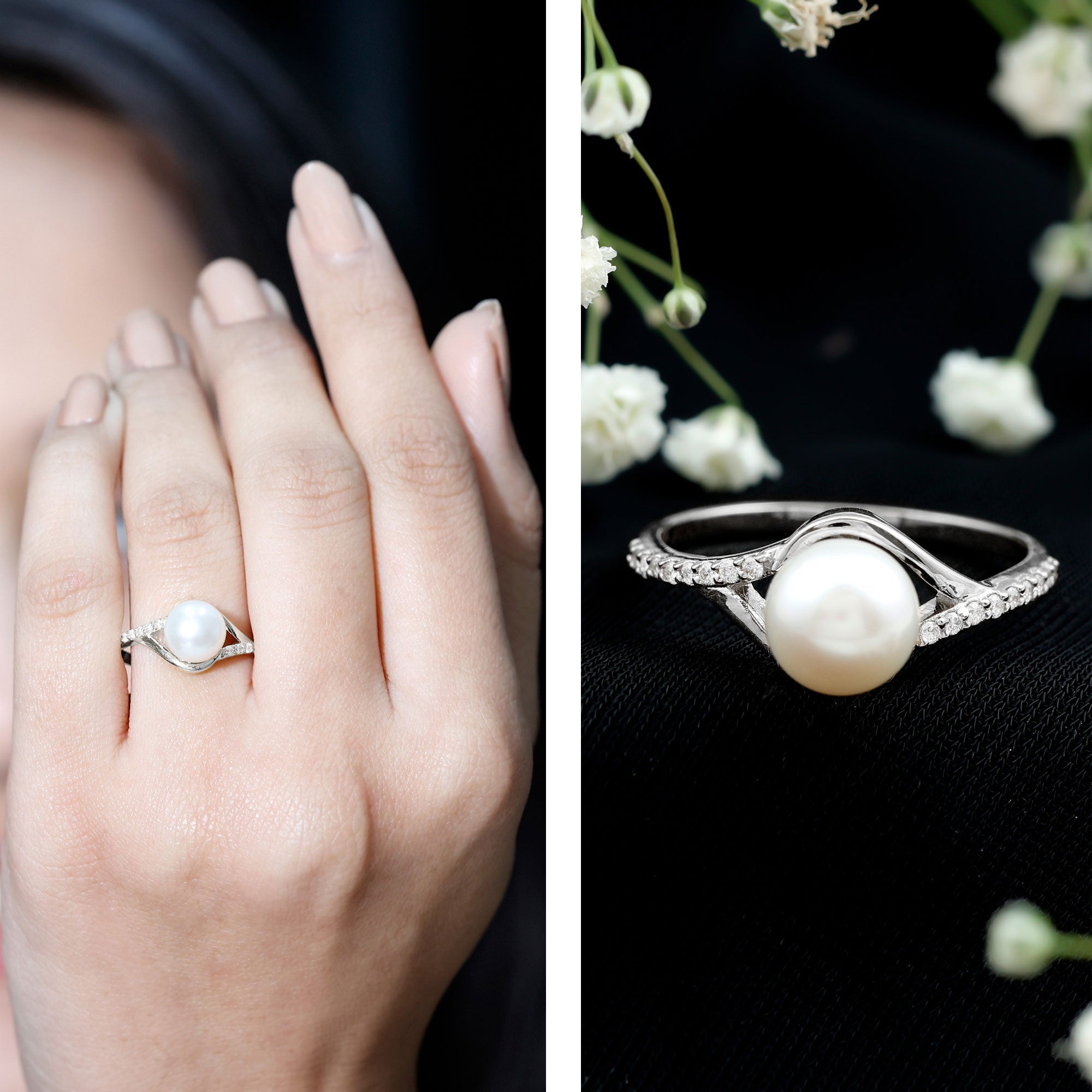 6. Freshwater Pearl Contemporary Rings: represents a fusion of modern design with the aesthetic charm of freshwater pearls. Each ring is characterized by contemporary styles that combine with classic elegance of pearl and extra gemstones such as diamonds and others. Typically, each contemporary freshwater pearl ring features a minimalist wrap design and sparkling diamond gems, adding a contemporary twist.