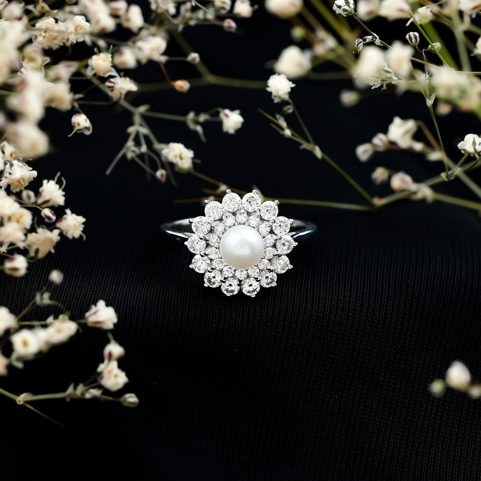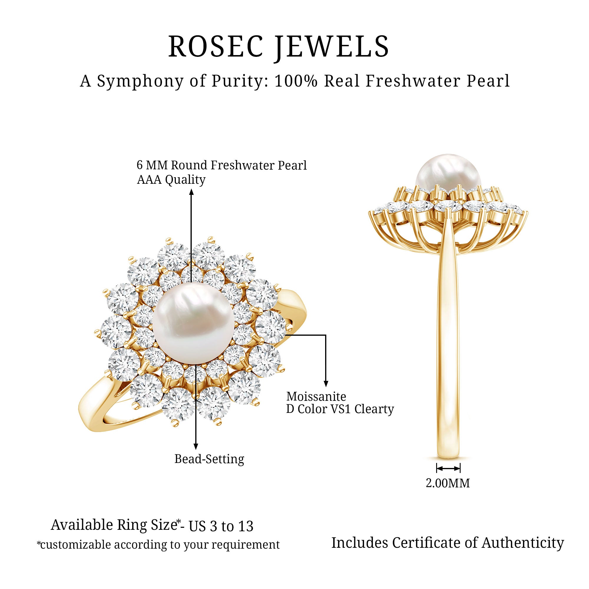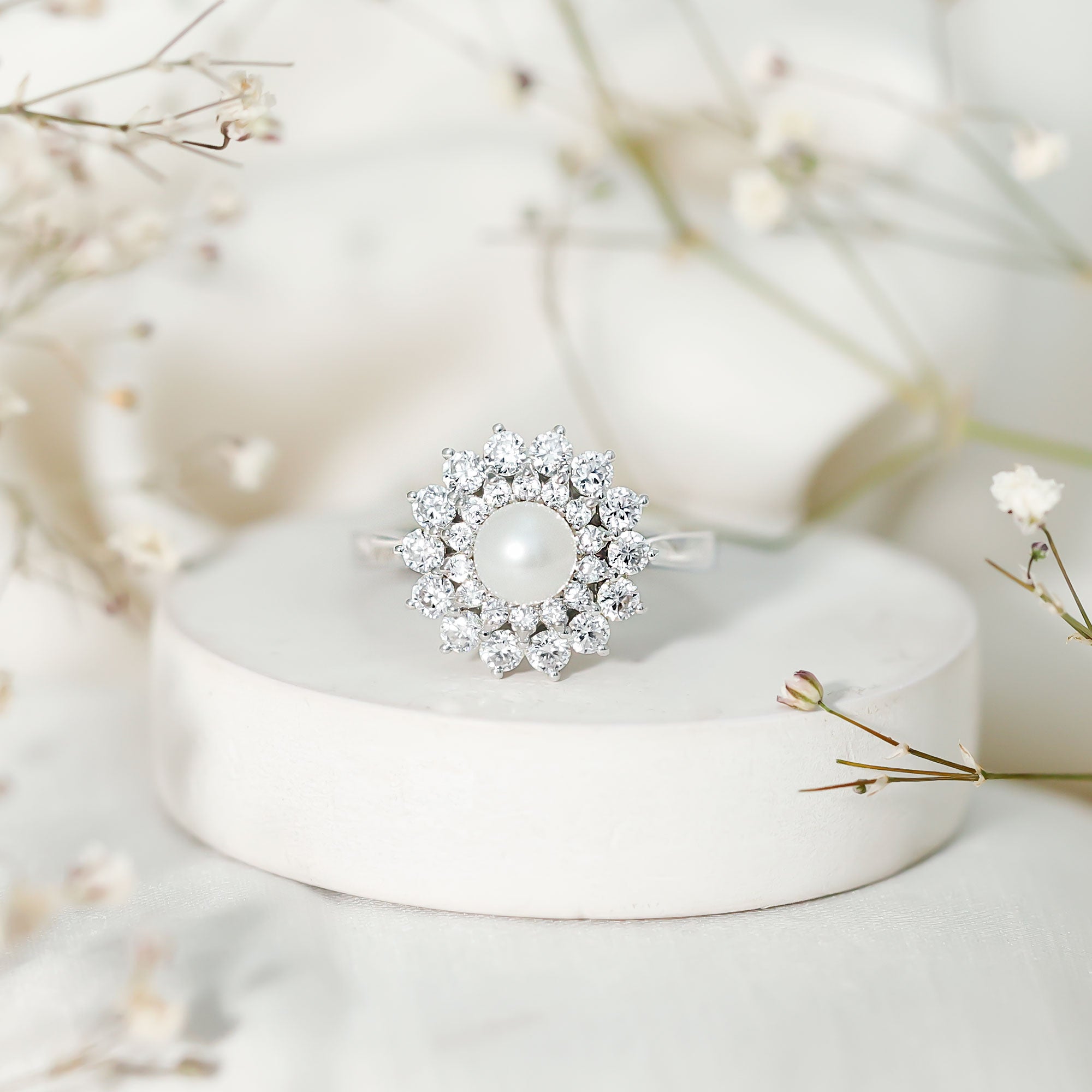 1. Freshwater Pearls Halo Rings: - each piece of freshwater pearl halo ring features a center attraction pearl that is securely encircled by small glittering diamonds or moissanite. This contrast maximizes the charm and elegance of the pearl, offering an enchanting visual impact.