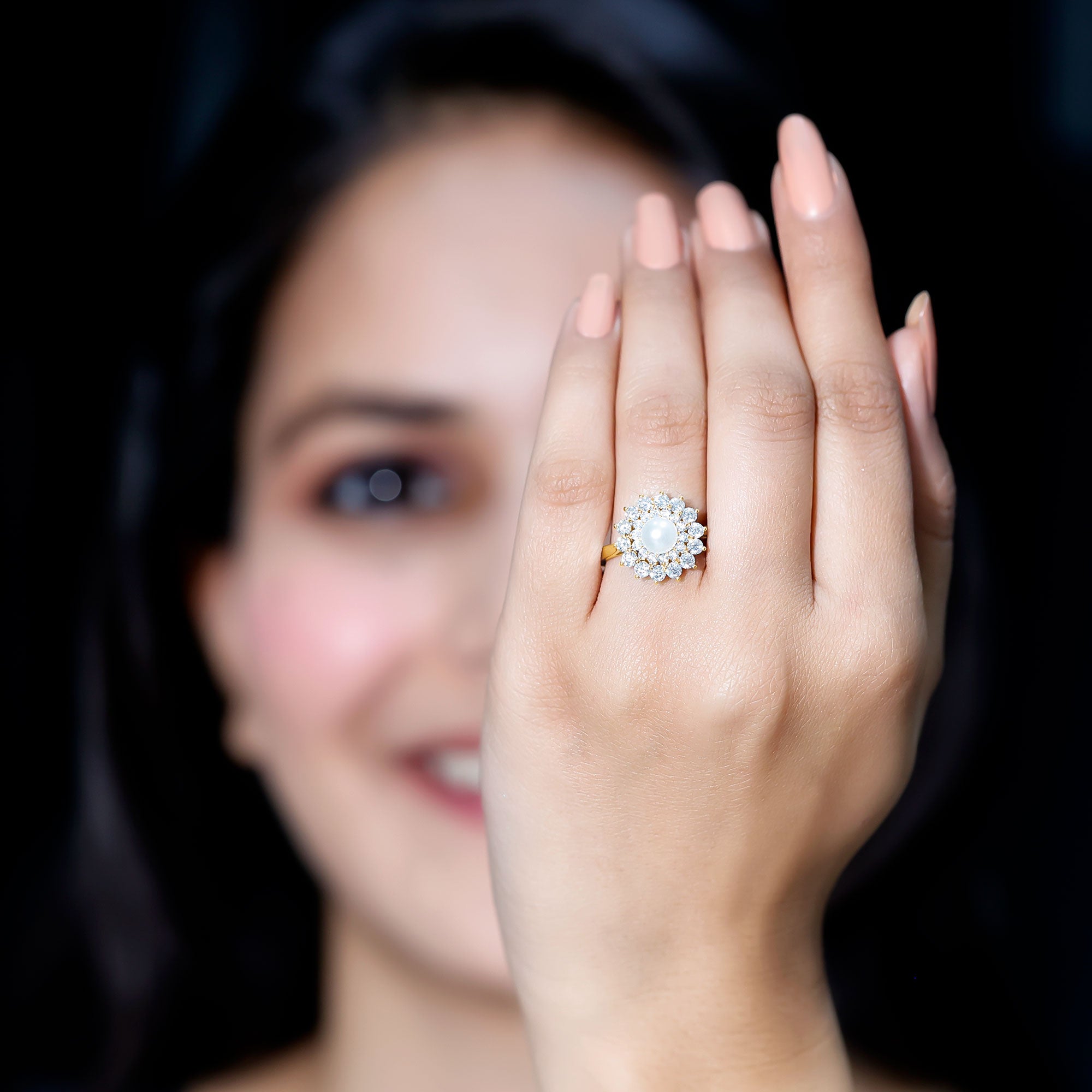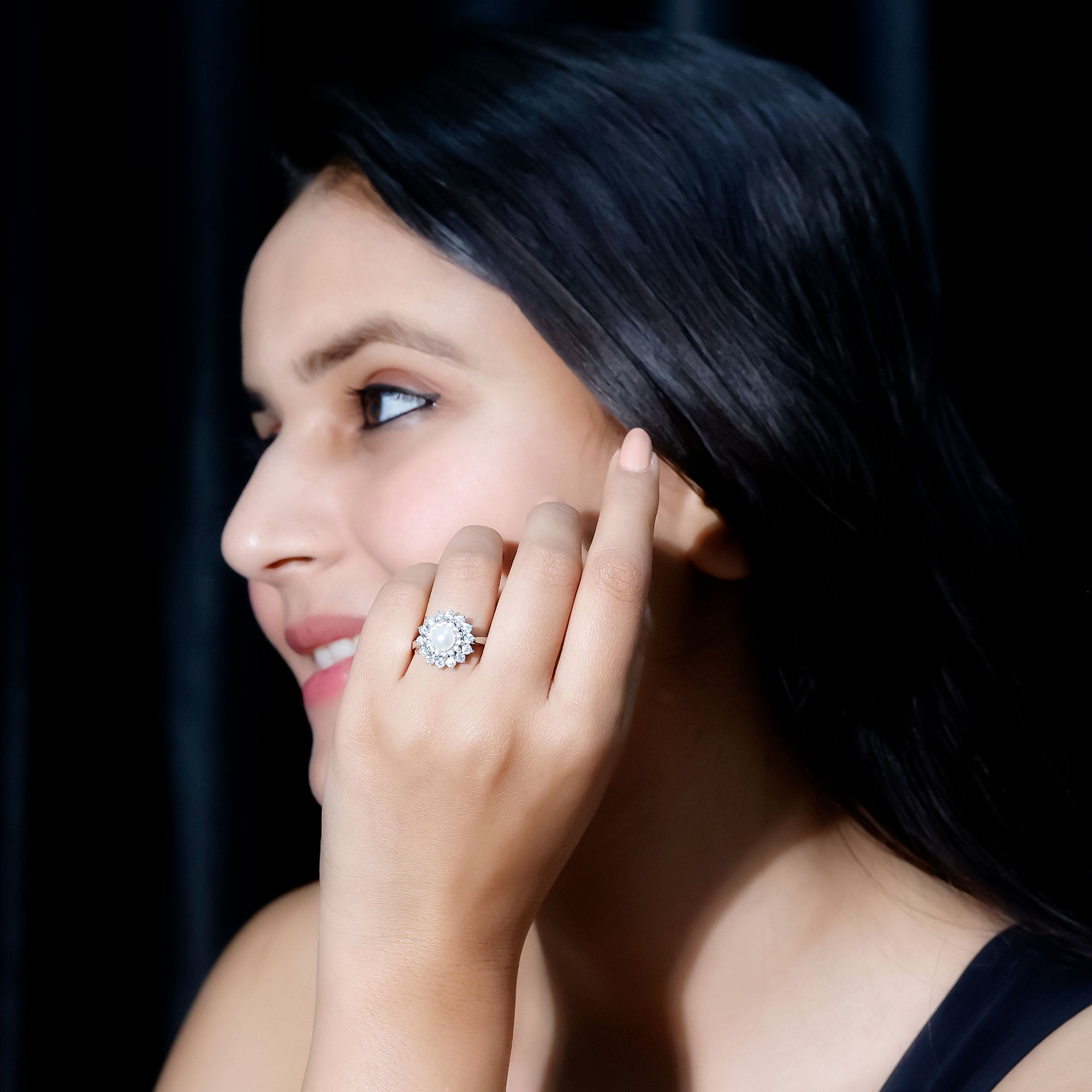 3. Freshwater Pearl Cocktail Rings: - creates a bold statement but yet exhibits a sophisticated look. The freshwater pearl cocktail rings intricate the large freshwater pearl often elaborated with additional gemstones like diamond and moissanite. All the cocktail rings are designed to be a centerpiece of attention, each one is crafted to radiate an enchanting glow and glamour.