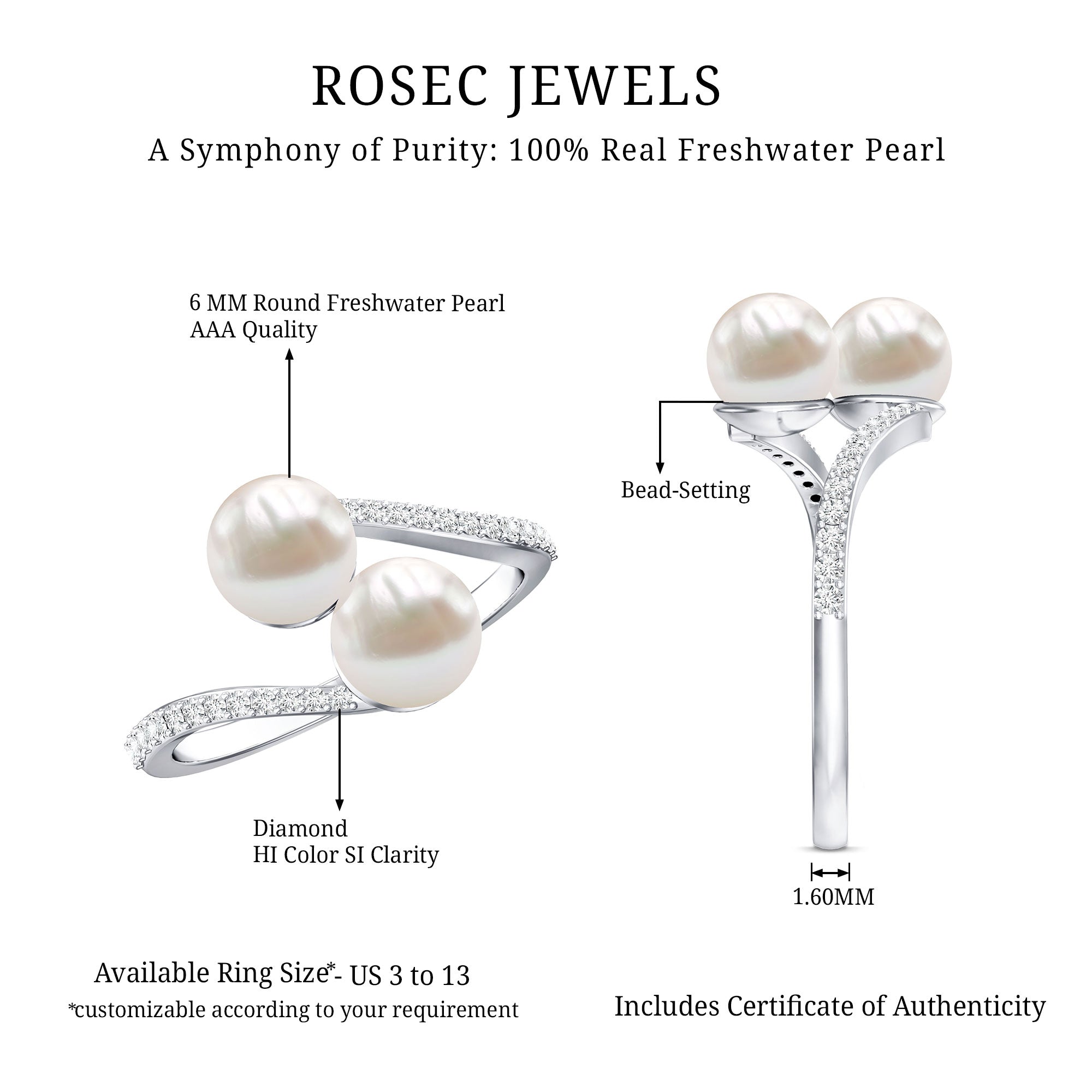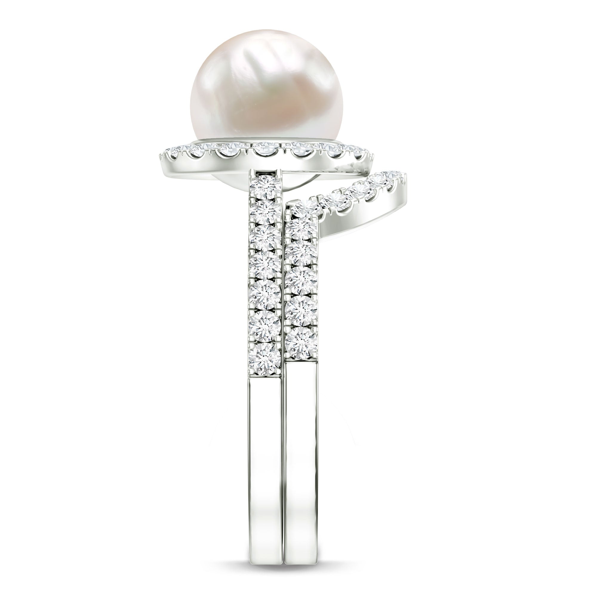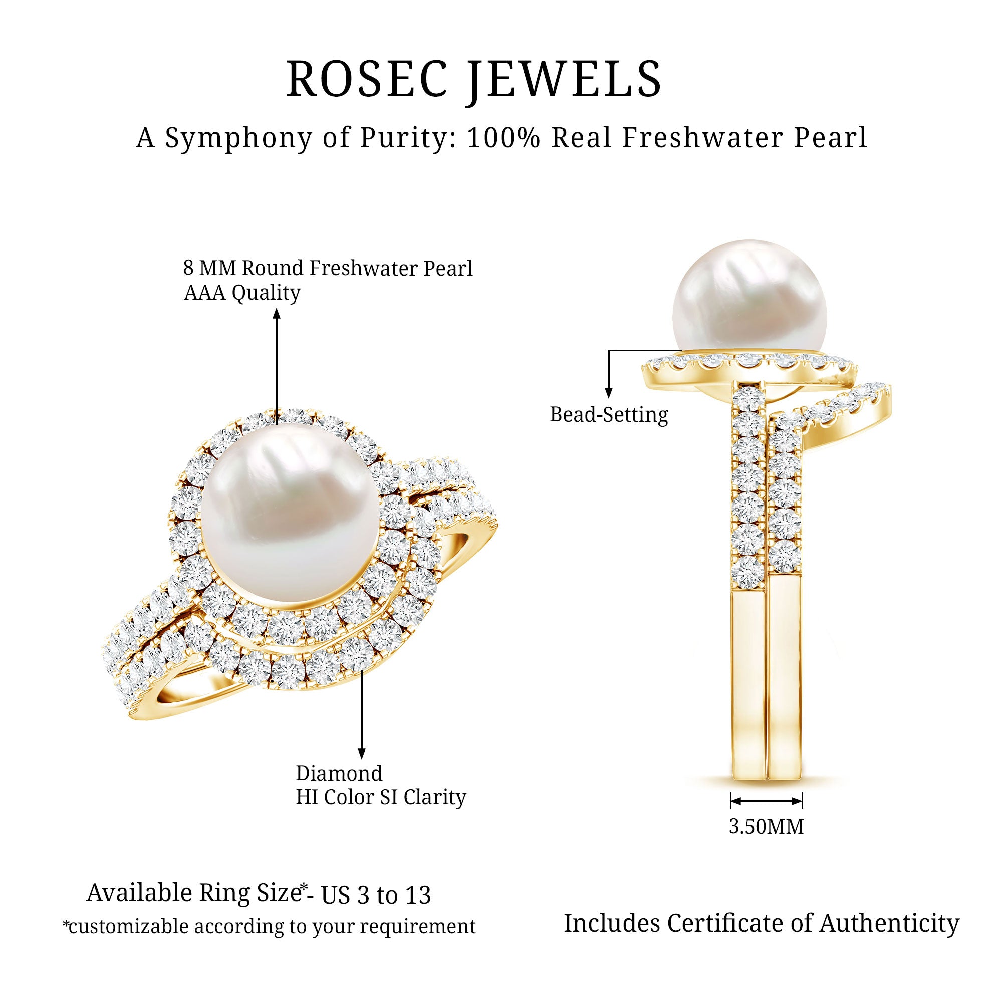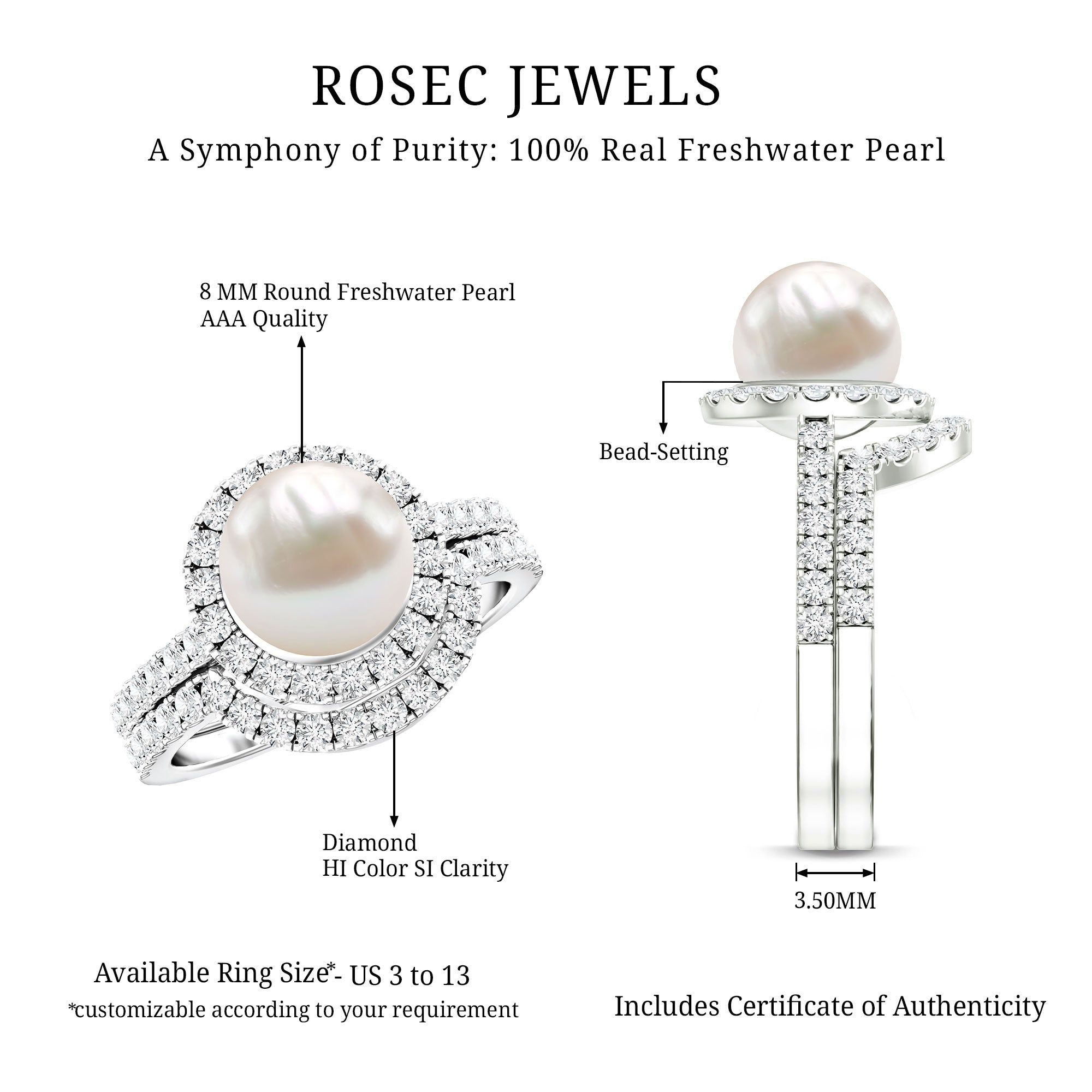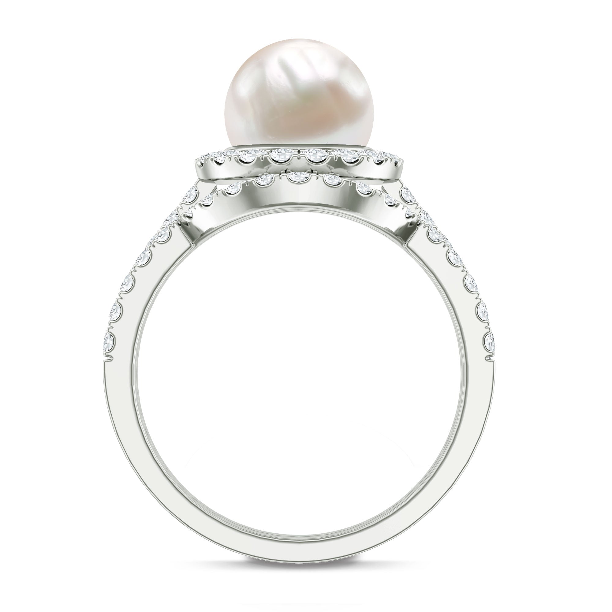 Freshwater Pearls Halo Rings: - each piece of freshwater pearl halo ring features a center attraction pearl that is securely encircled by small glittering diamonds or moissanite. This contrast maximizes the charm and elegance of the pearl, offering an enchanting visual impact.