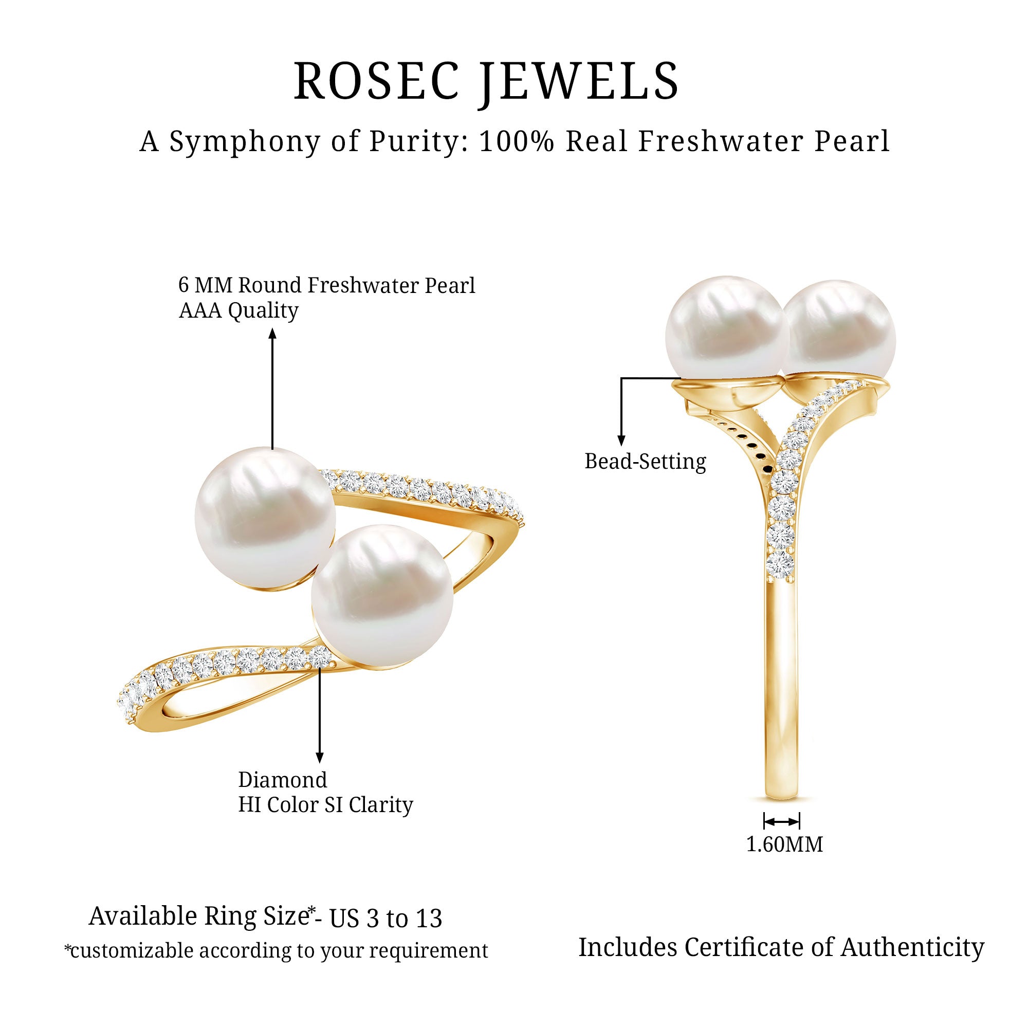 Freshwater Pearl Contemporary Rings: represents a fusion of modern design with the aesthetic charm of freshwater pearls. Each ring is characterized by contemporary styles that combine with classic elegance of pearl and extra gemstones such as diamonds and others. Typically, each contemporary freshwater pearl ring features a minimalist wrap design and sparkling diamond gems, adding a contemporary twist.