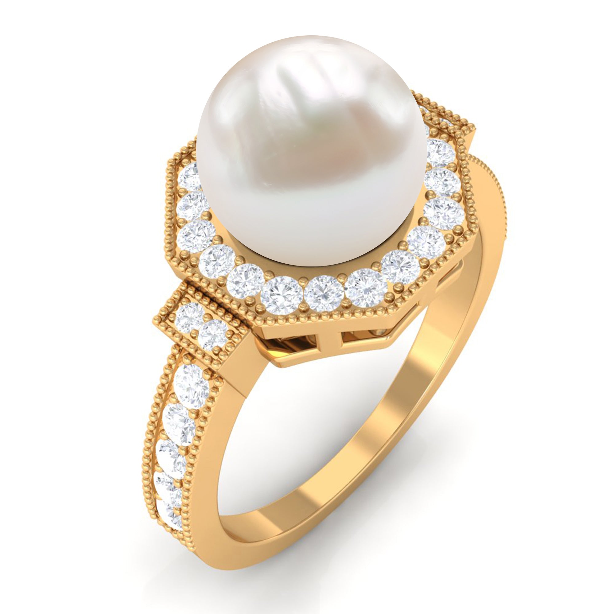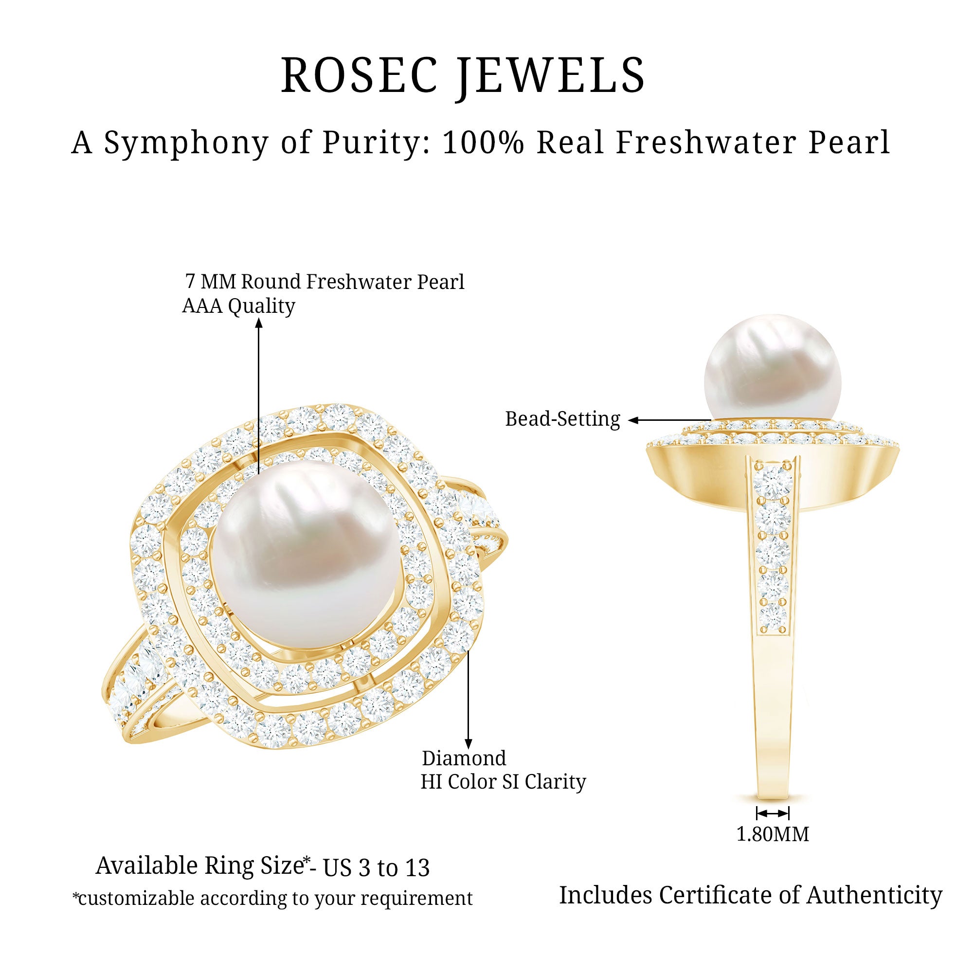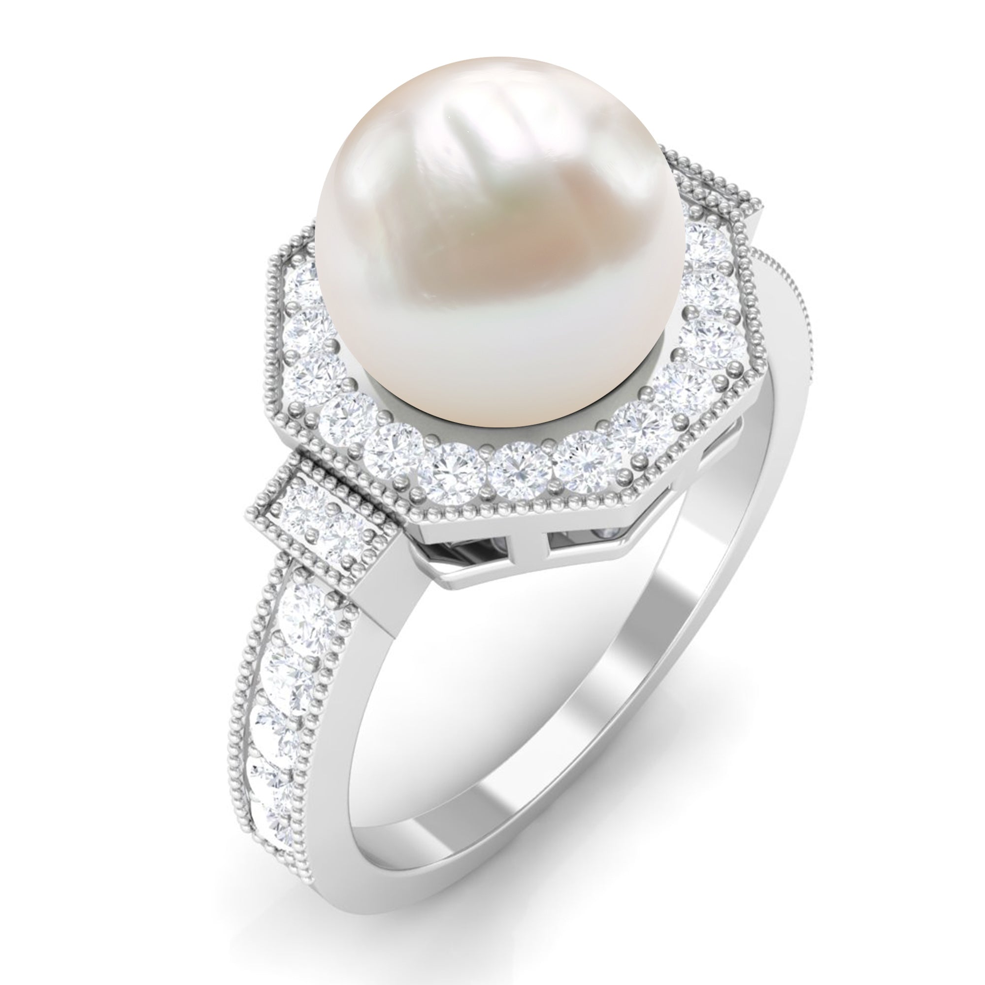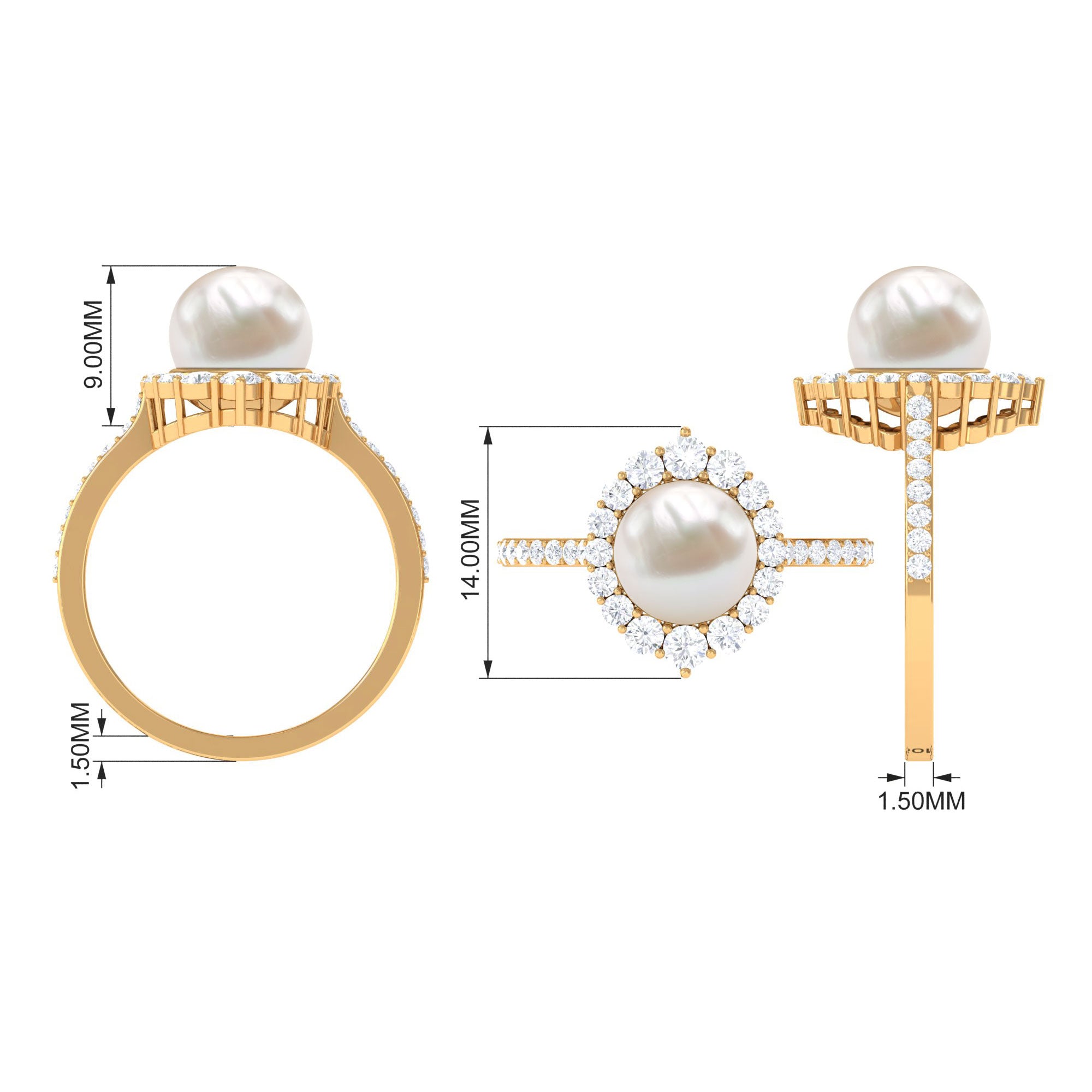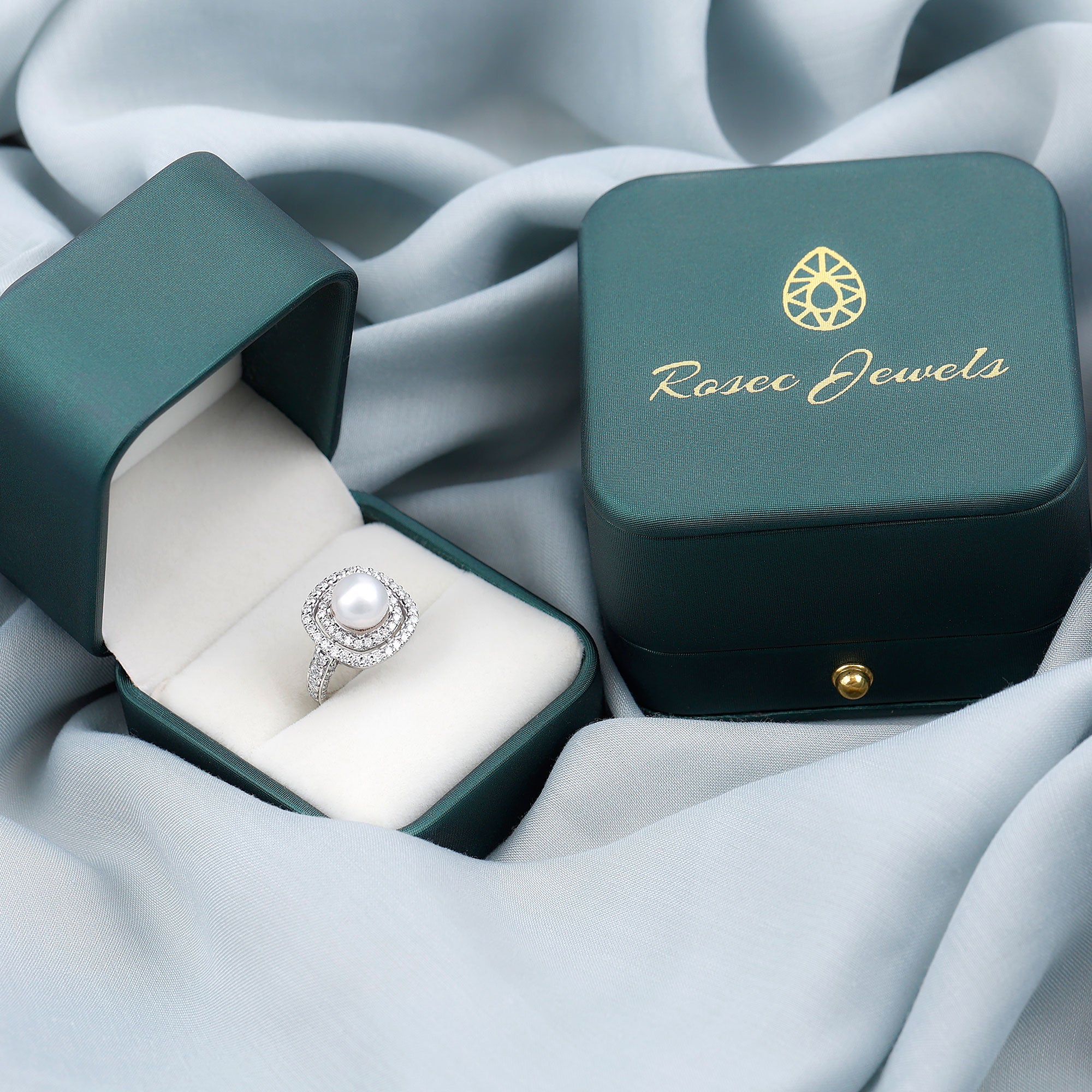 Freshwater Pearls Halo Rings: - each piece of freshwater pearl halo ring features a center attraction pearl that is securely encircled by small glittering diamonds or moissanite. This contrast maximizes the charm and elegance of the pearl, offering an enchanting visual impact.