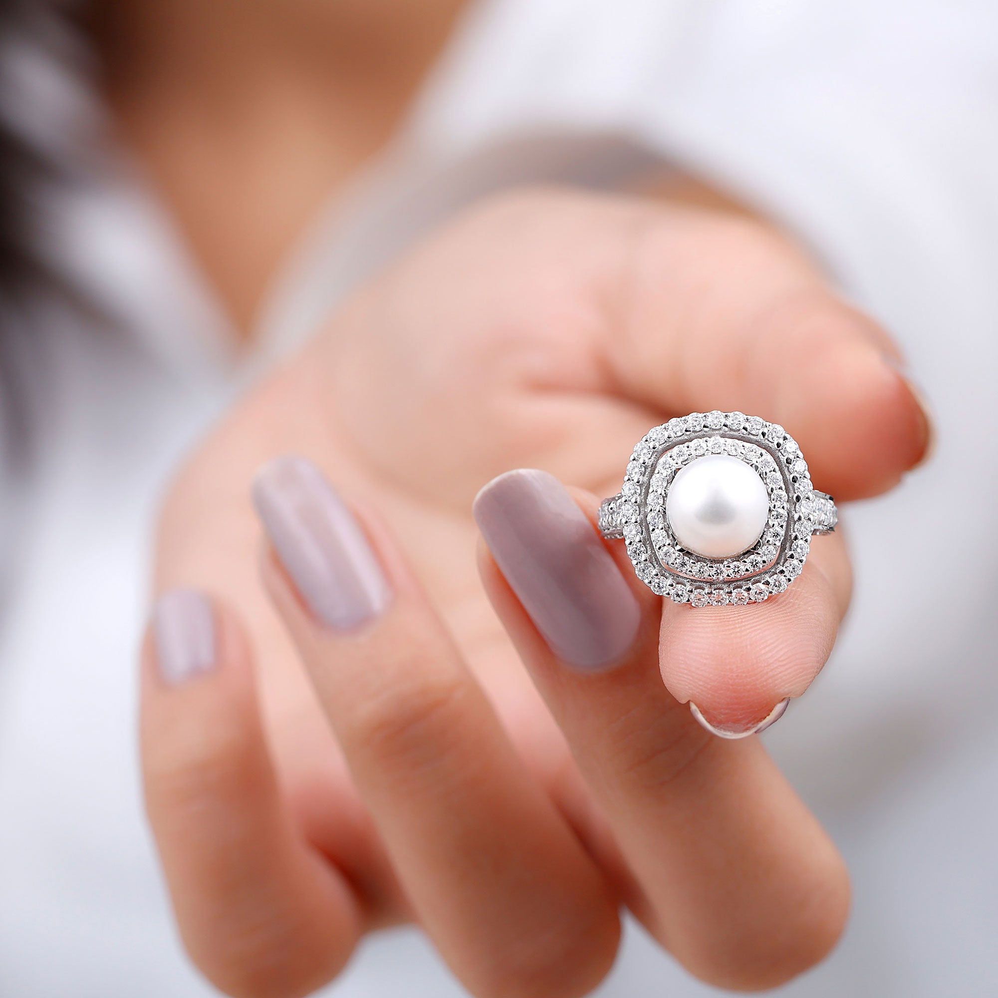 Freshwater Pearl Contemporary Rings: represents a fusion of modern design with the aesthetic charm of freshwater pearls. Each ring is characterized by contemporary styles that combine with classic elegance of pearl and extra gemstones such as diamonds and others. Typically, each contemporary freshwater pearl ring features a minimalist wrap design and sparkling diamond gems, adding a contemporary twist.