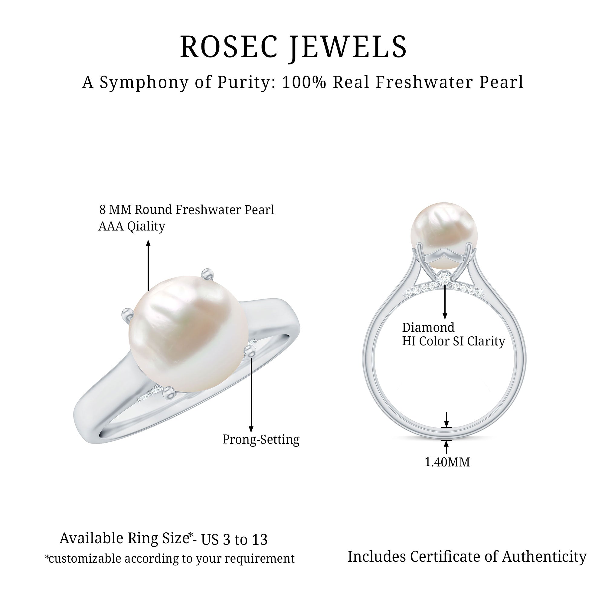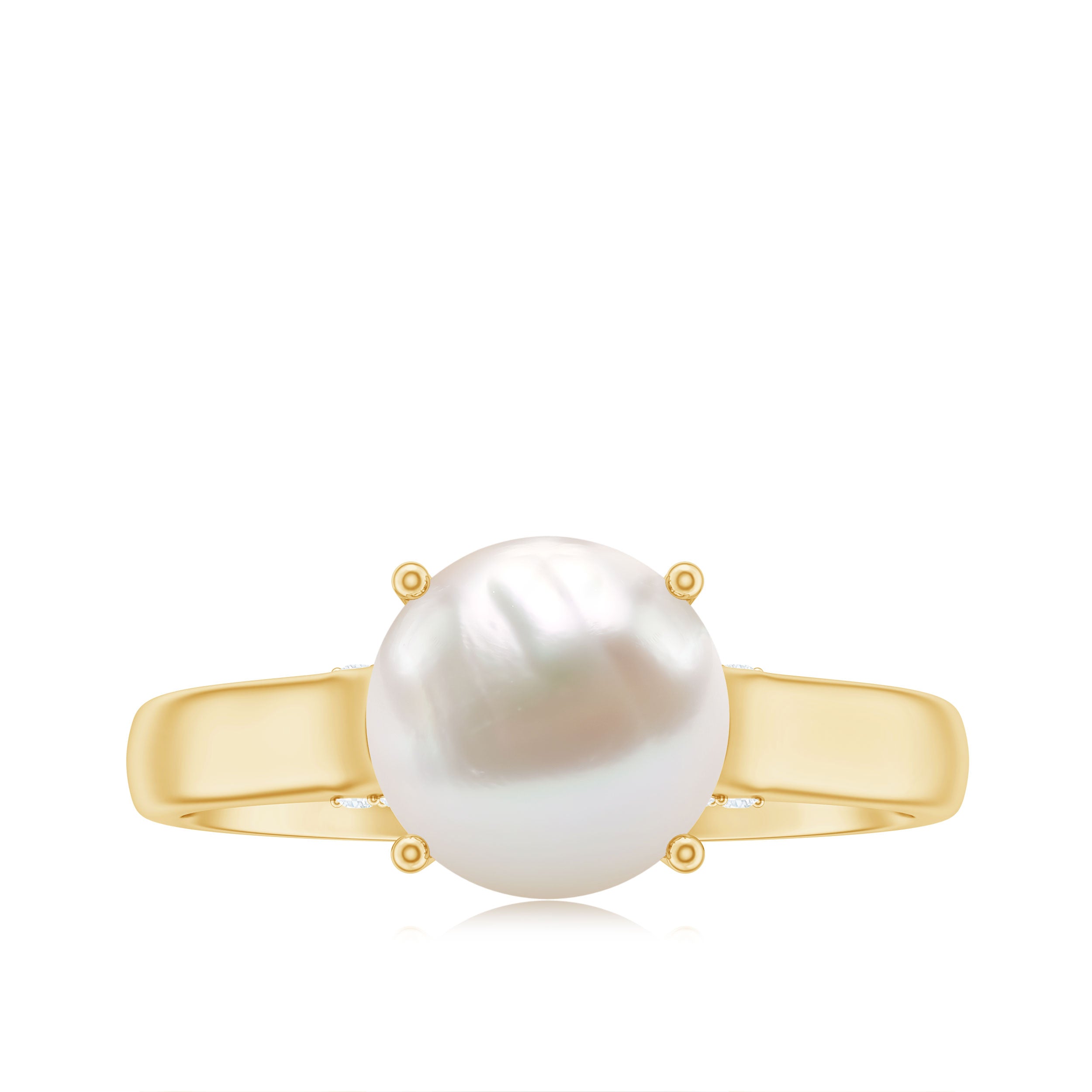Freshwater Pearl Solitaire Rings: - Features a single pearl, set to grab the attention as a centerpiece. Our freshwater pearl solitaire rings are sought-after for their refinement and simplicity. Typically, solitaire pearl rings crafted in metal bands like white gold, yellow gold, and sterling silver, create timeless elegance for wearers.