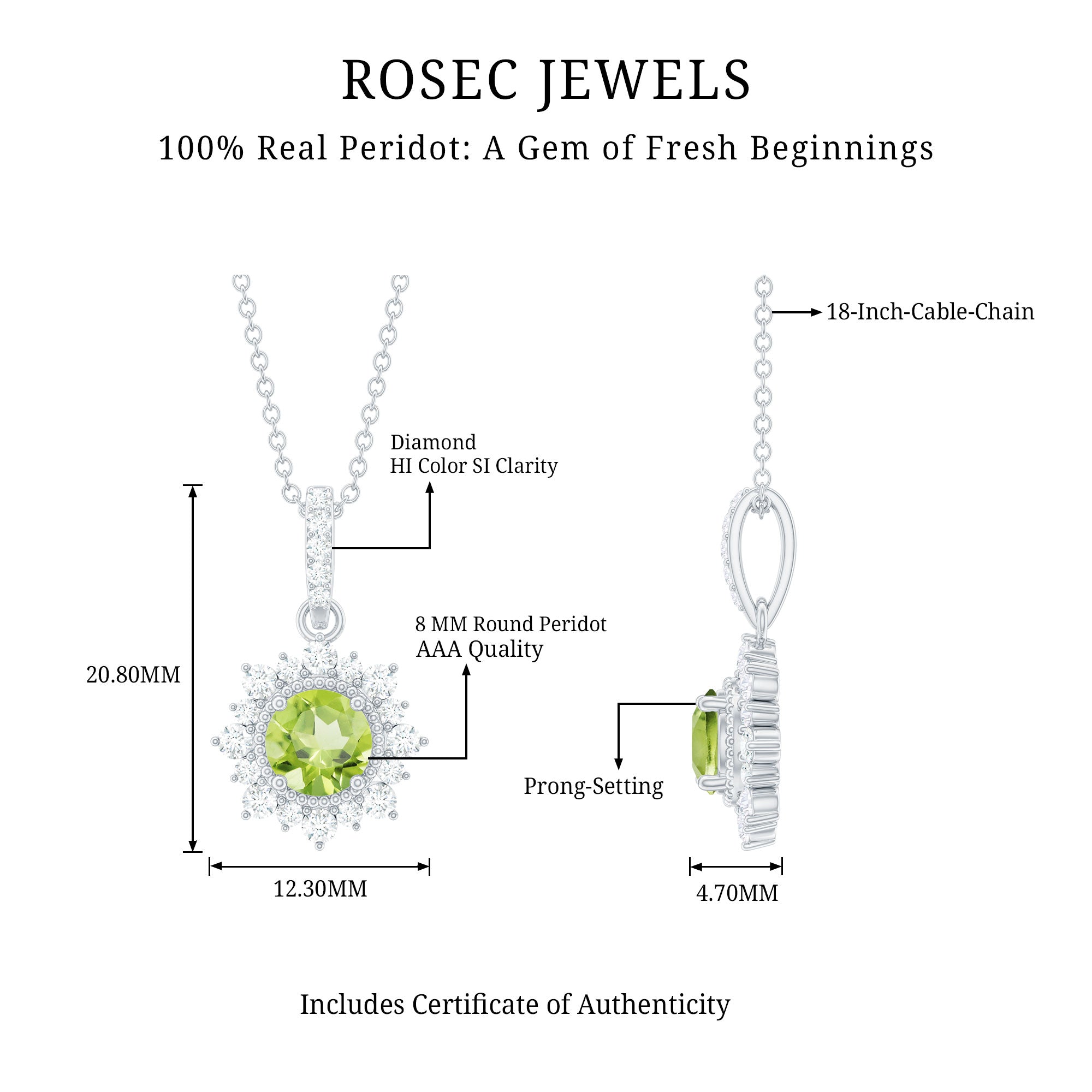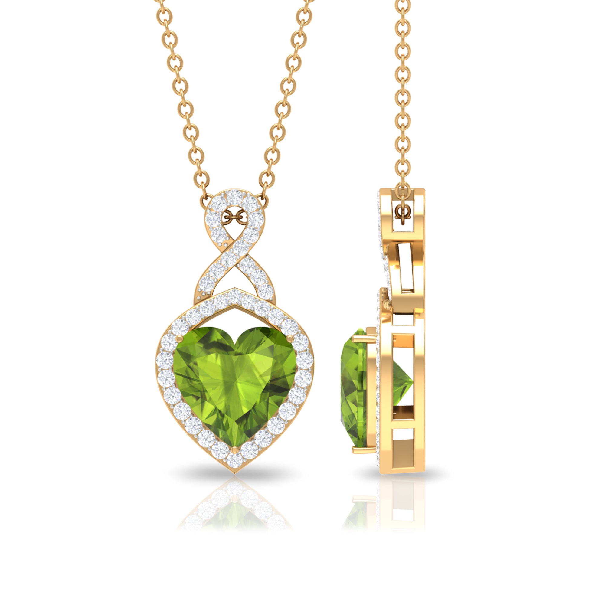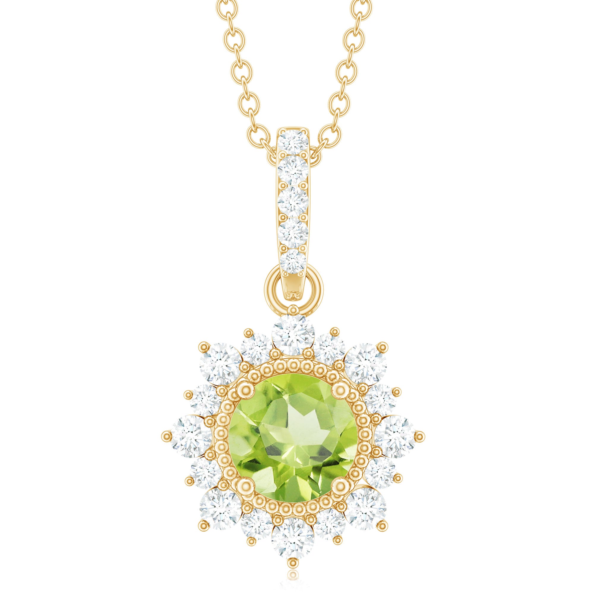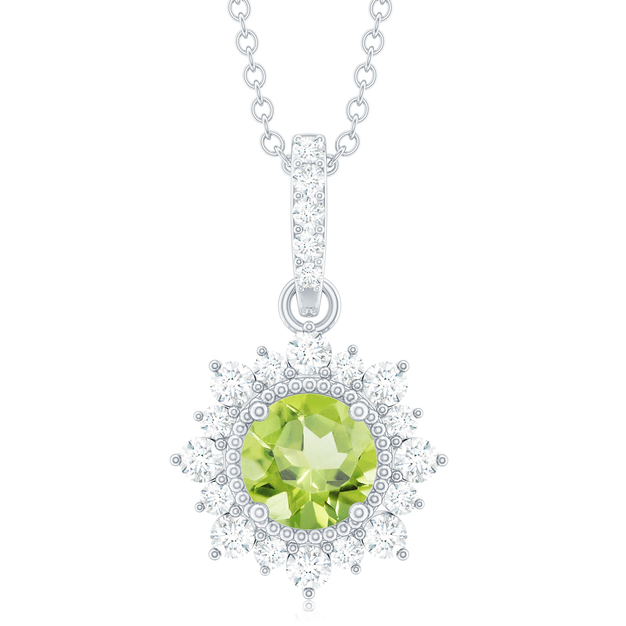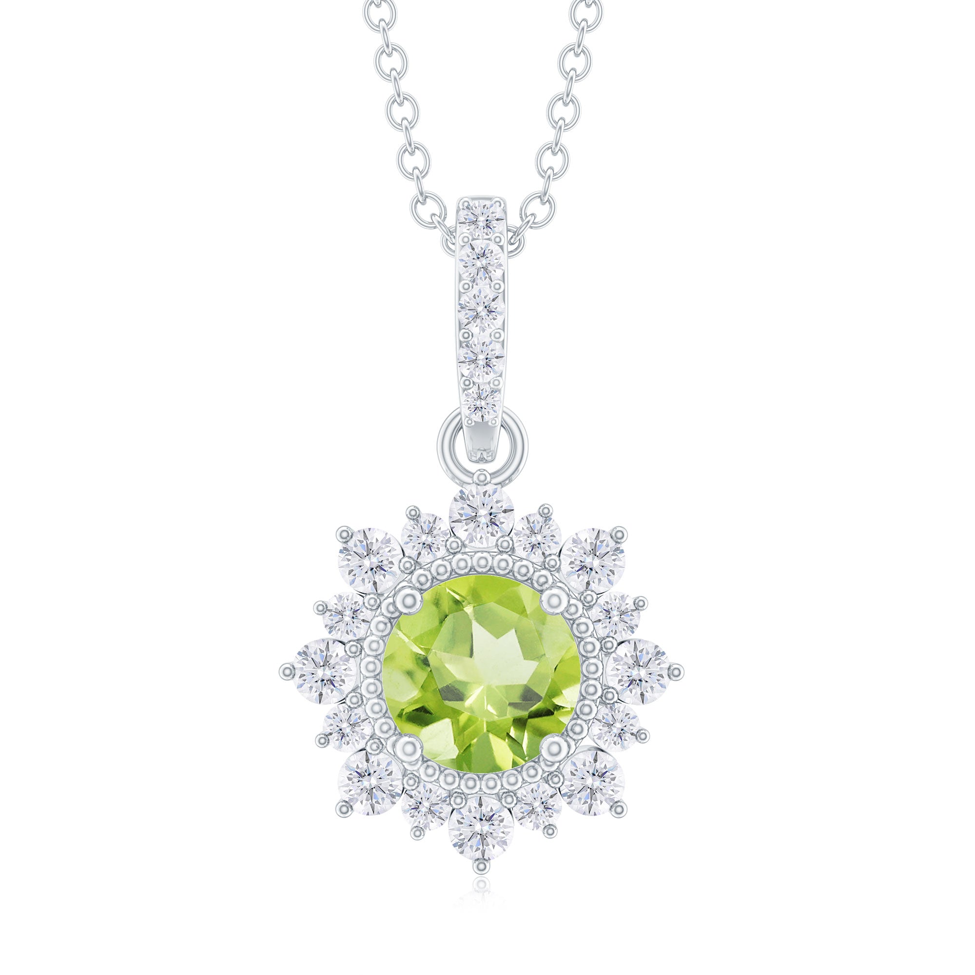 Halo Necklaces: Halo peridot necklaces wrap the primary peridot with a stunning halo of smaller diamonds or gemstones. This design not only increases the peridot's brilliance, but also produces the illusion of a larger and more dazzling gem.