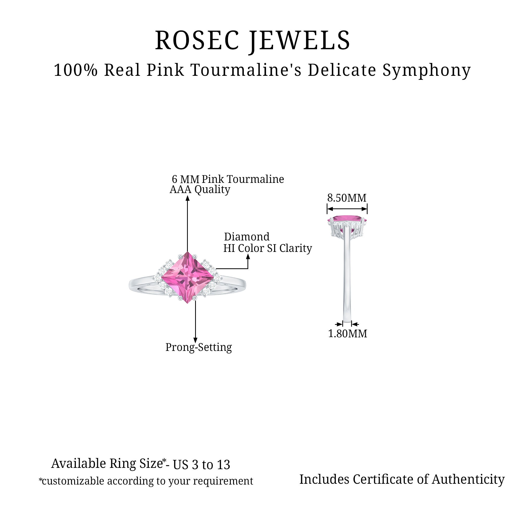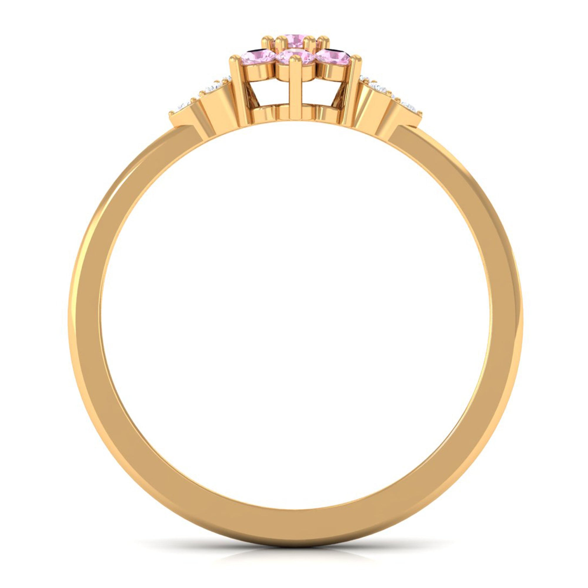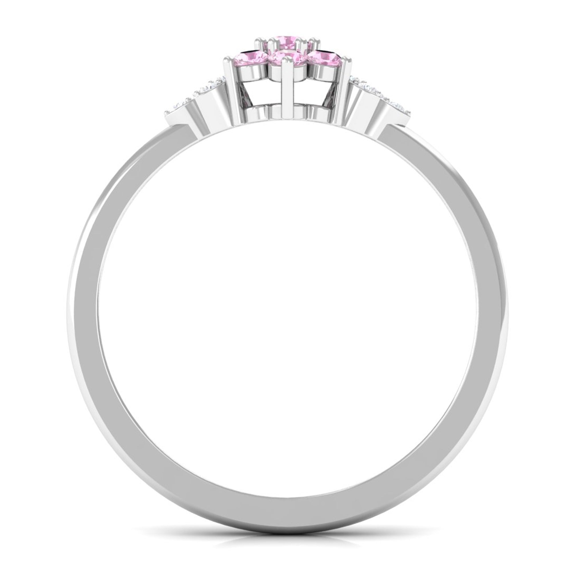 Unlike its specific symbolism, a Pink Tourmaline Promise Ring isn’t defined by a set style. It could be a Classic Pink Tourmaline Solitaire Ring that is relatively understated thanks to its dainty size of 4 MM. Or to lend a decorative visual appeal, it could be accentuated with side-stones of Diamond/Moissanite, floral or nature-inspired detailing, or even meaningful infinity motifs.
