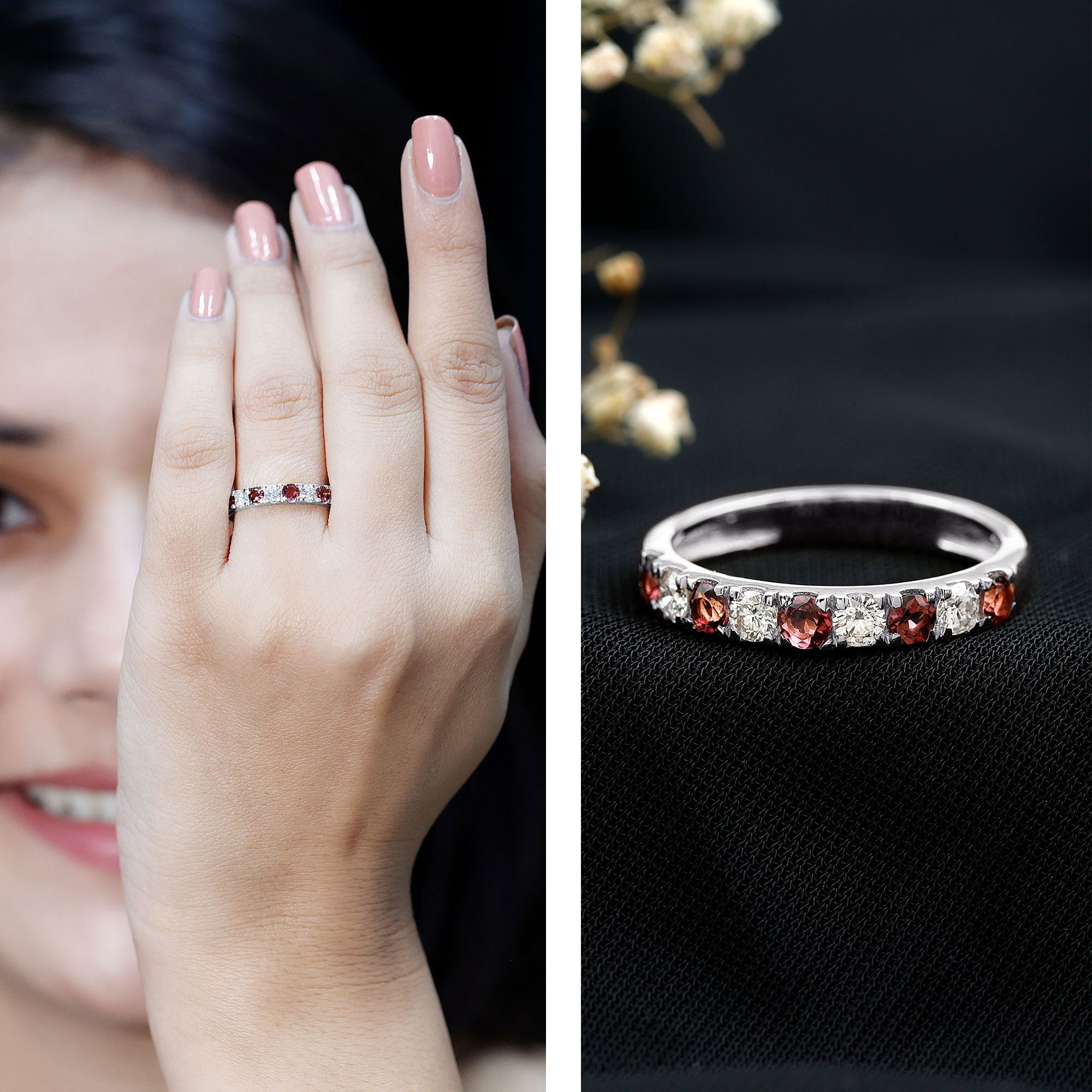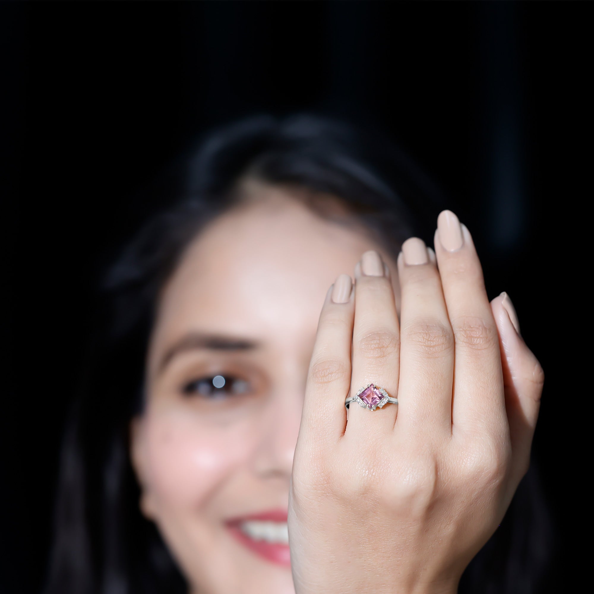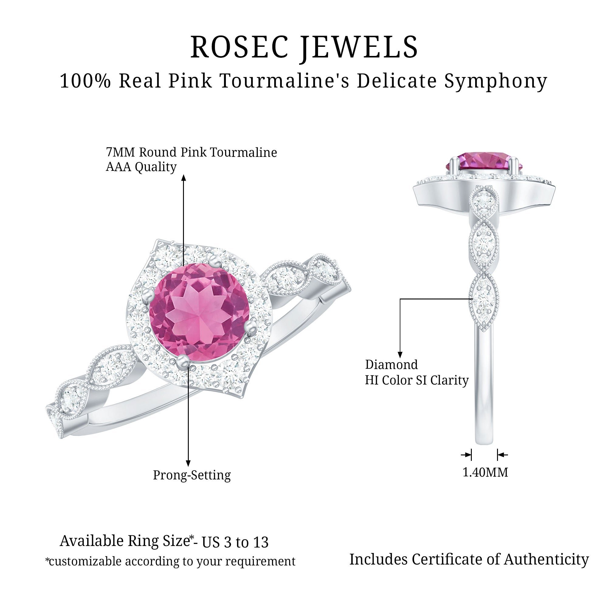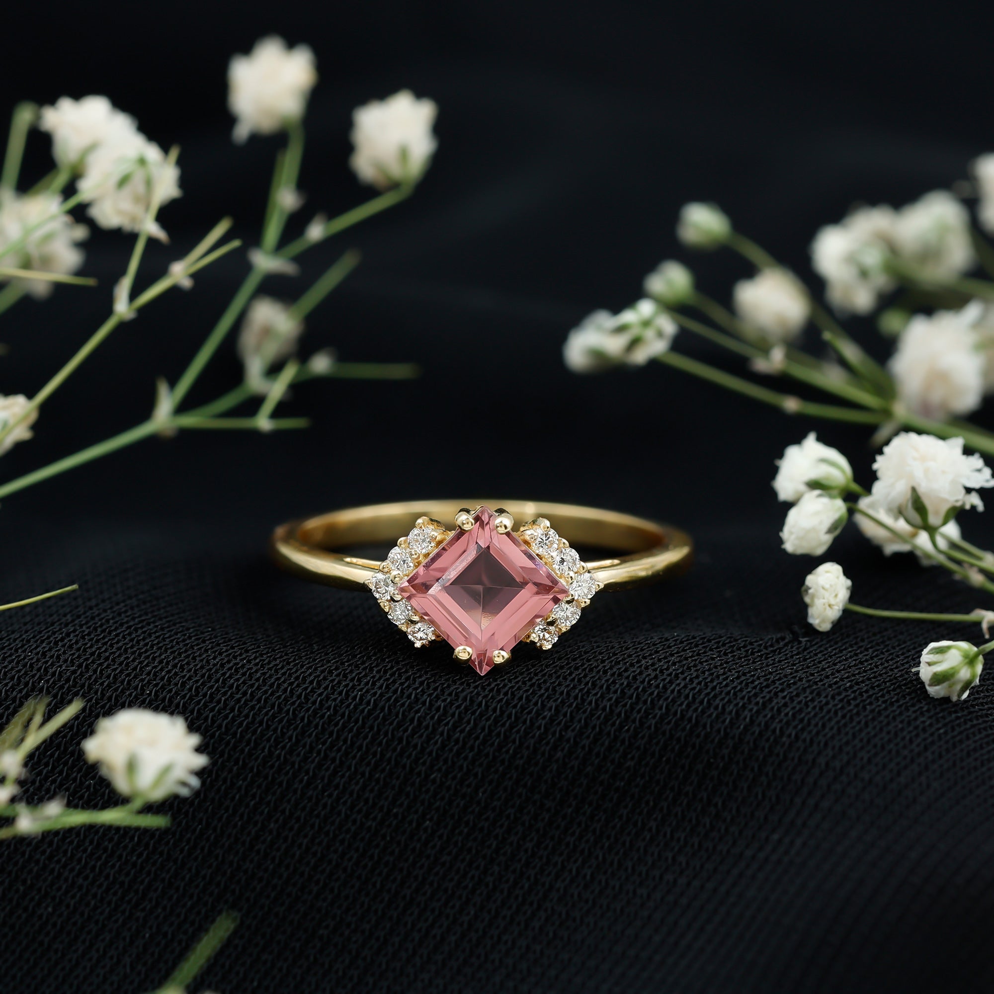 Unlike its specific symbolism, a Pink Tourmaline Promise Ring isn’t defined by a set style. It could be a Classic Pink Tourmaline Solitaire Ring that is relatively understated thanks to its dainty size of 4 MM. Or to lend a decorative visual appeal, it could be accentuated with side-stones of Diamond/Moissanite, floral or nature-inspired detailing, or even meaningful infinity motifs.