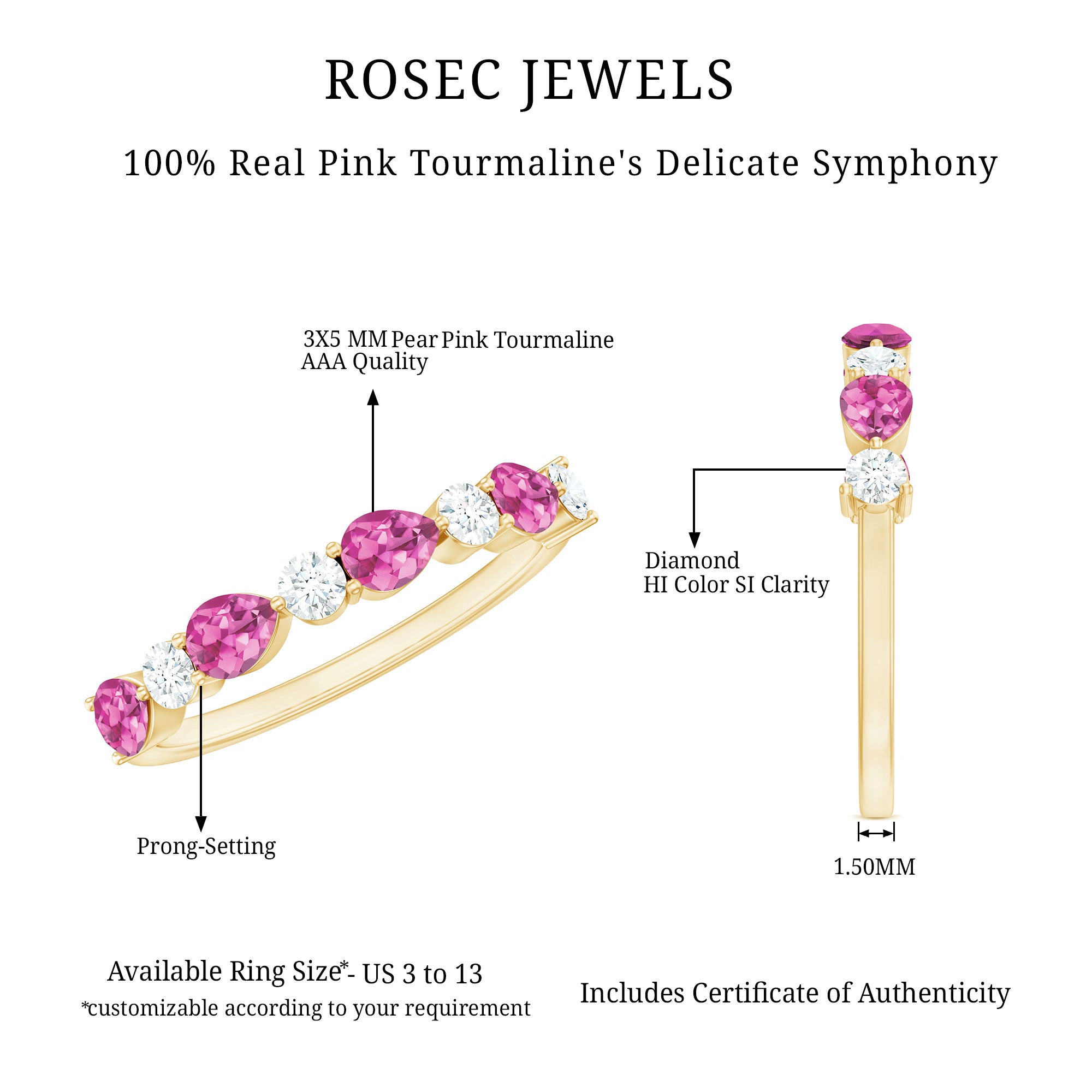 Also, did we tell you? Apart from offering a versatile collection, we can also breathe life into your dream designs with our Custom Pink Tourmaline Rings.
