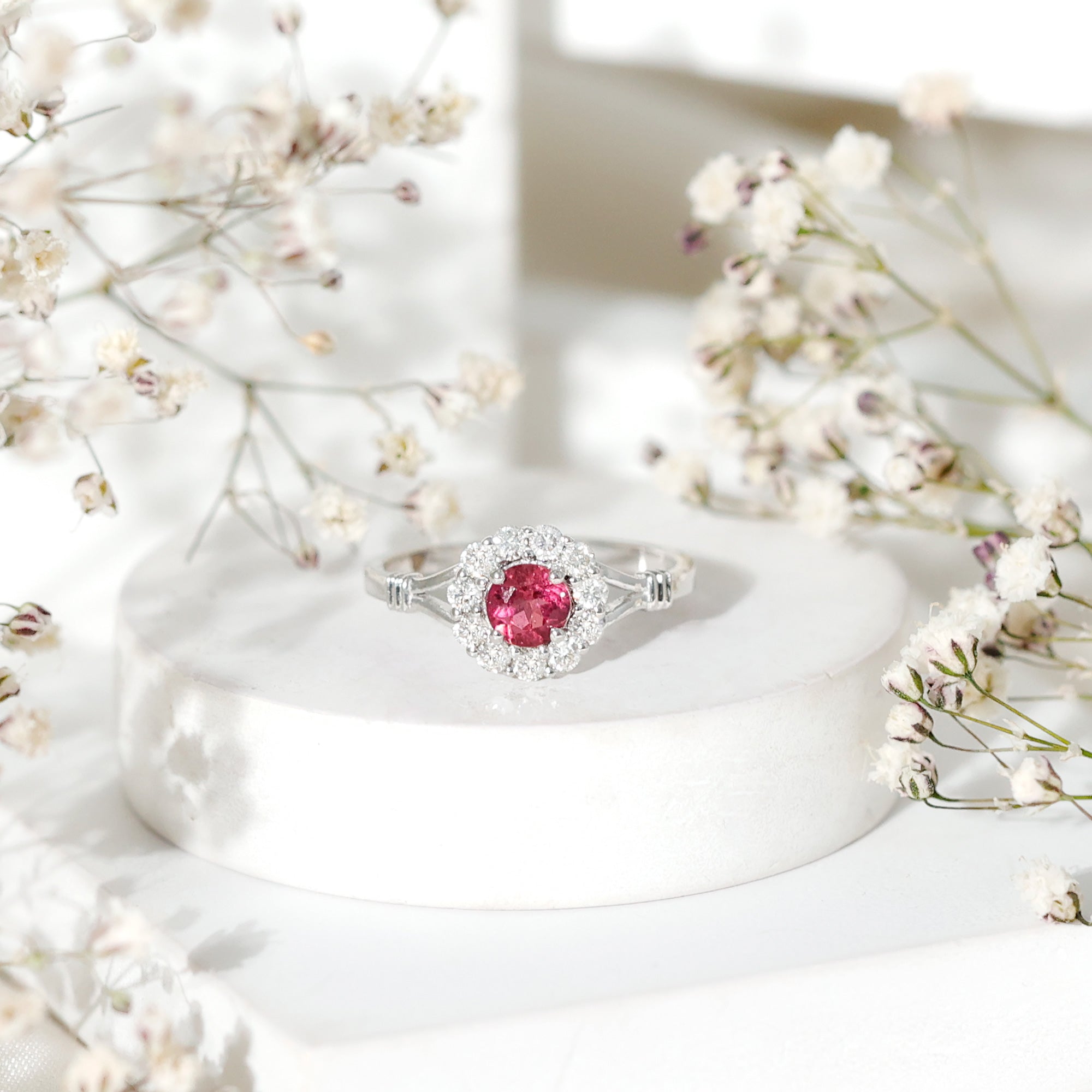 Pink Tourmaline Halo Ring