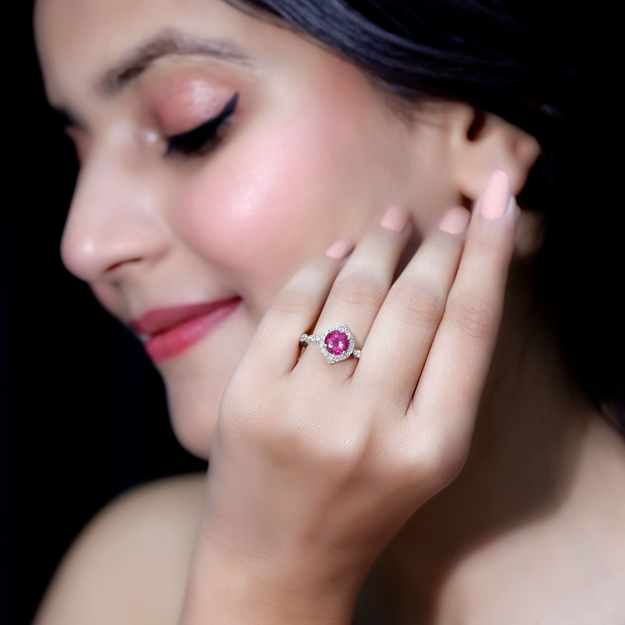Apart from that, don’t forget to take a trip to a professional jeweler for a thorough inspection and cleaning of your ring every once a year. Make sure you’re storing it away from harder gemstones (preferably in a velvet case) to avoid any hard blows. Also, remember to keep your gemstone as far away from chemically-loaded products (soaps, shampoos, makeup for instance) as possible to keep the bright pink color of your Pink Tourmaline from fading.
