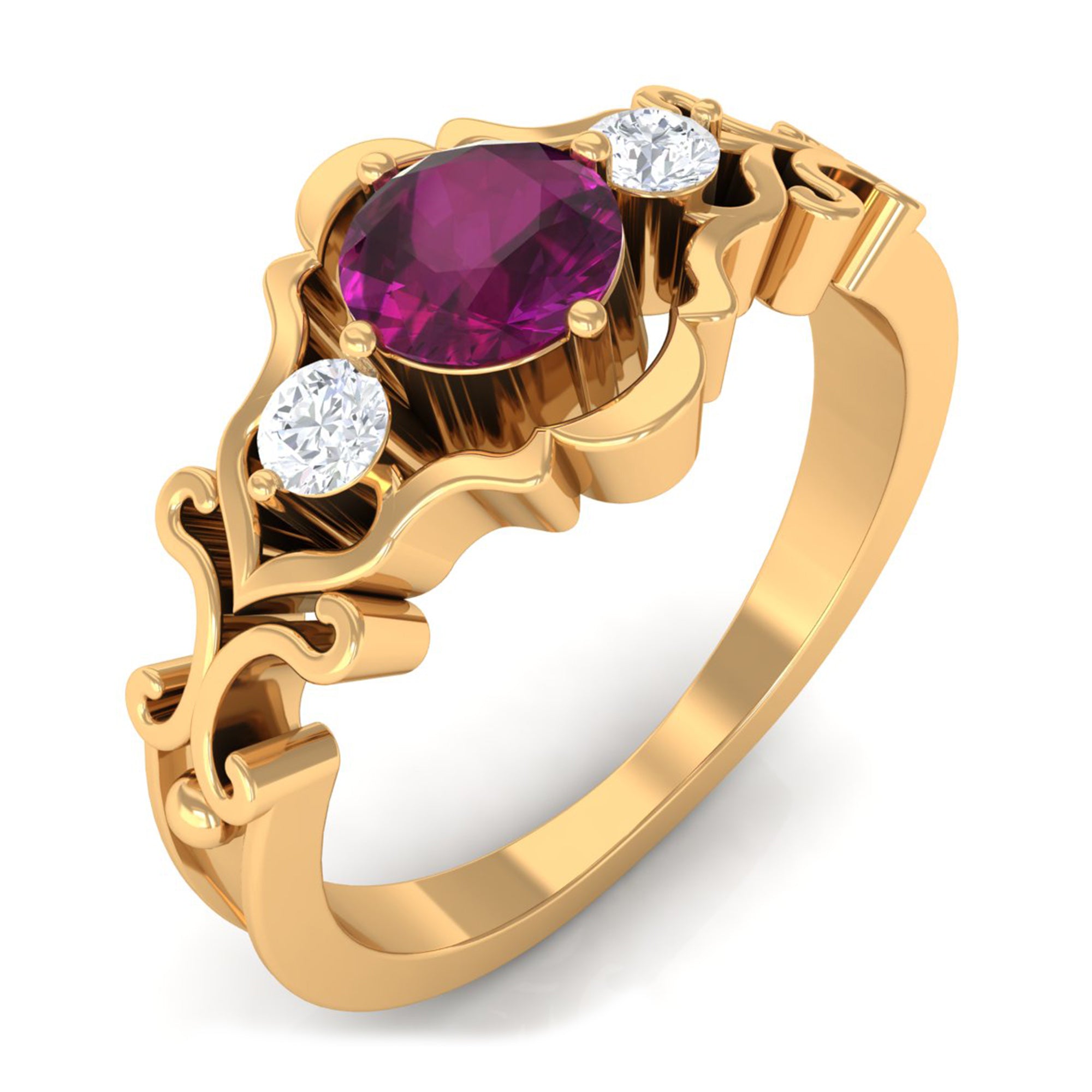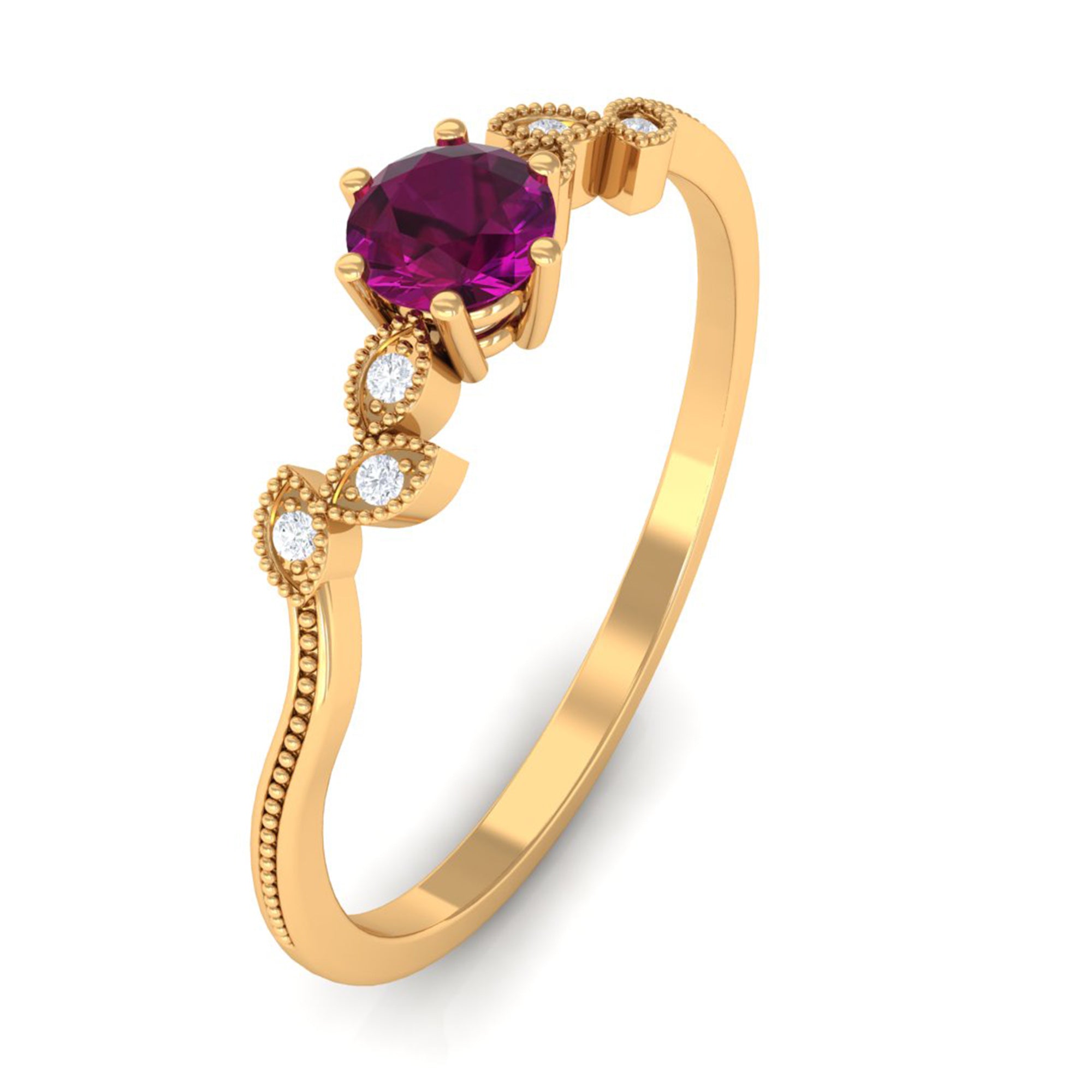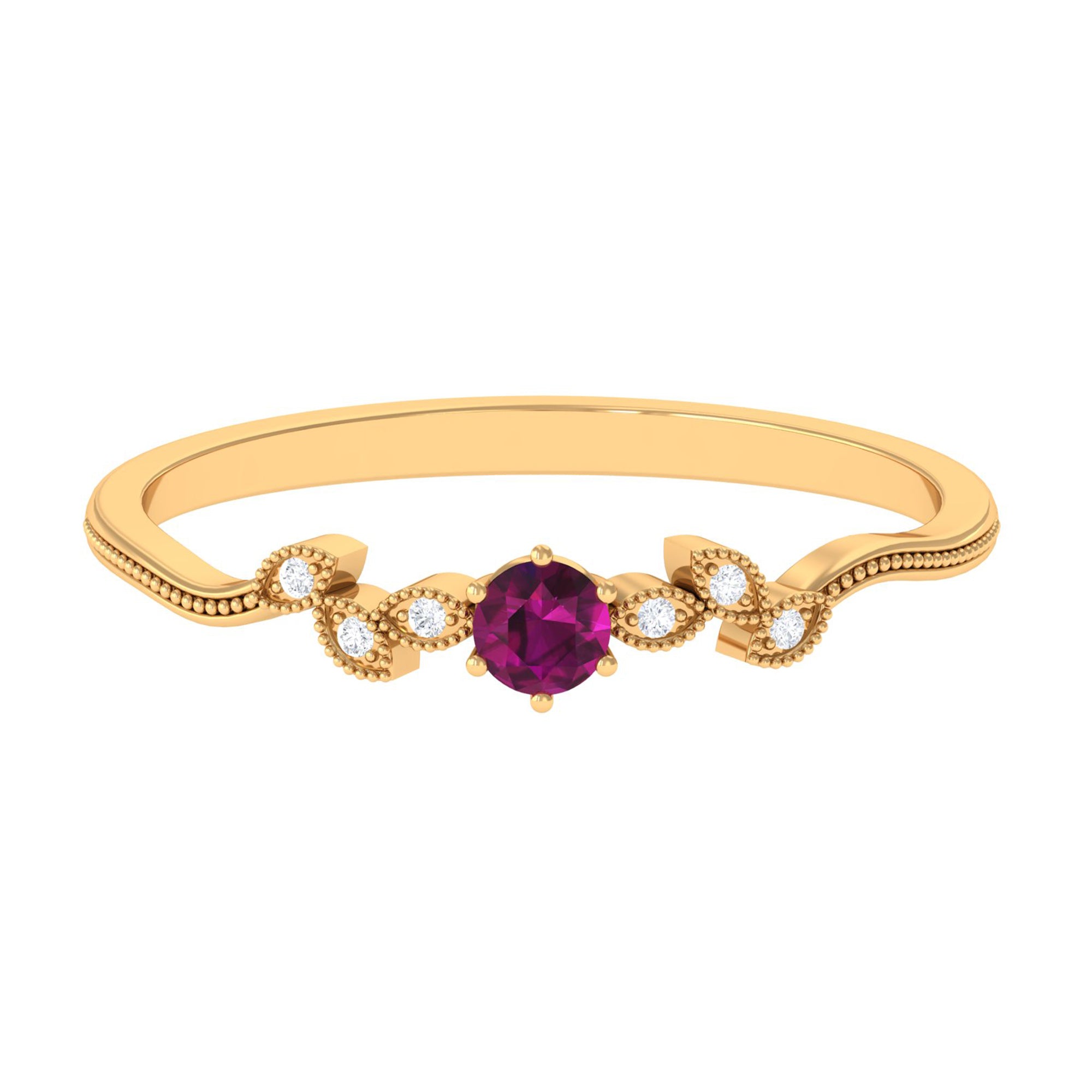 Inspired by the old-school designs from Art Deco, Edwardian, and Victorian Eras, a Vintage Rhodolite Ring looks like a wearable piece of art. It boasts ornately crafted filigree, milgrain, and retro detailing as well as artistic abstract patterns that ooze a vintage vibe. Apart from that, it makes for a beautiful Rhodolite Engagement Ring for the ones who desire a love emblem that carries a story.