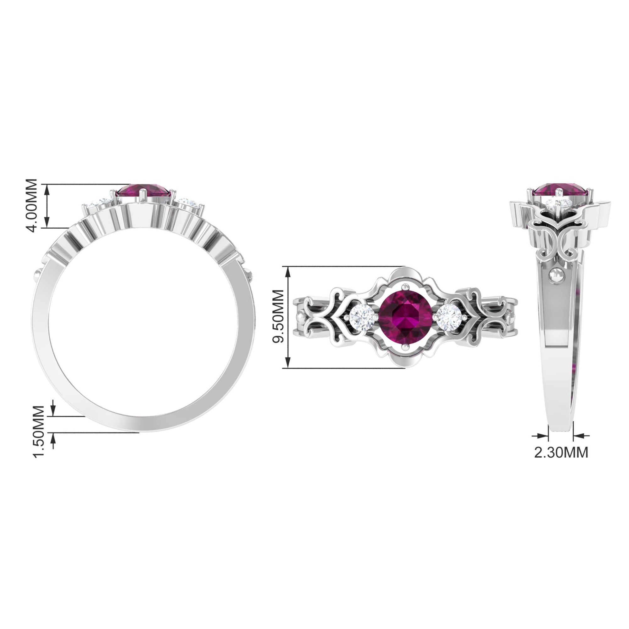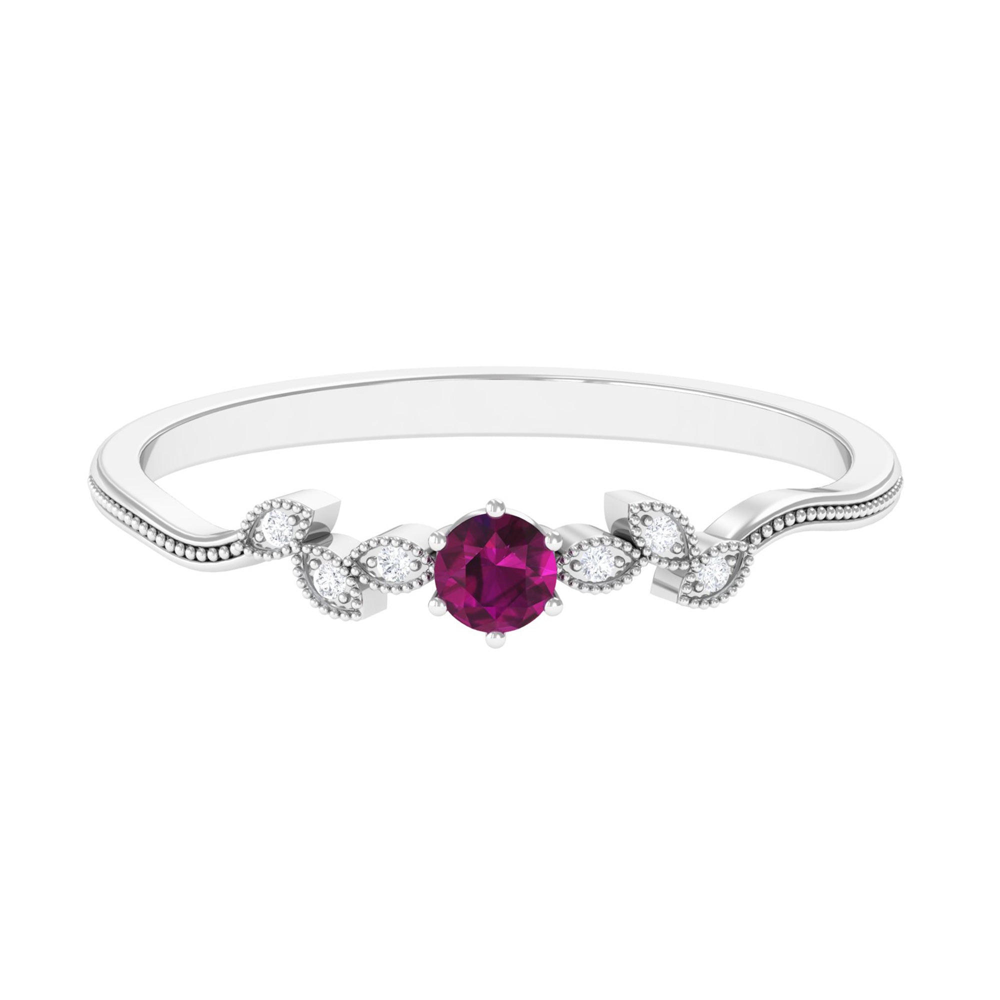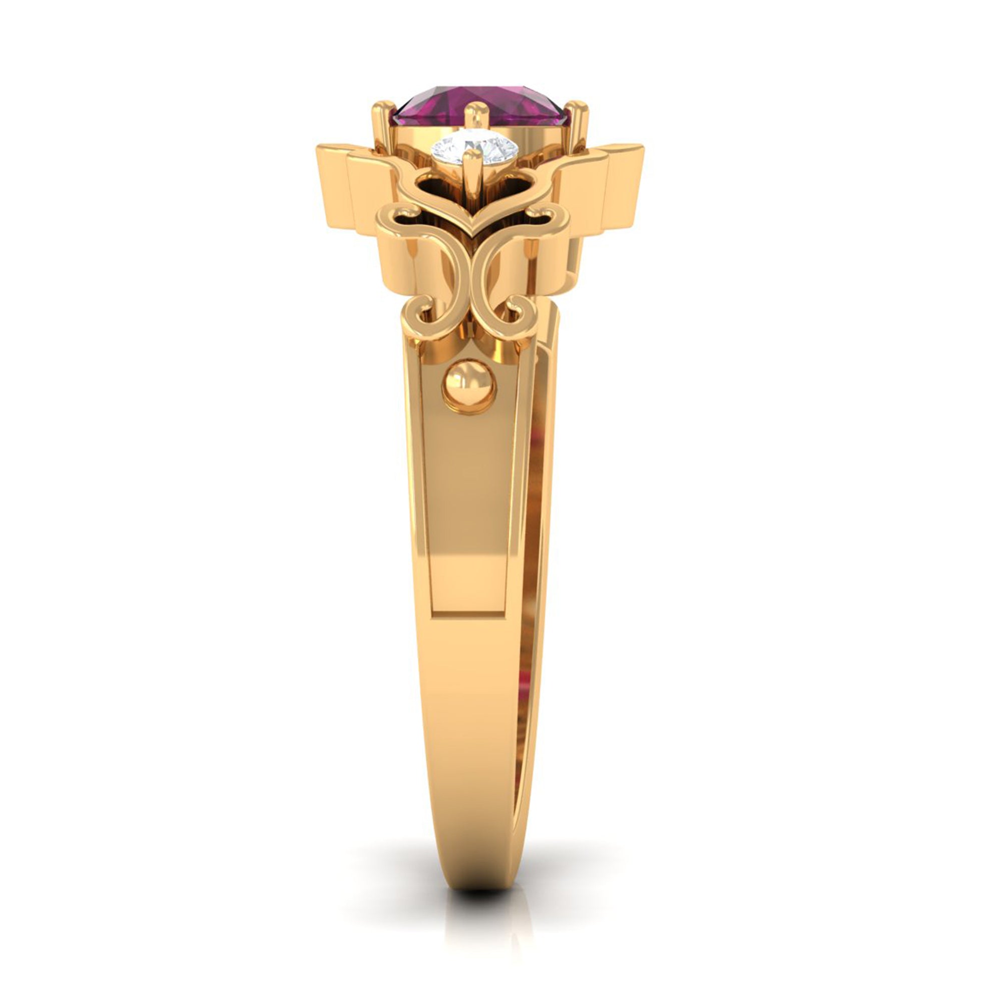 Inspired by the old-school designs from Art Deco, Edwardian, and Victorian Eras, a Vintage Rhodolite Ring looks like a wearable piece of art. It boasts ornately crafted filigree, milgrain, and retro detailing as well as artistic abstract patterns that ooze a vintage vibe. Apart from that, it makes for a beautiful Rhodolite Engagement Ring for the ones who desire a love emblem that carries a story.