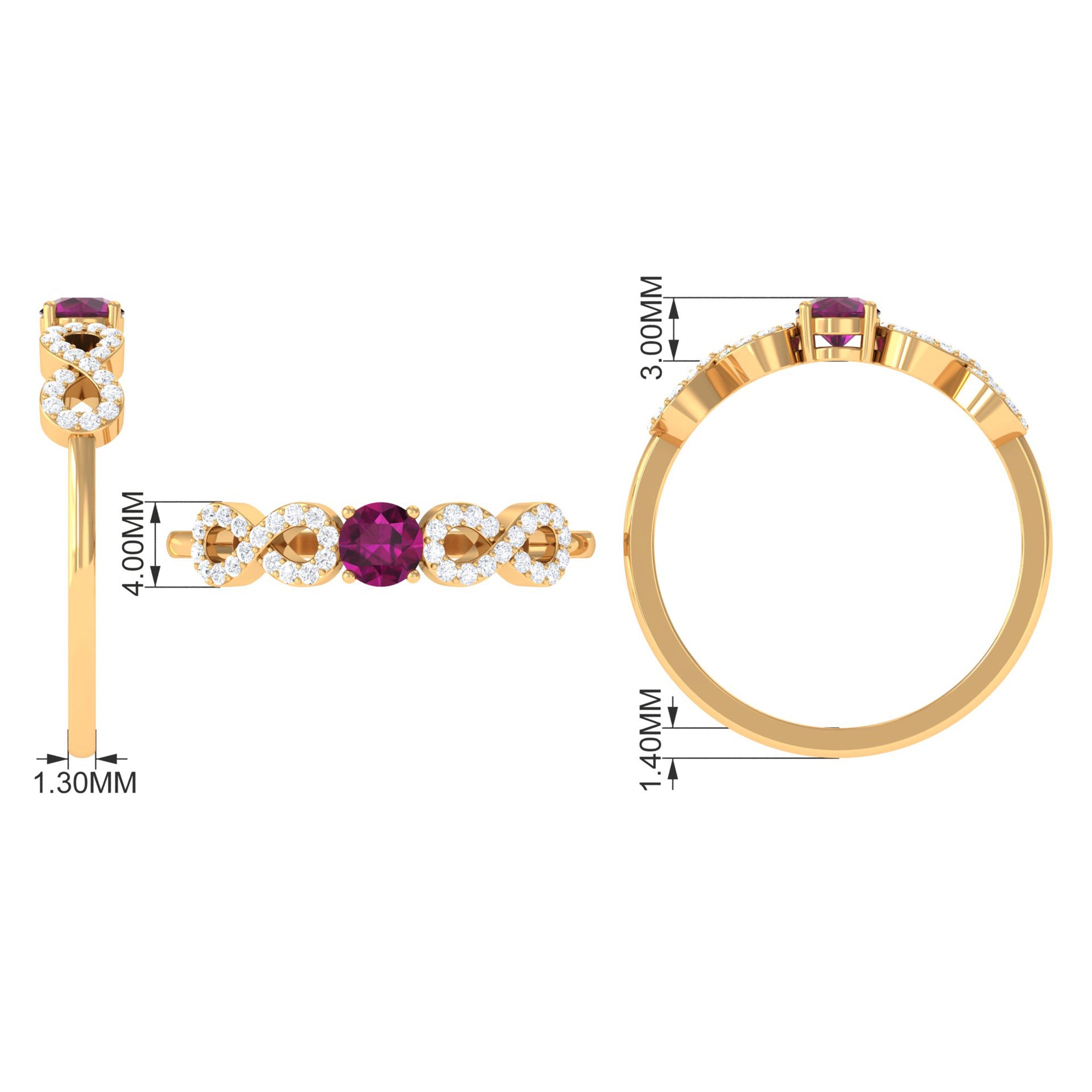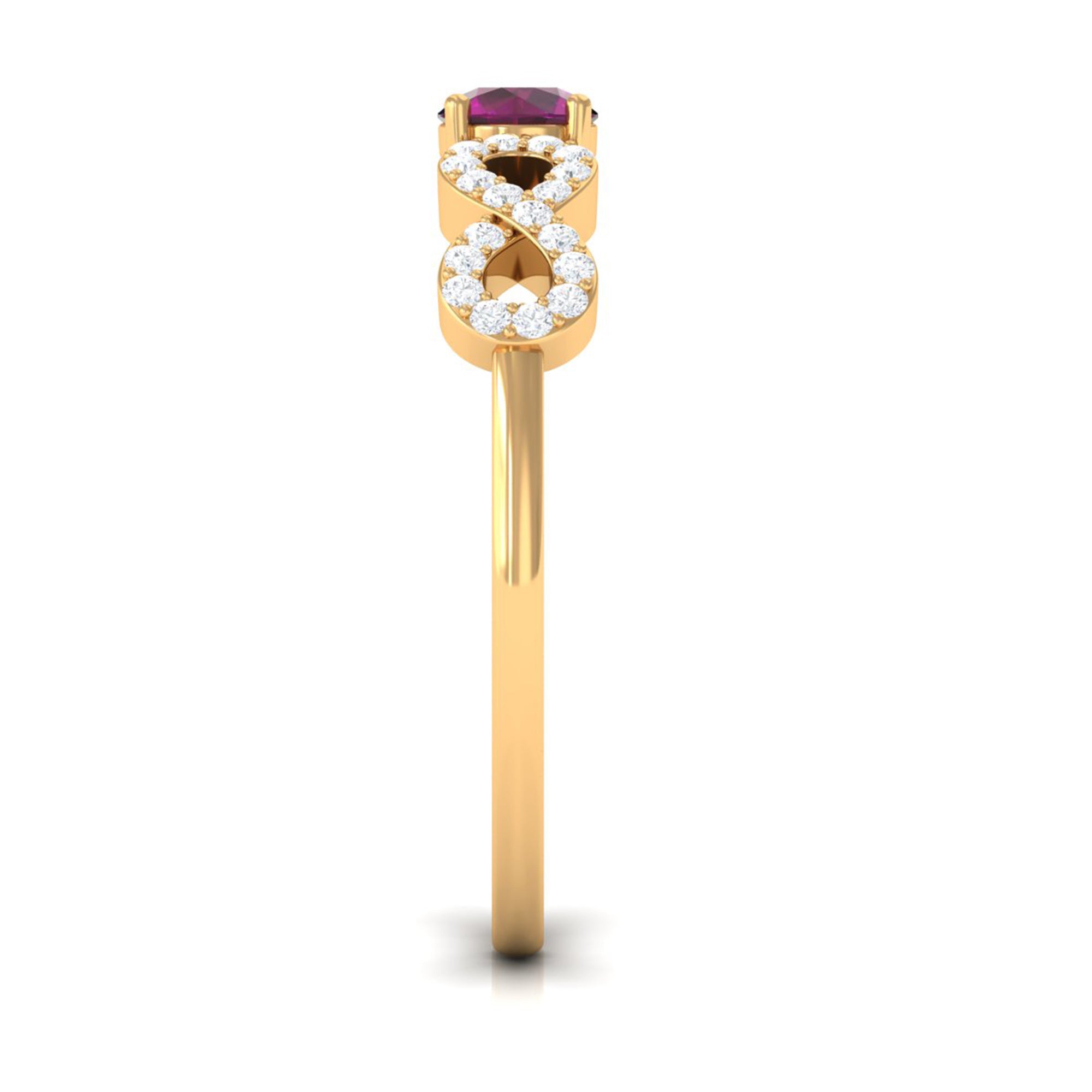 A Rhodolite Promise Ring is one such exceptional ring that isn’t characterized by a specific style. It facilitates you with many options of designs. It could be an understated Rhodolite Solitaire Ring that isn’t any more than 4 MM in size. While if you fancy an eye-striking appeal, it is also beautified with elegant floral motifs, accents of diamond/moissanite, or meaningful infinity symbol. However, the most popular out of all is a Rhodolite Heart Ring. If you haven’t guessed by the name by now, a Rhodolite Promise Ring signifies that you’re ready to take your relationship to the next stage and works as an emblem of your promise of commitment.