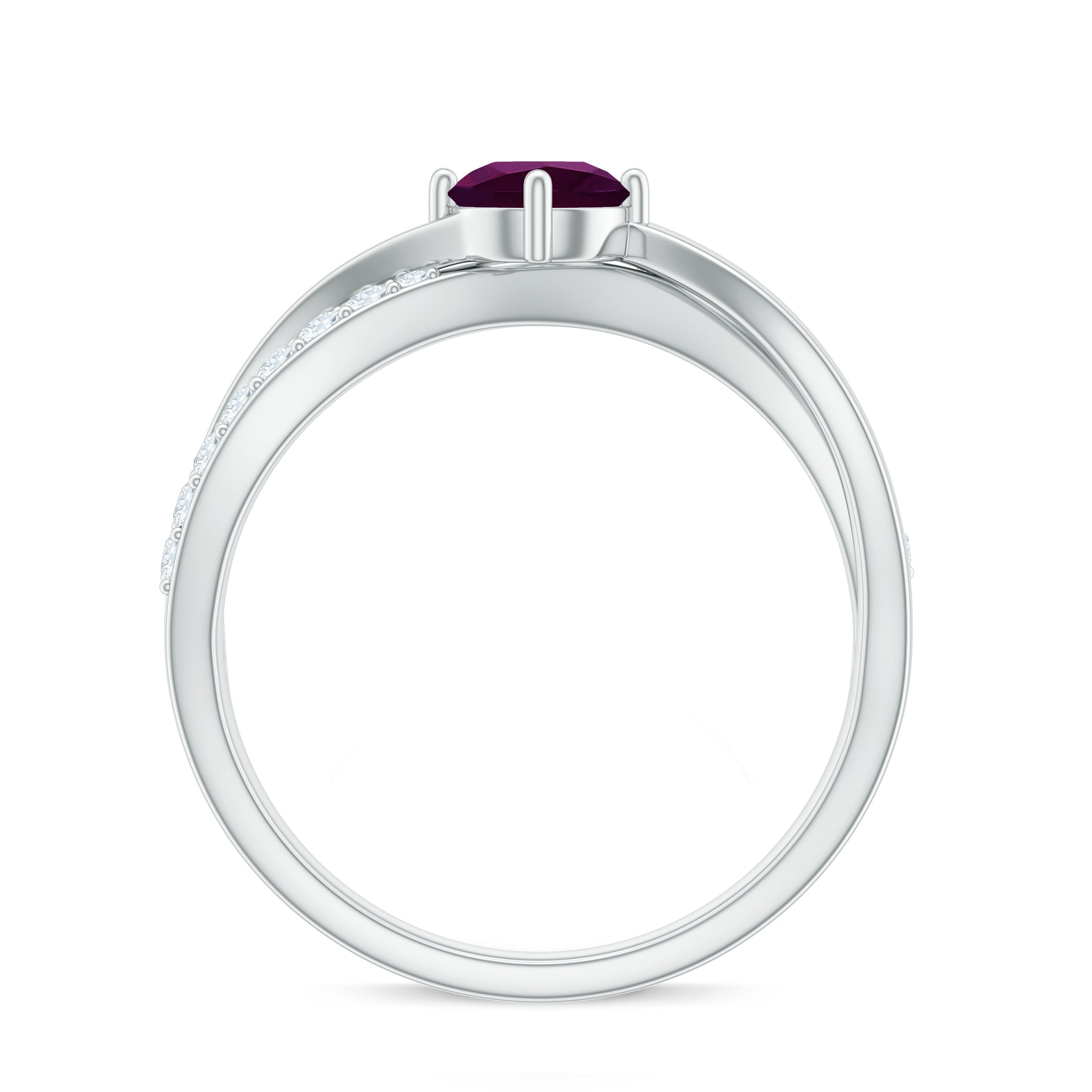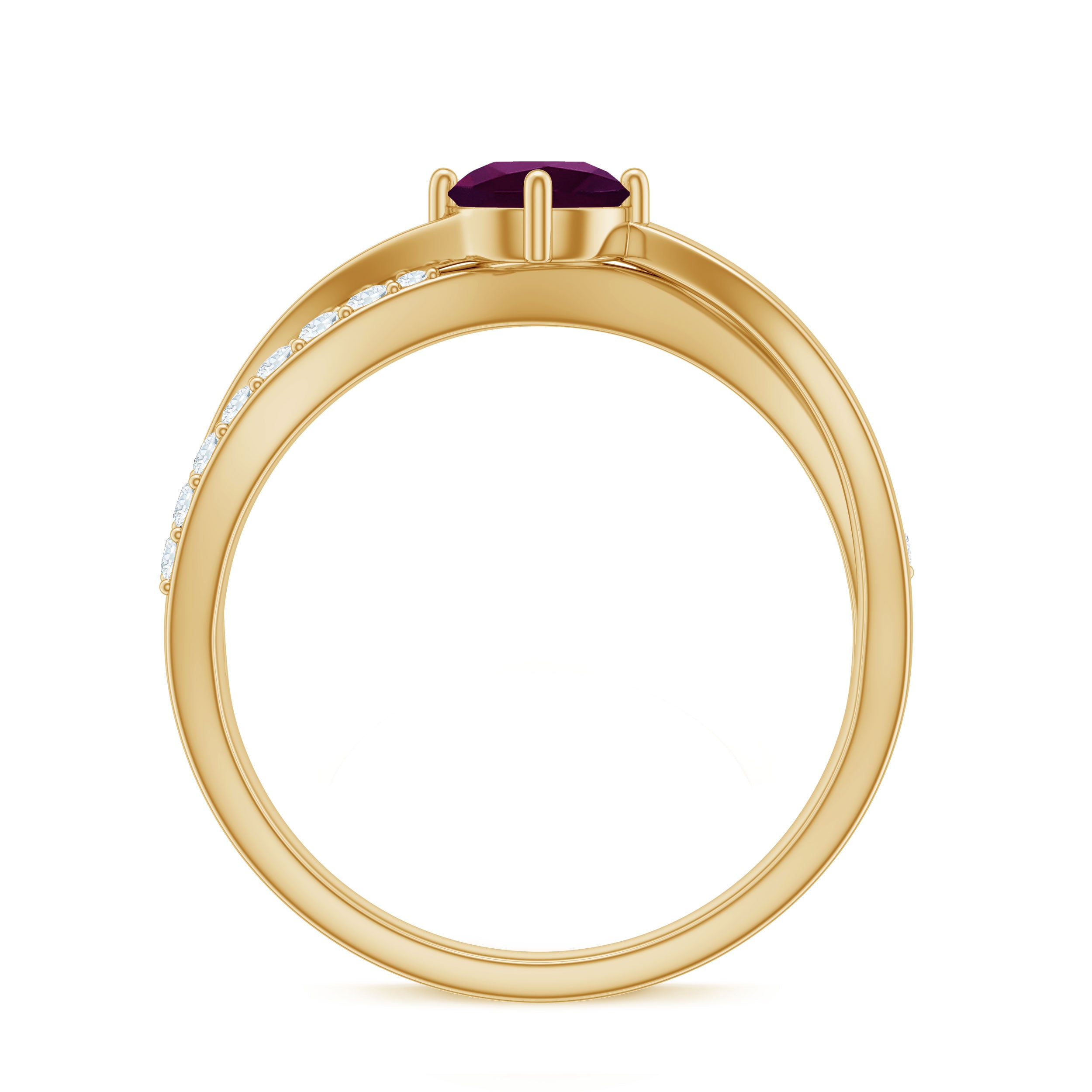 Just like the name suggests, a Rhodolite Eternity Ring is bejeweled with a row of Rhodolite all over the band. So, if you’re too mesmerized by the romantic rosy hue of Rhodolite, this style isn’t something to miss out on. Its symbolism does complete justice to the style. The endless circle of Rhodolite reflects upon the kind of love that knows no bounds, which also makes it a highly treasured Rhodolite Wedding Ring.