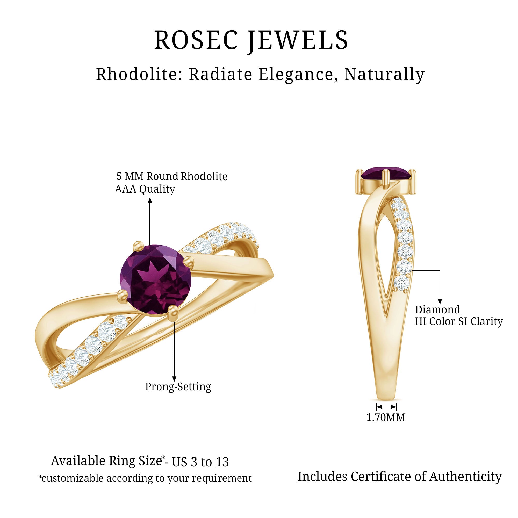 Be it a white, rose, or yellow gold Rhodolite Ring, you can slip it on every day!