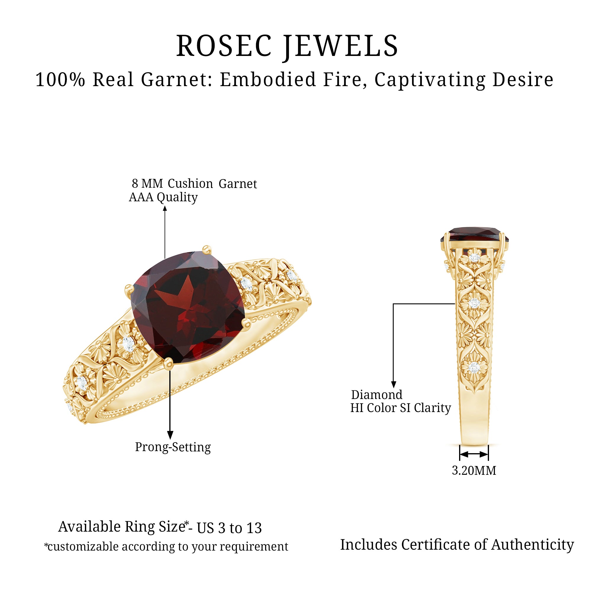 Hallmarked Gold: The Gold we ornament each of your ring in has also been hallmarked. The hallmark on the gold reflects on the purity of the gold, which is expressed in terms of karats or fineness. It assures you of the genuineness of the gold. Please note that we only handcraft rings in 14K Gold since it strikes the perfect balance between durability and purity.