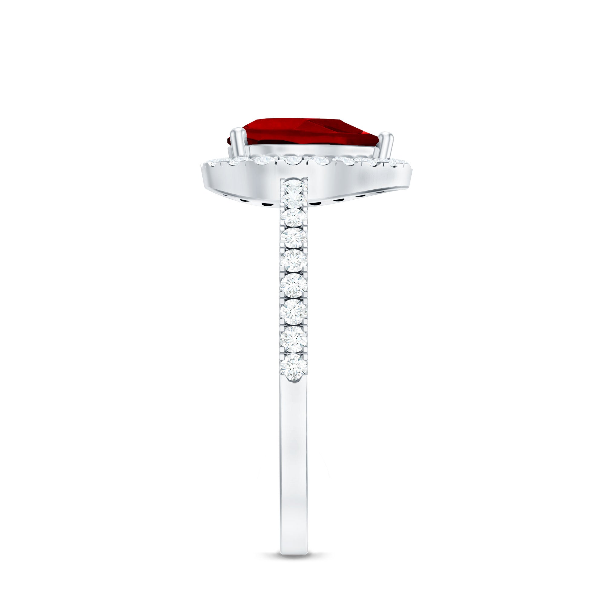 An added layer of sparkle is always a big yes! And that’s practically what drives the appeal for Gemstone Halo Rings. That’s because this style is all about sparkles and is characterized by a row of petite stones (usually diamond or moissanite) that encircle the center stone. Also, a pop of color of a colored gemstone accompanied by brilliance of diamonds/moissanite can get too hard to resist.