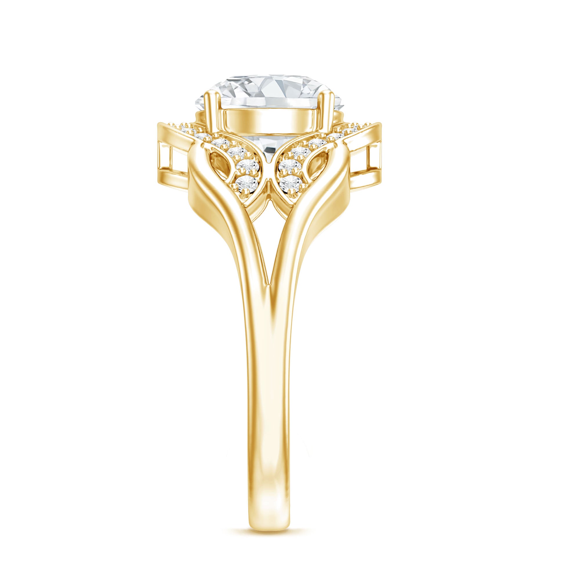 An added layer of sparkle is always a big yes! And that’s practically what drives the appeal for Gemstone Halo Rings. That’s because this style is all about sparkles and is characterized by a row of petite stones (usually diamond or moissanite) that encircle the center stone. Also, a pop of color of a colored gemstone accompanied by brilliance of diamonds/moissanite can get too hard to resist.