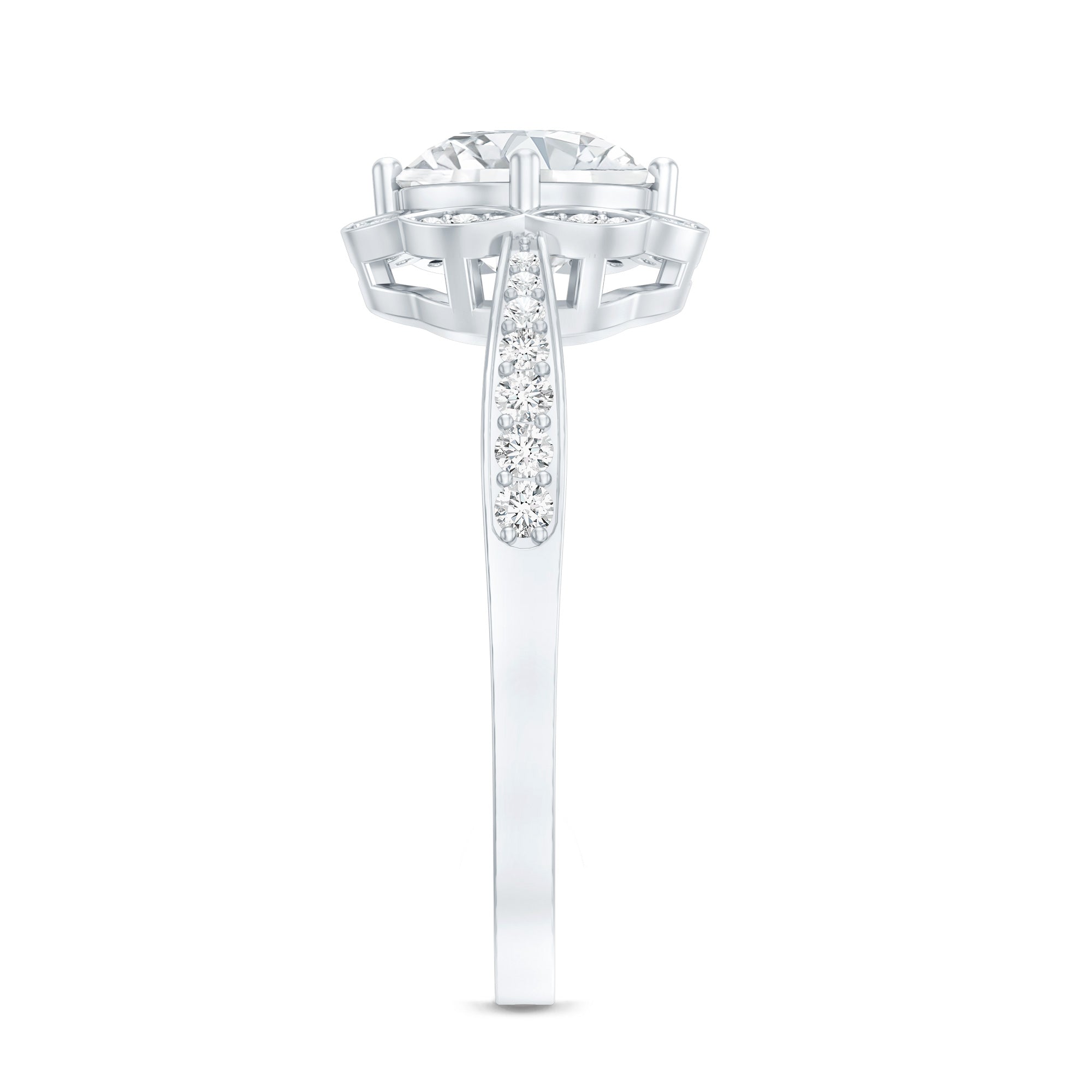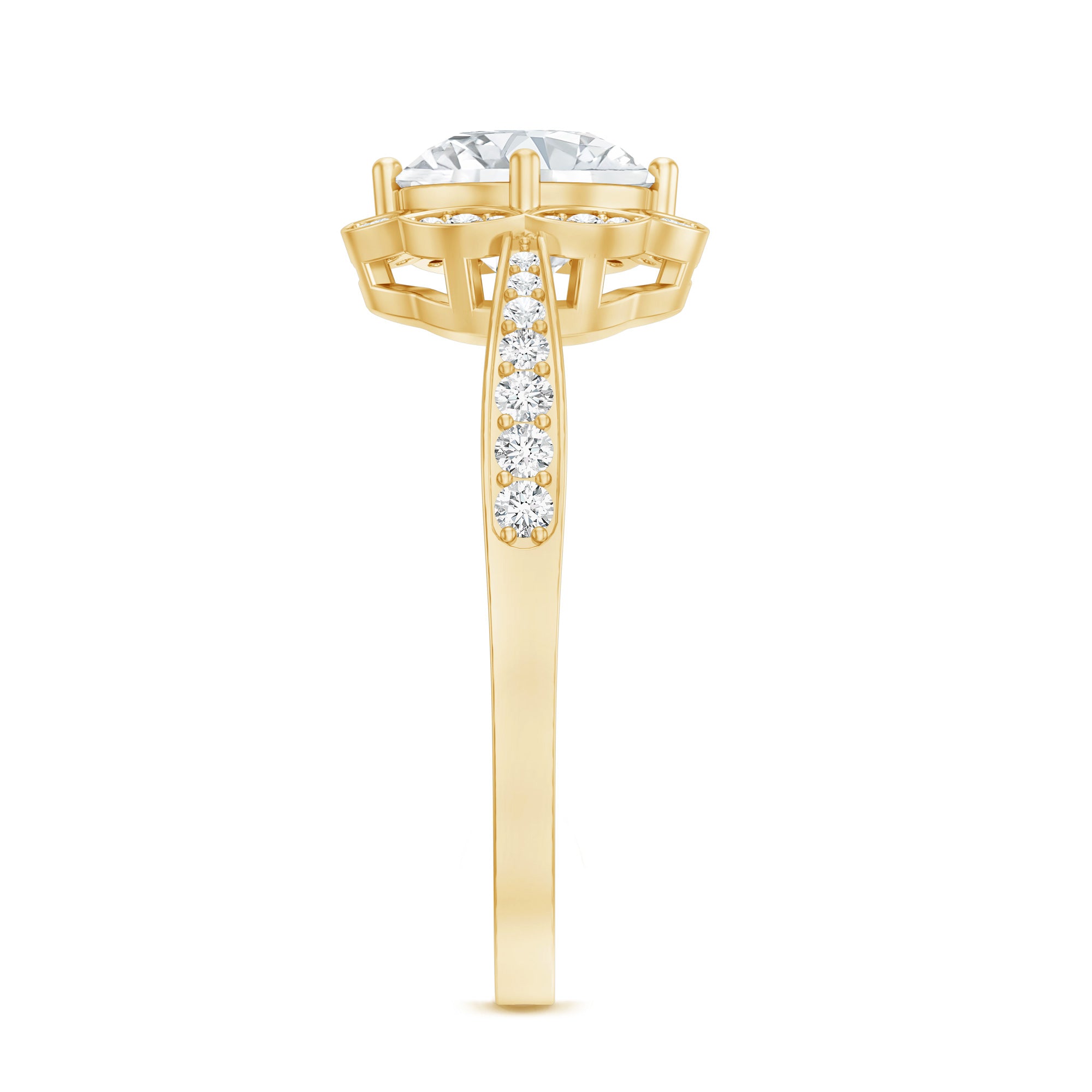 The Center Stone could be of the most traditional round shape or be on the fancier end of the spectrum (pear, marquise, etc.) or even ooze a vintage vibe (Asscher, emerald, etc). You’d be surprised to note what big a difference the shape plays in defining the aesthetics of your Solitaire Ring. The options are endless and everything ultimately boils down to your preference.