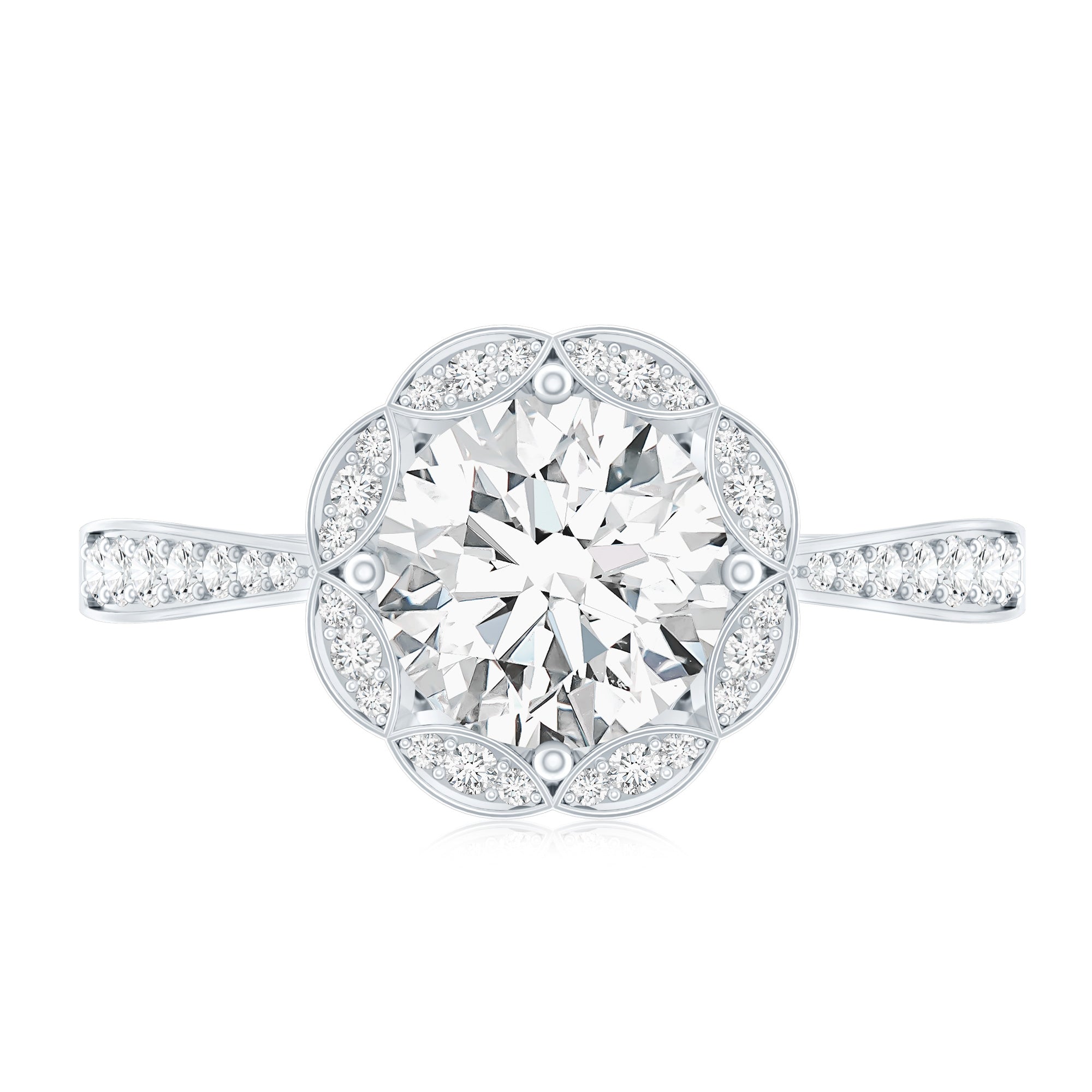 Wish to know a little secret? Not only does it sparkle at its best, but also deceives your eye by offering the illusion of a bigger center stone. So, you could totally take it to mean that it offers you the best of both worlds, making it one of the most unique gemstone rings for women out there!