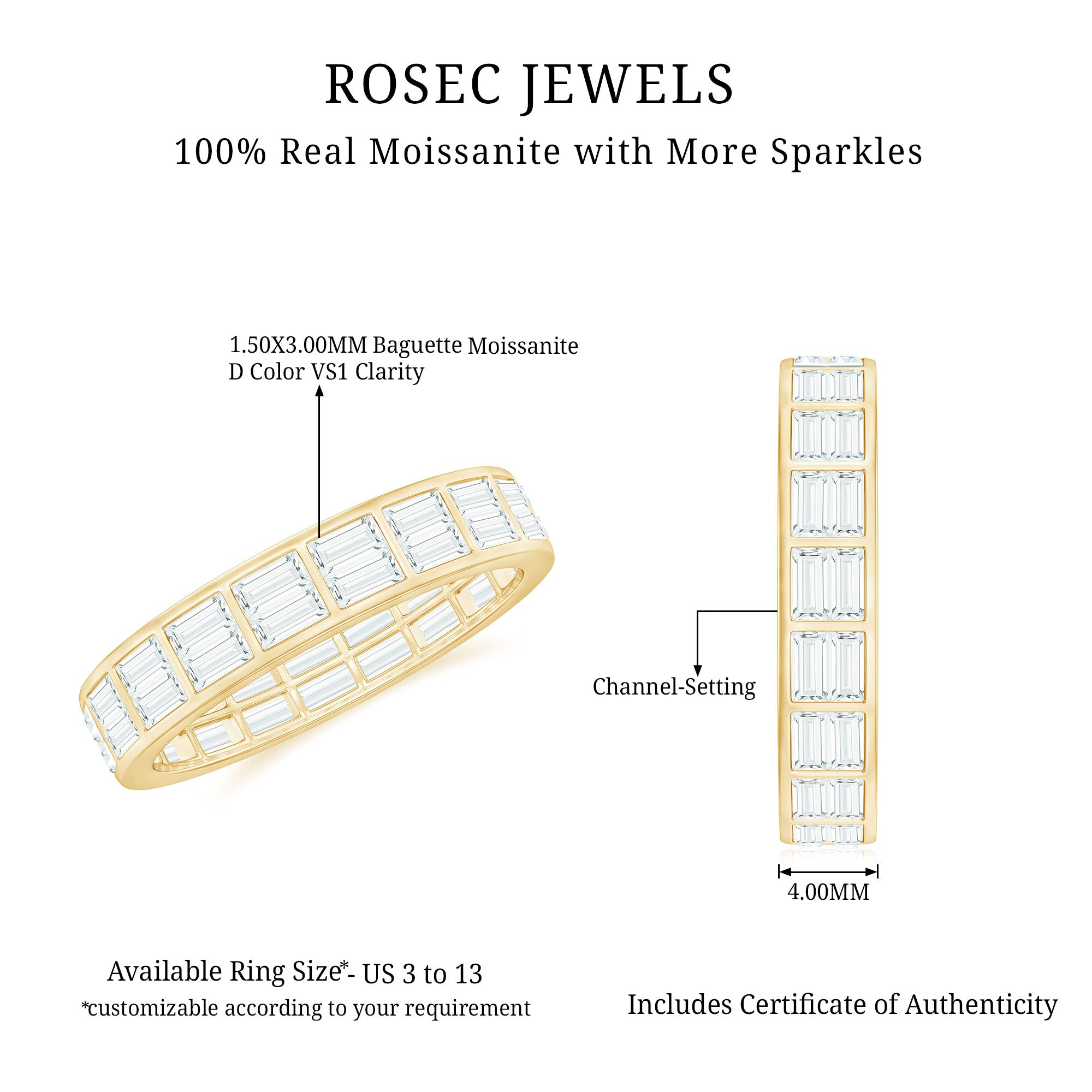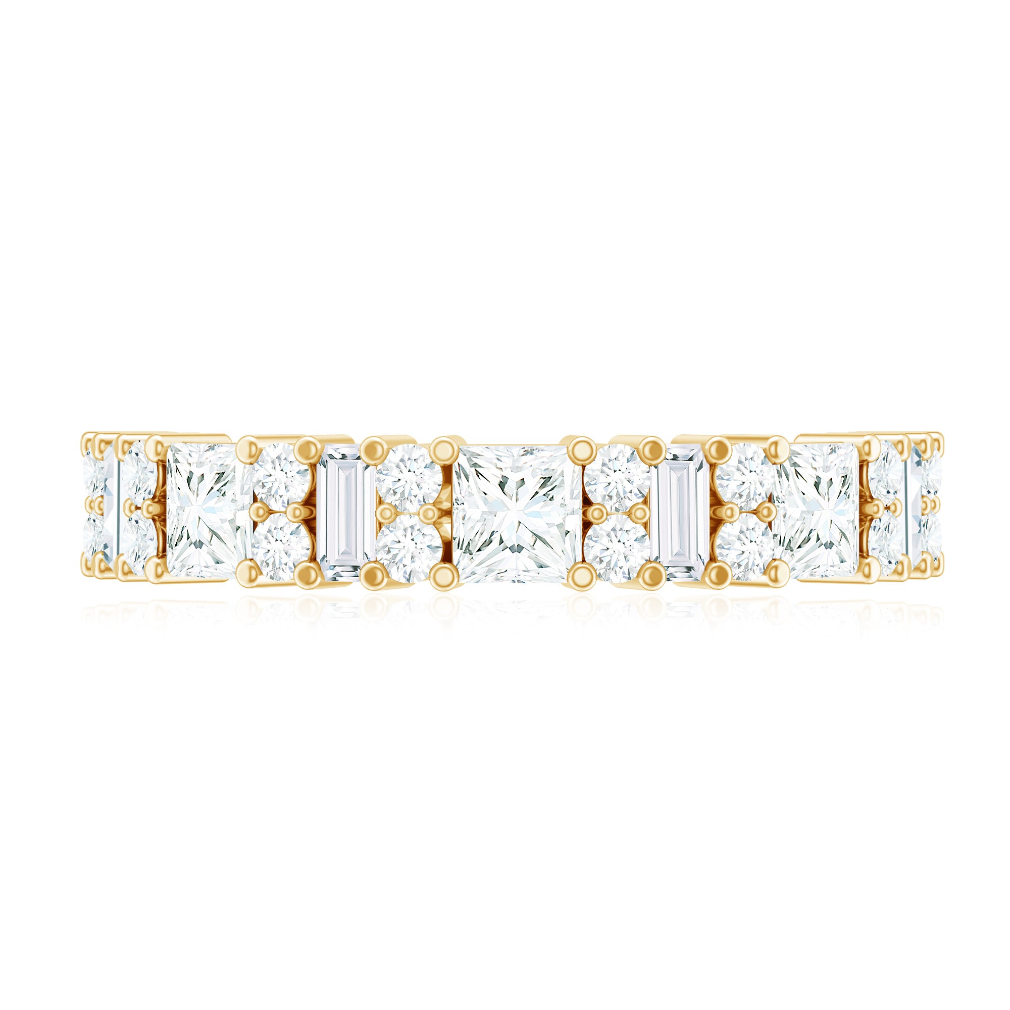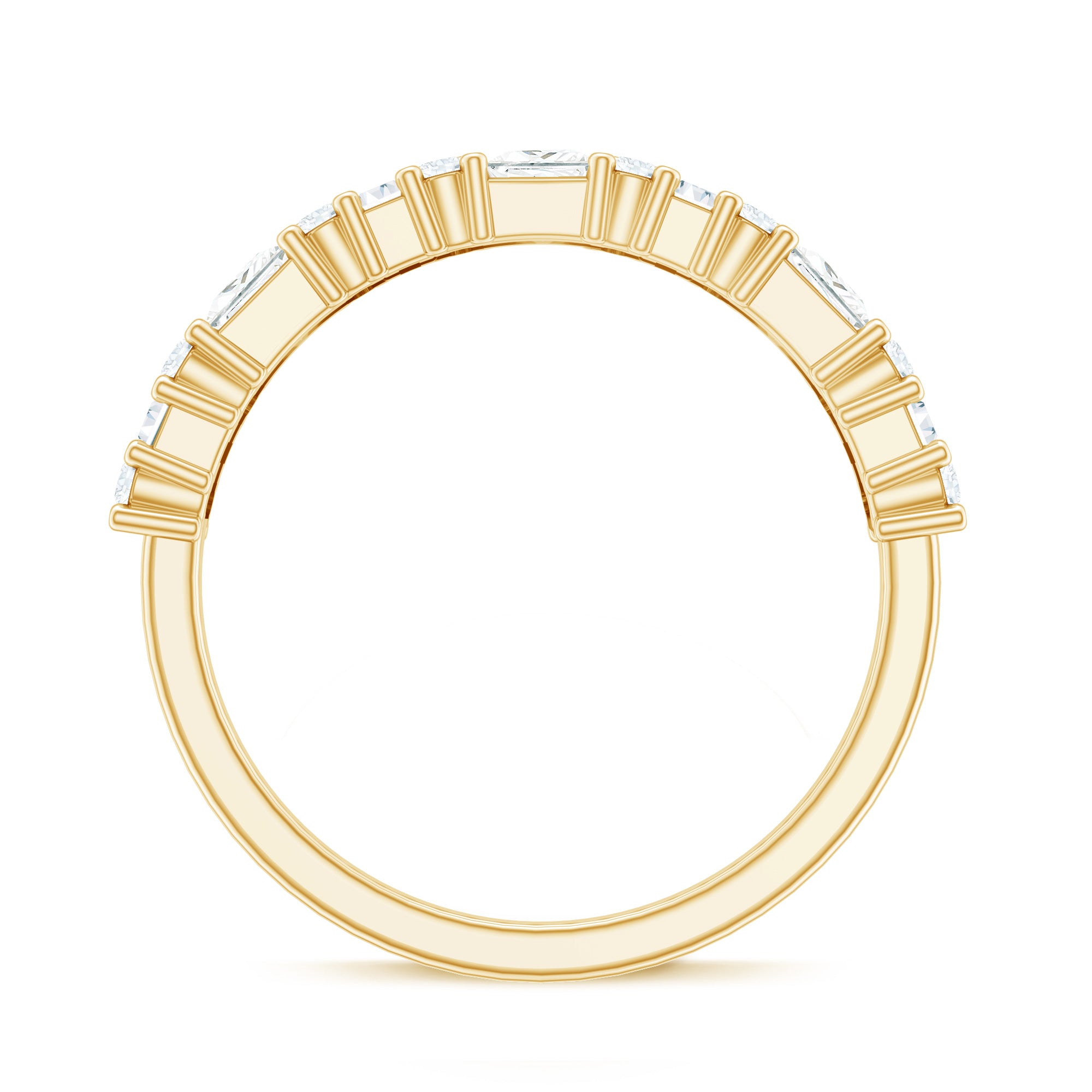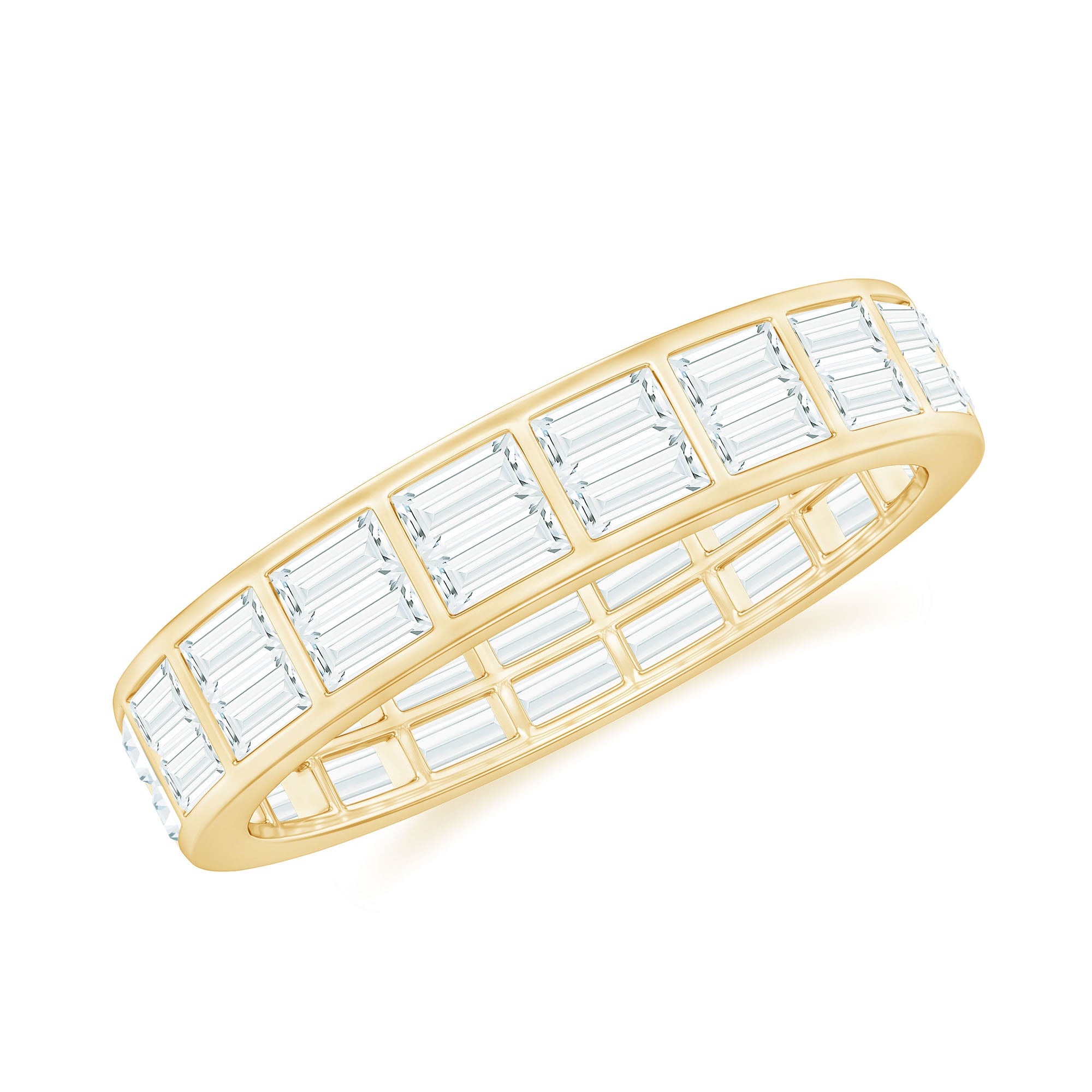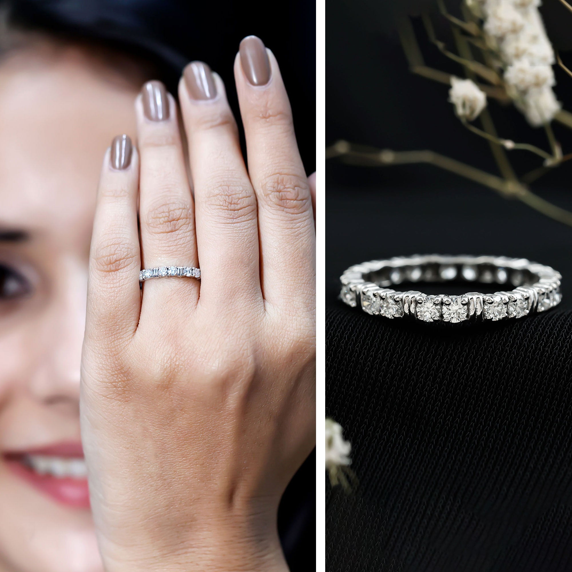 Typically, it is a type of metal ring that features gemstones set in a continuous band around the circumference of the ring. If you’re seeking something simple to flaunt regularly, a band with subtle colored stones such as Morganite, Aquamarine, Moissanite, or a Classic 14K White Gold Gemstone Band could be the one. While if you’re a little more fond of a pop of color, deeply hued stones such as Ruby, Blue Sapphire, Emerald etc., or a Yellow or Rose Gold Gemstone Band might do the job right.