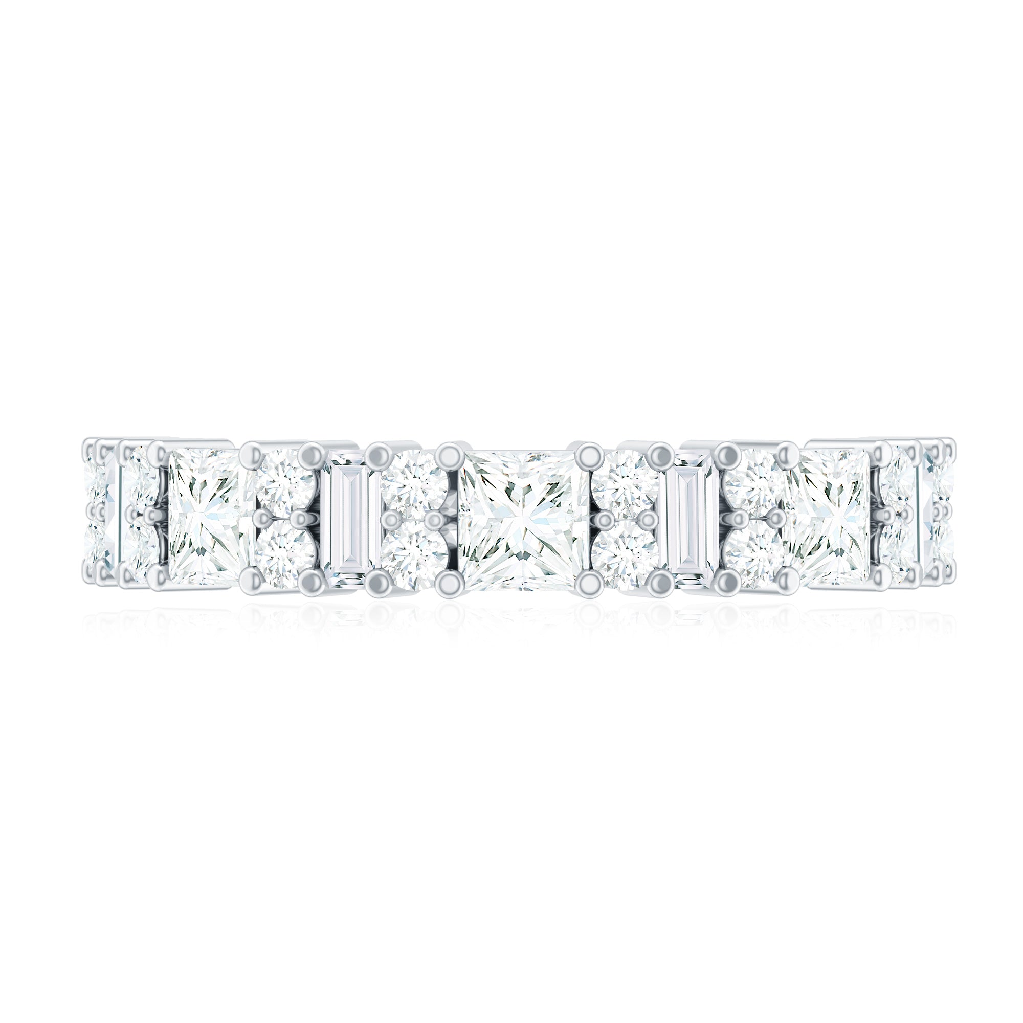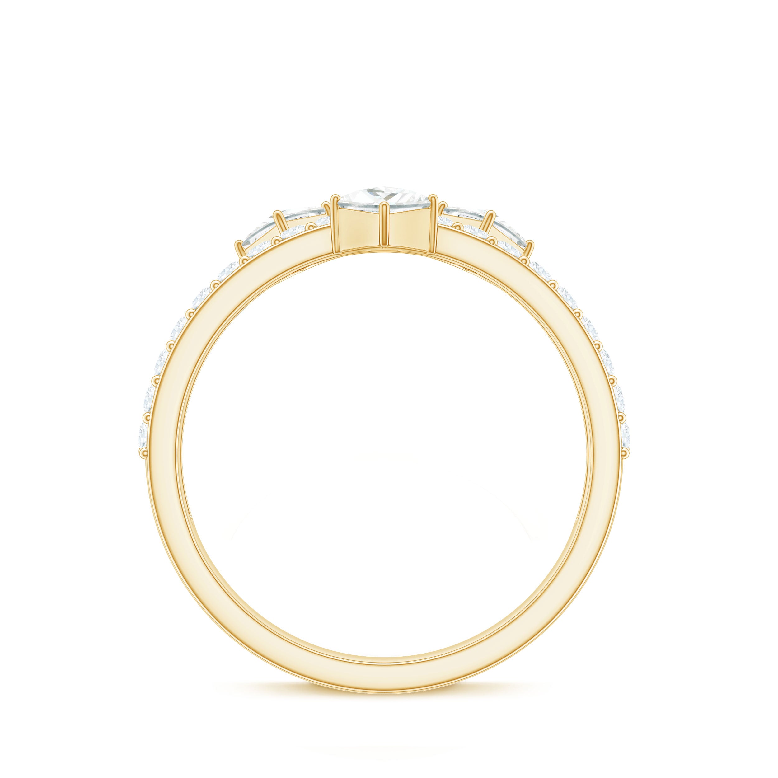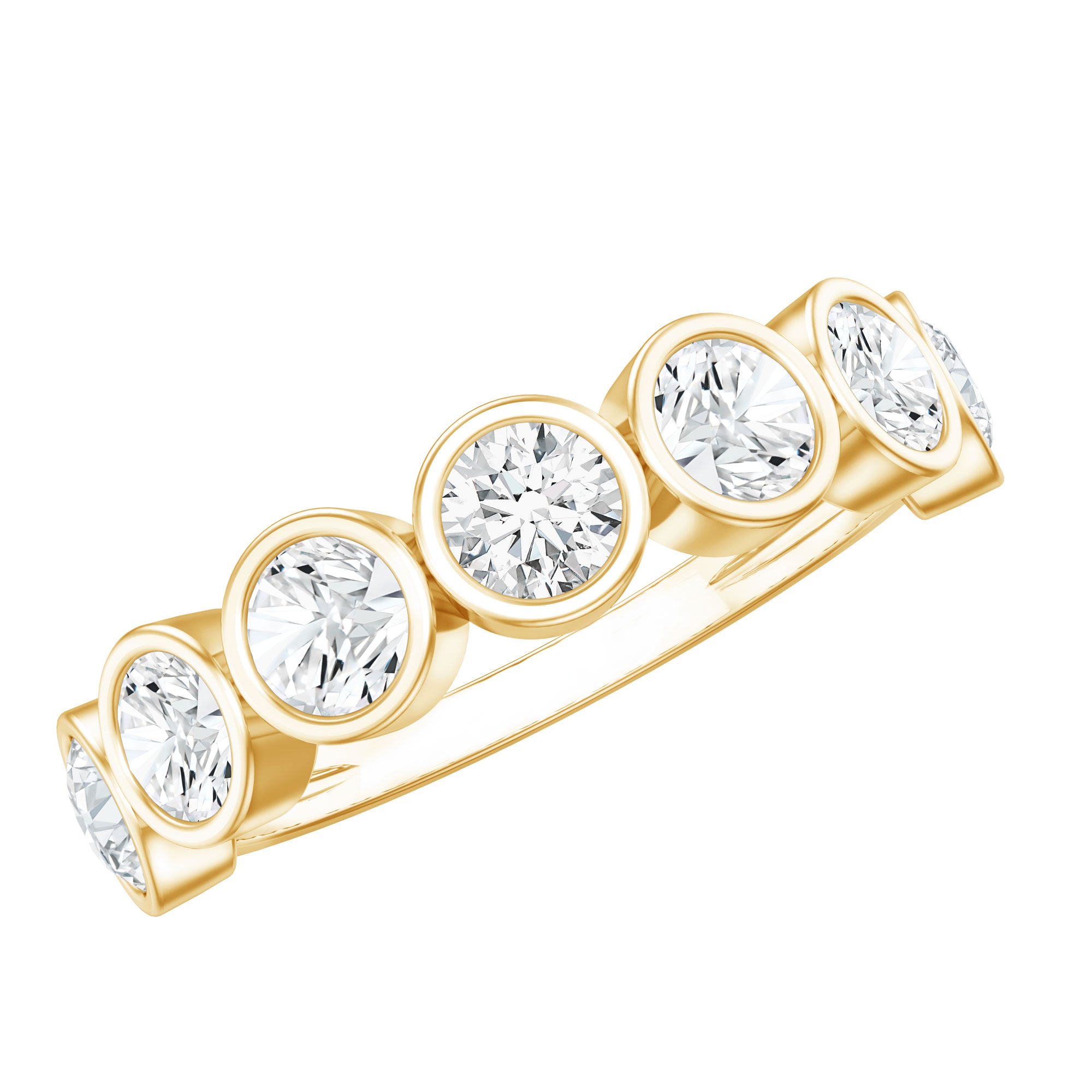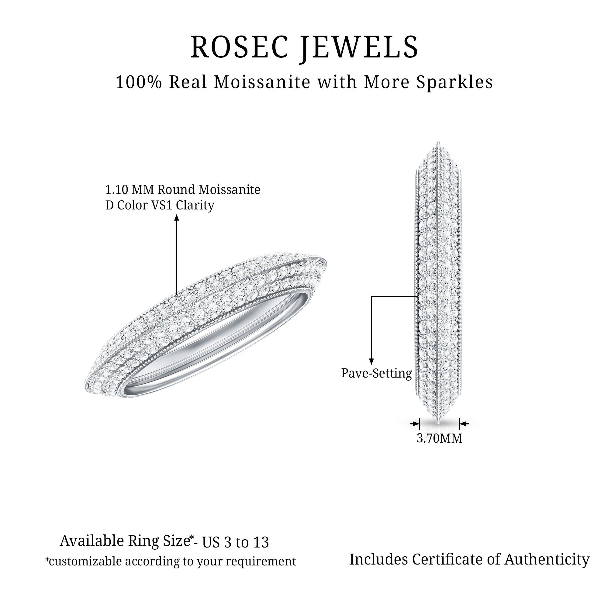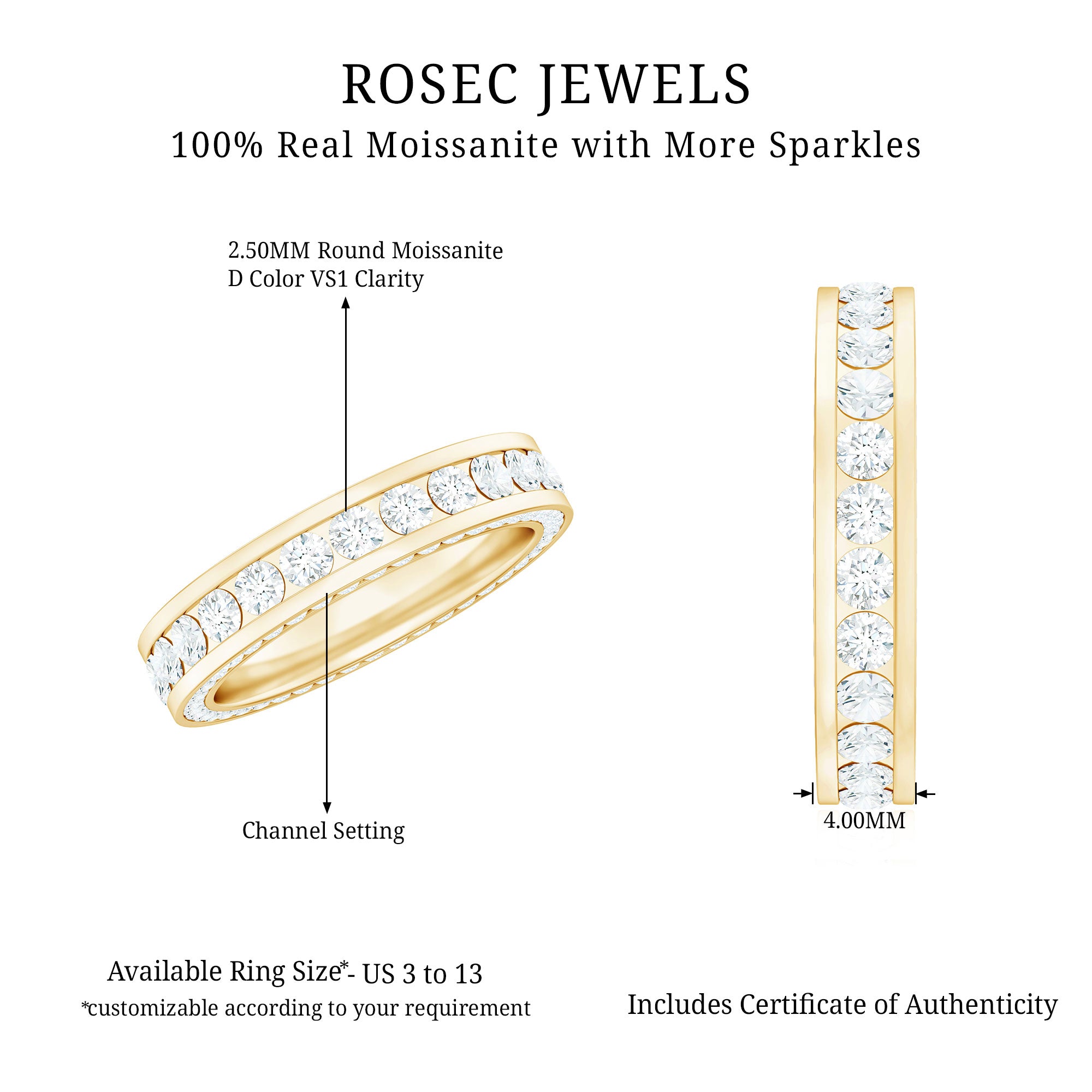 Typically, it is a type of metal ring that features gemstones set in a continuous band around the circumference of the ring. If you’re seeking something simple to flaunt regularly, a band with subtle colored stones such as Morganite, Aquamarine, Moissanite, or a Classic 14K White Gold Gemstone Band could be the one. While if you’re a little more fond of a pop of color, deeply hued stones such as Ruby, Blue Sapphire, Emerald etc., or a Yellow or Rose Gold Gemstone Band might do the job right.