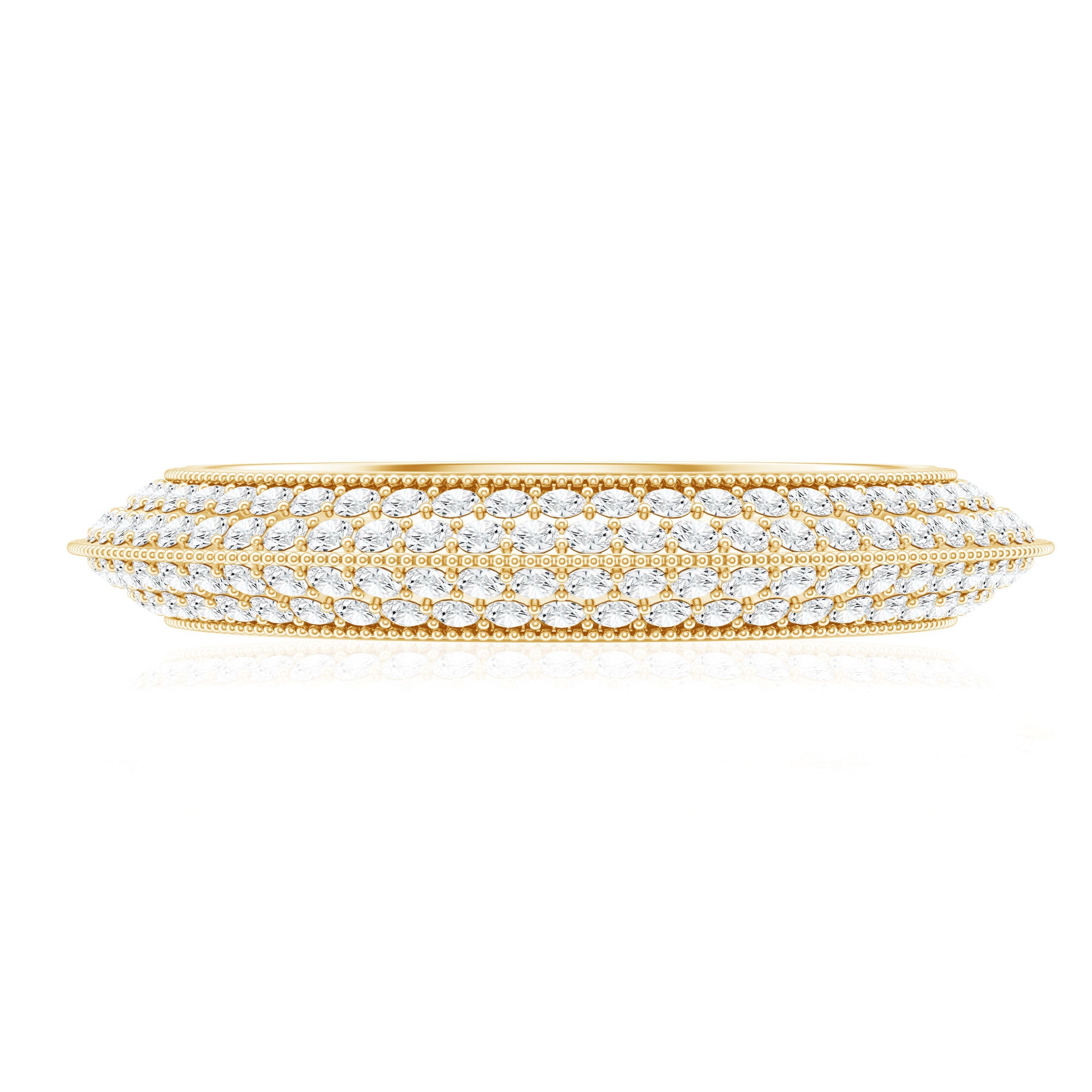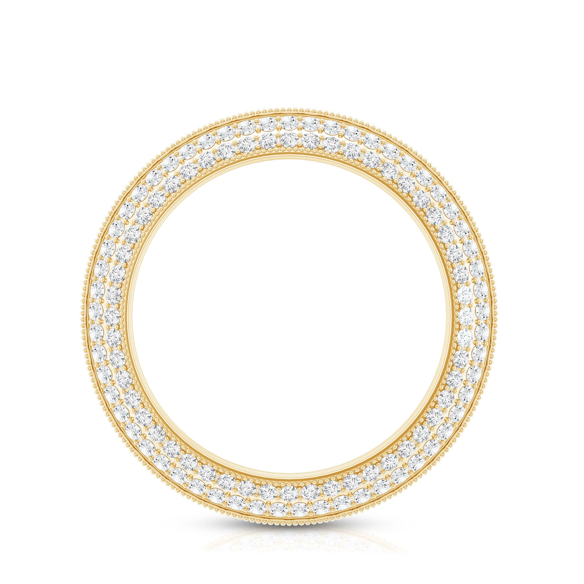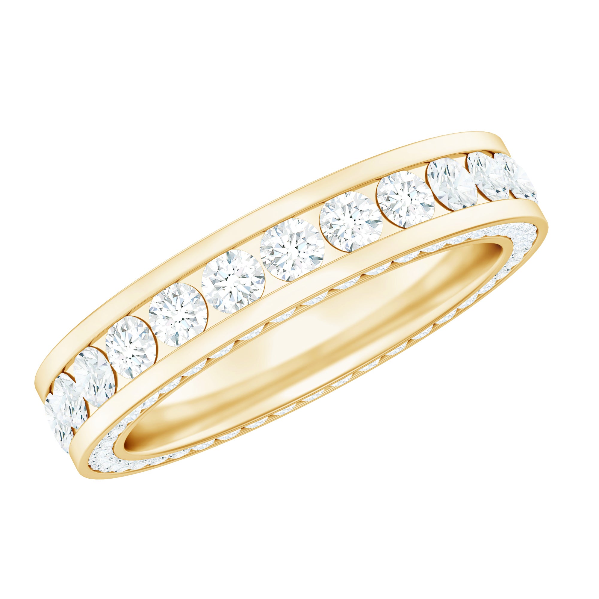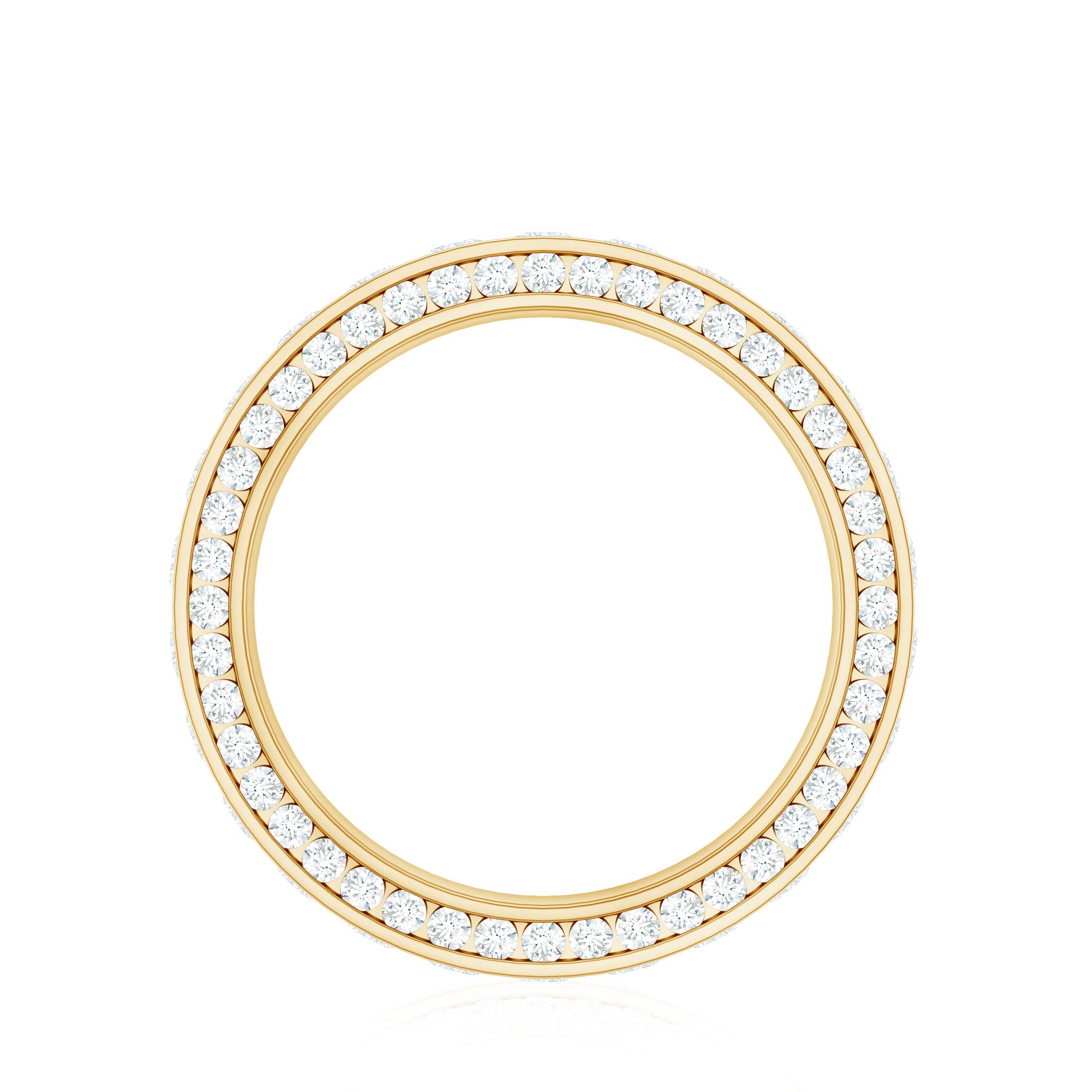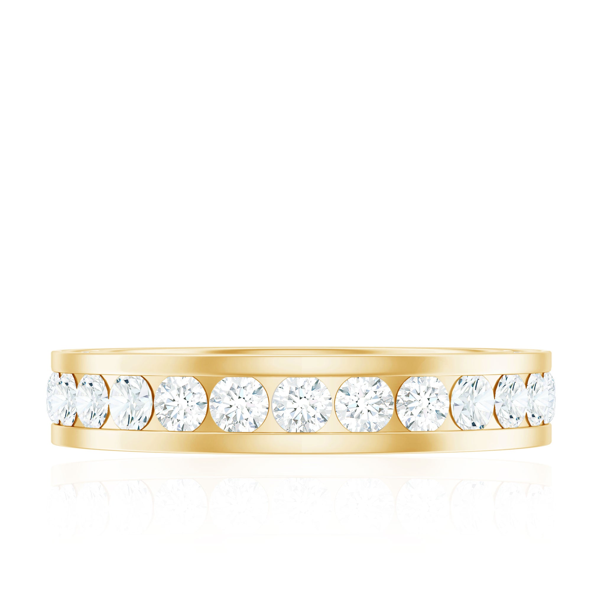 Nothing commemorates eternal love better than gemstone eternity bands. The style itself is enough to speak of that. Well, Eternity Bands feature a row of uniformly sized gemstones studded all along the band in an unbreakable circle (reflecting on your everlasting love). Eternity Bands in our collection can be adorned with the most classic colored stones or even more flashy ones, all crafted in white, yellow, and rose gold.