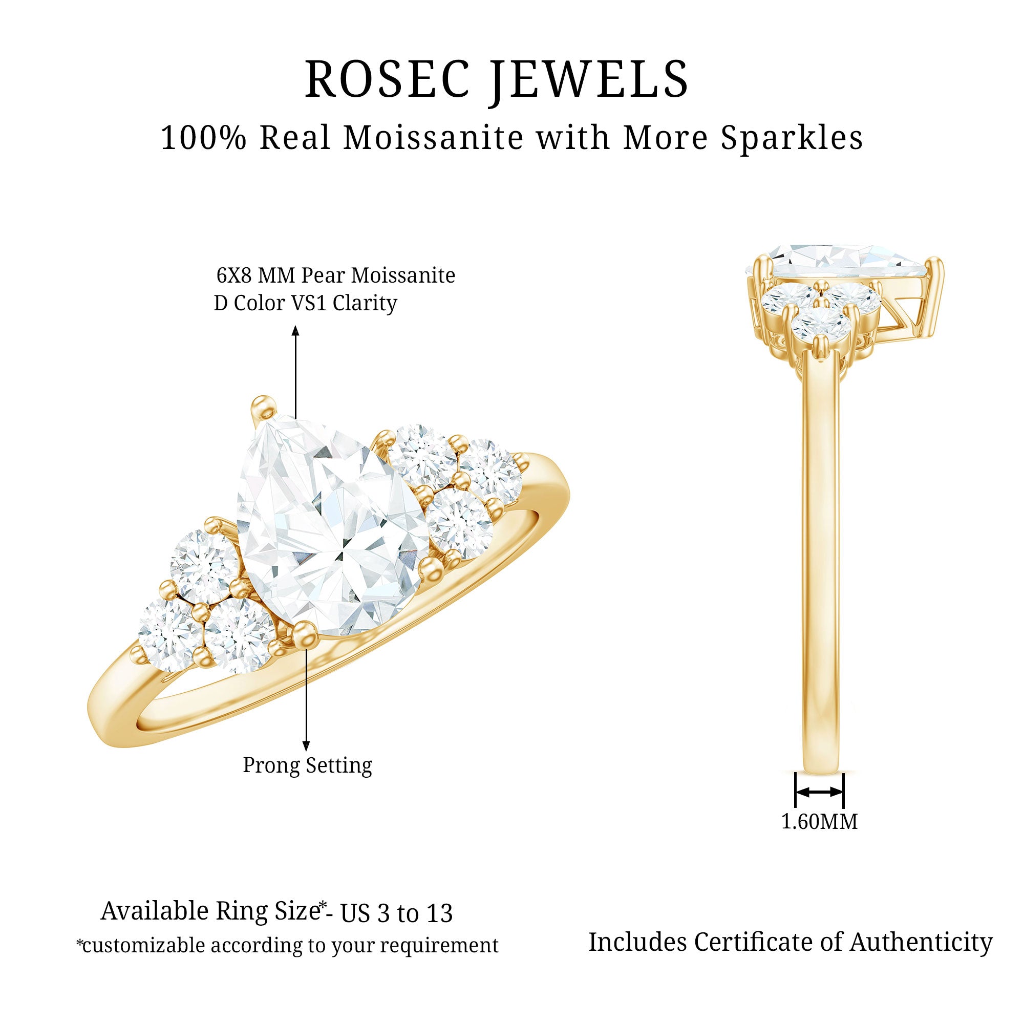 • Hallmarked Gold: The Gold we ornament each of your ring in has also been hallmarked. The hallmark on the gold reflects on the purity of the gold, which is expressed in terms of karats or fineness. It assures you of the genuineness of the gold. Please note that we only handcraft rings in 14K Gold since it strikes the perfect balance between durability and purity.