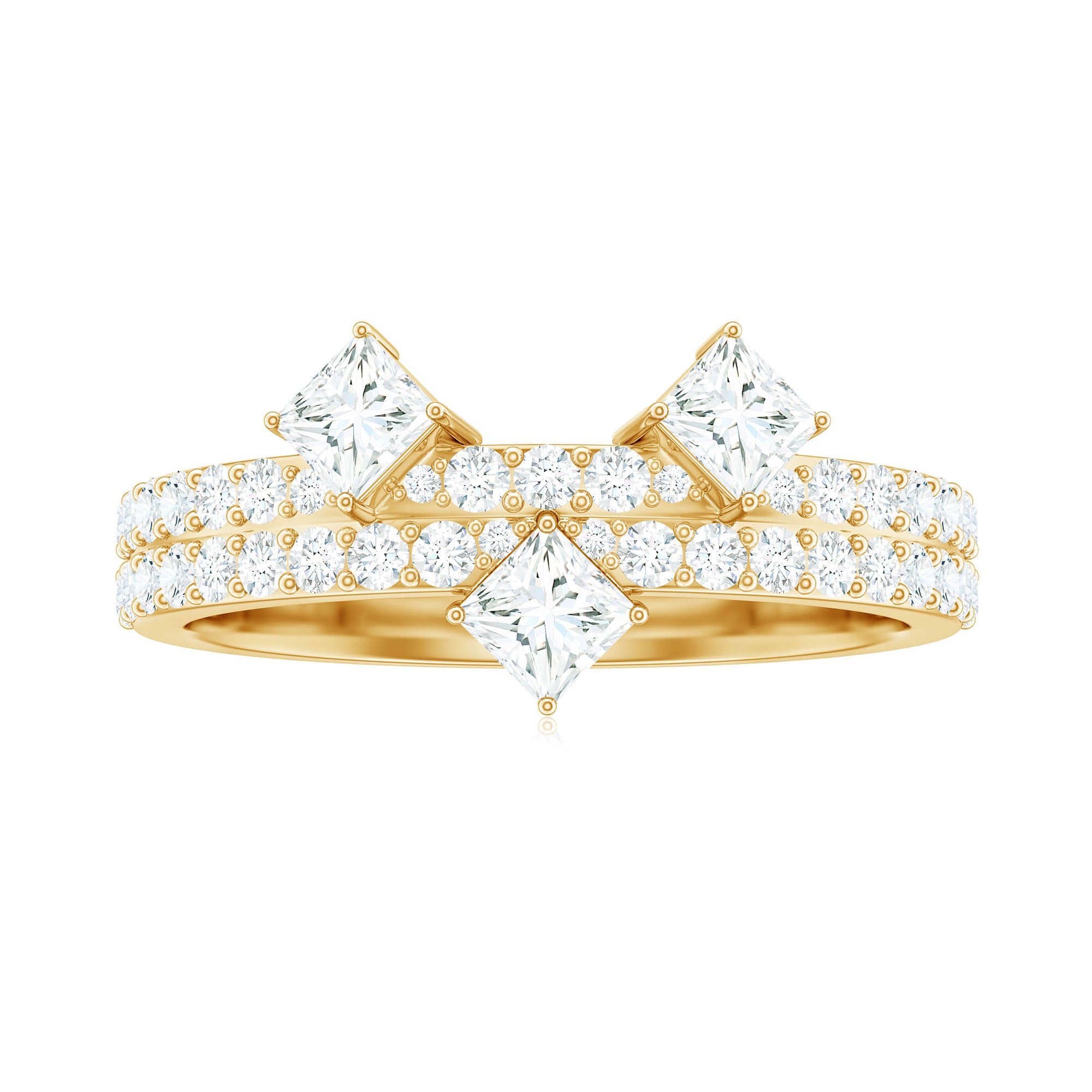 Wish to know a little secret? Not only does it sparkle at its best, but also deceives your eye by offering the illusion of a bigger center stone. So, you could totally take it to mean that it offers you the best of both worlds, making it one of the most unique gemstone rings for women out there!