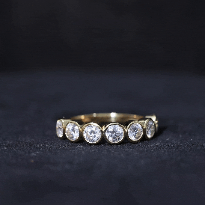 A Gemstone Half Eternity Ring is much like an eternity ring. The only difference lies in the fact that in a half eternity ring, the gemstones are studded half the way along the circular band. Apart from that, the symbolism remains unchanged.