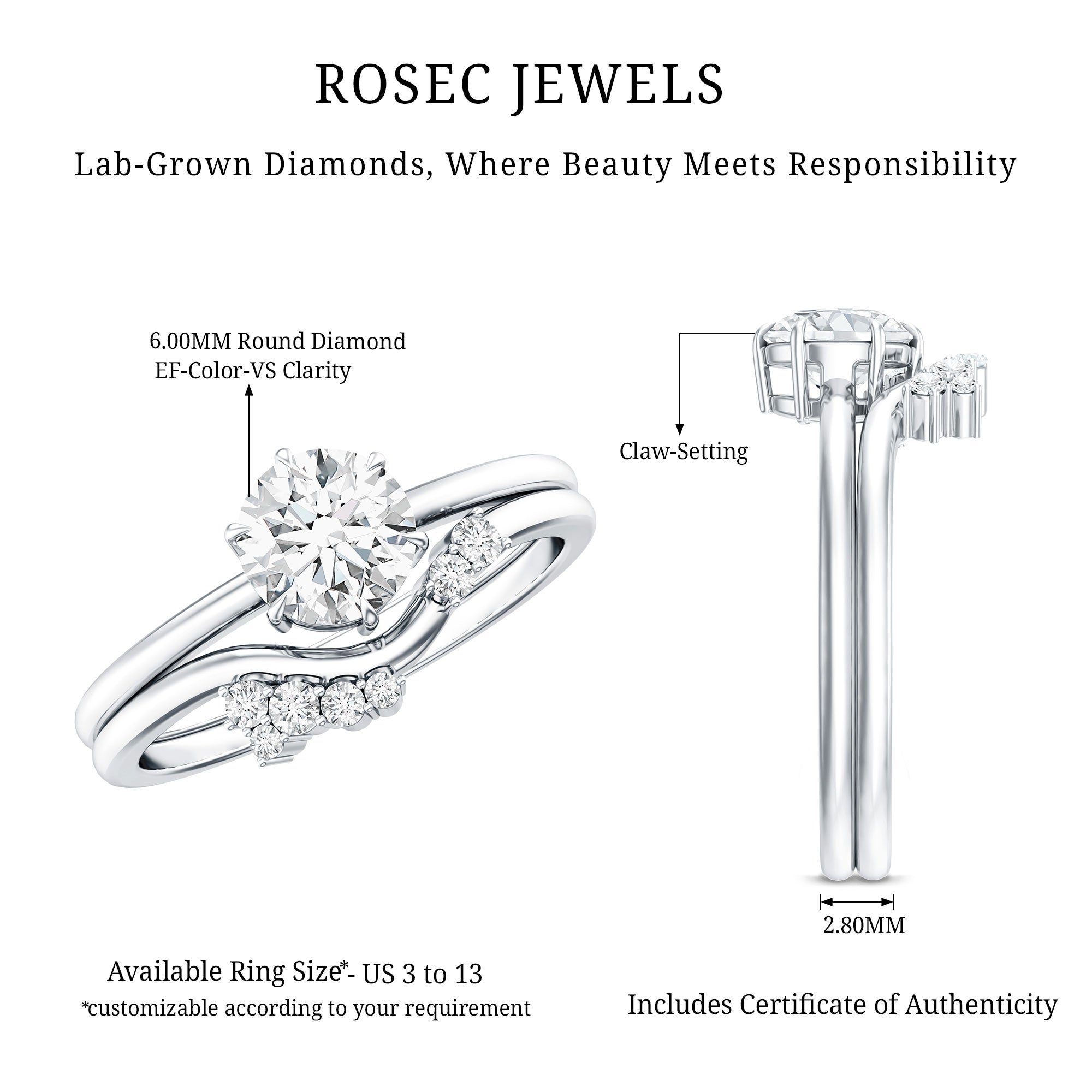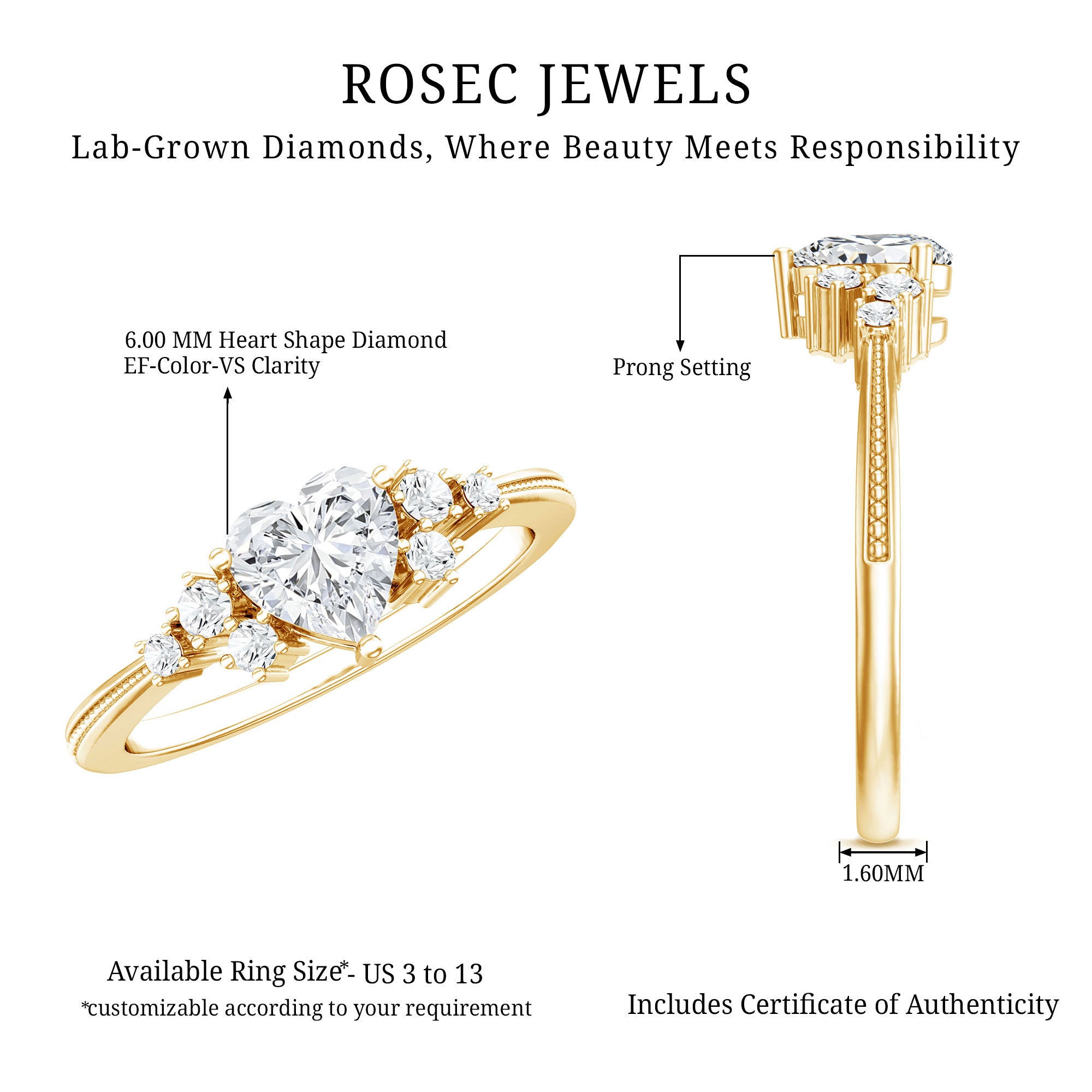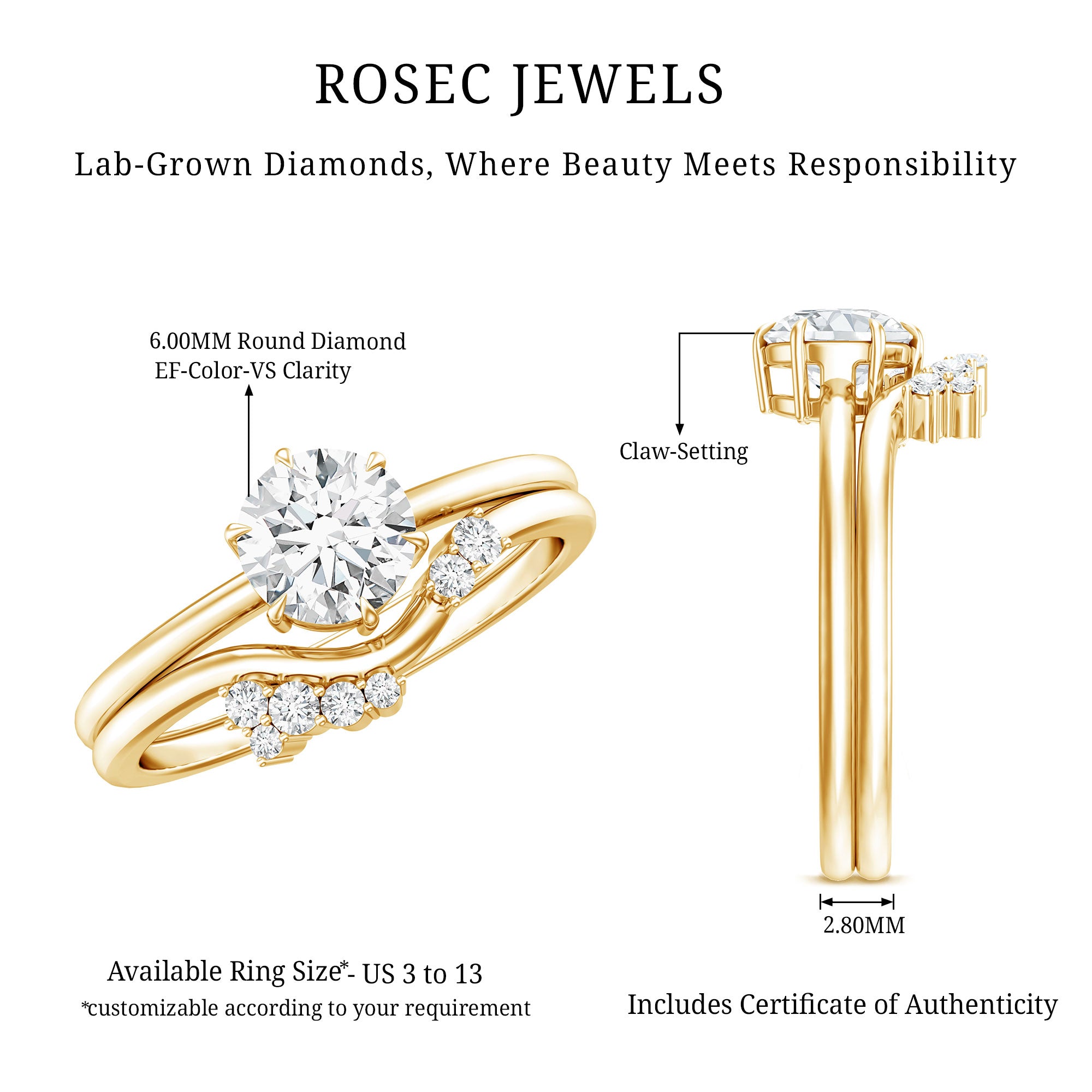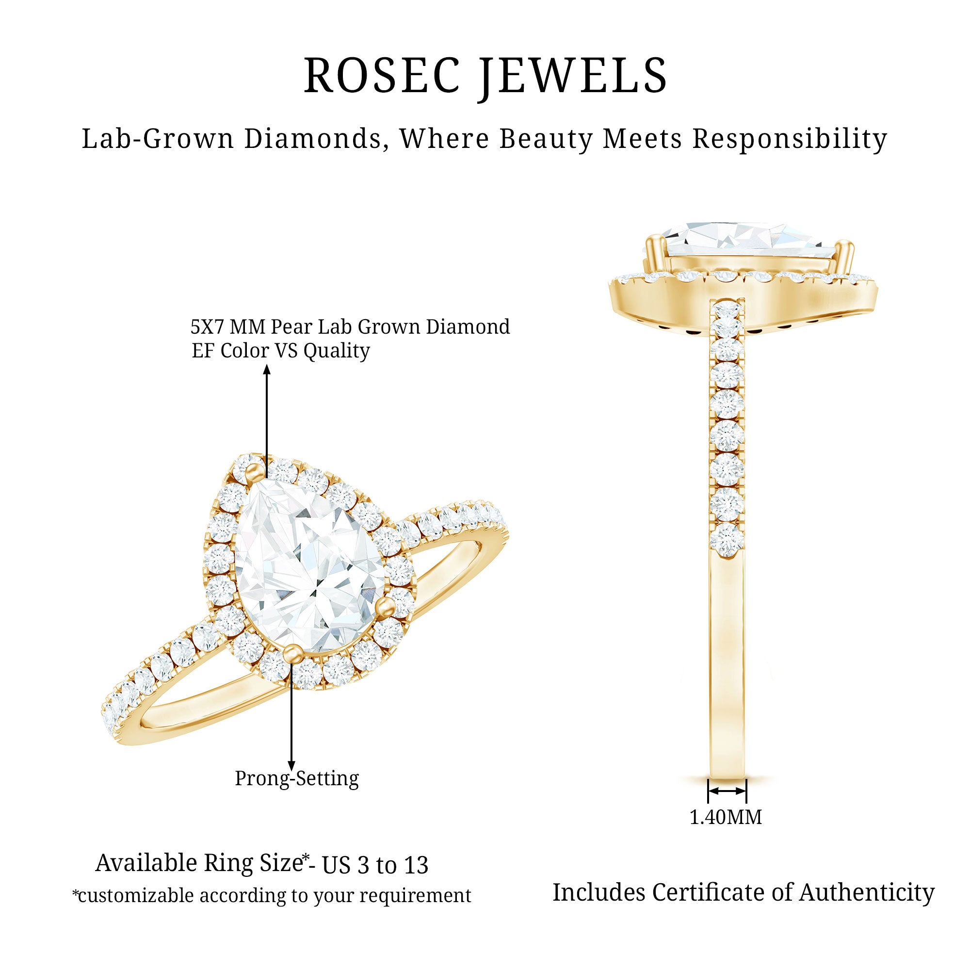 • Hallmarked Gold: The Gold we ornament each of your ring in has also been hallmarked. The hallmark on the gold reflects on the purity of the gold, which is expressed in terms of karats or fineness. It assures you of the genuineness of the gold. Please note that we only handcraft rings in 14K Gold since it strikes the perfect balance between durability and purity.