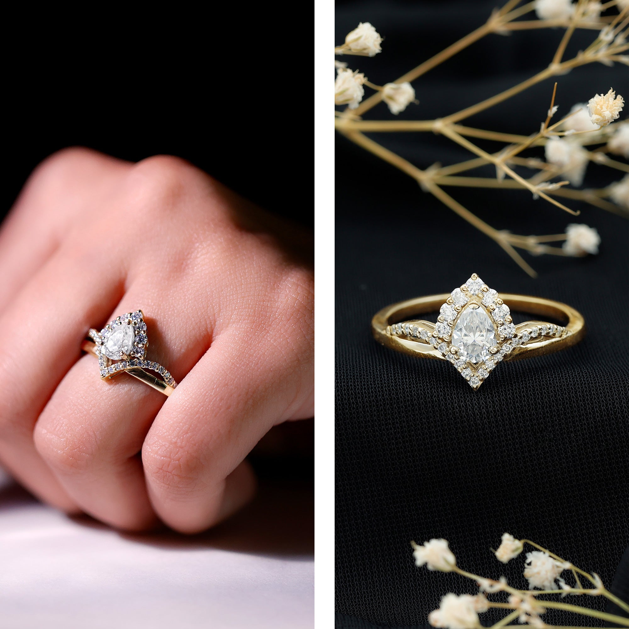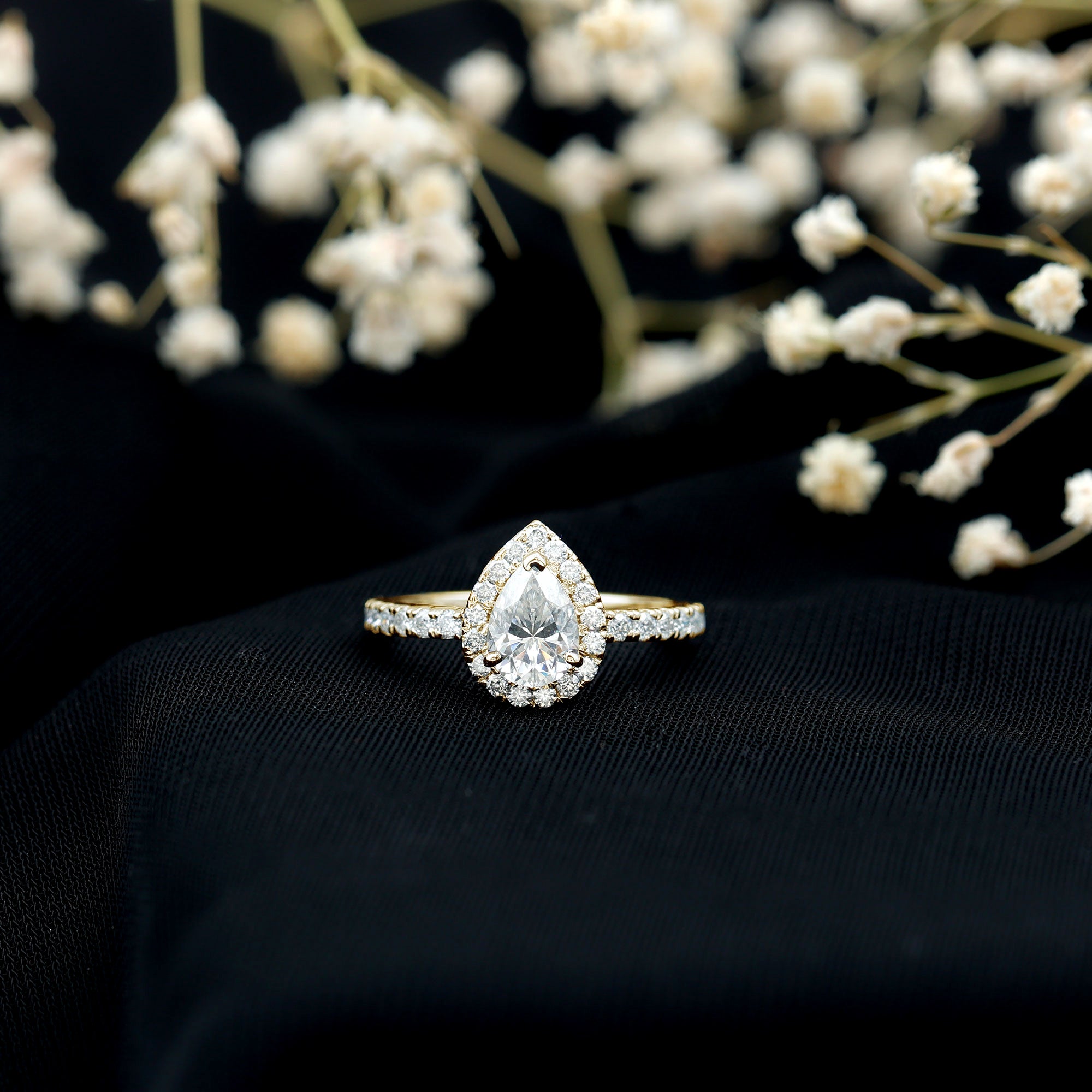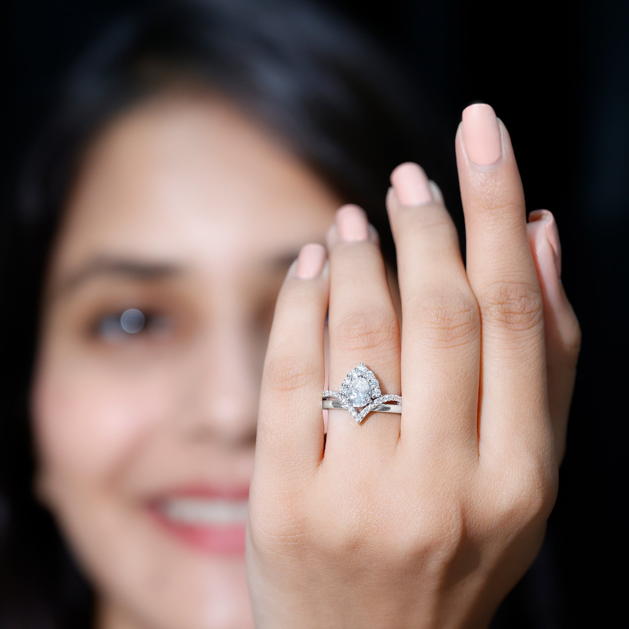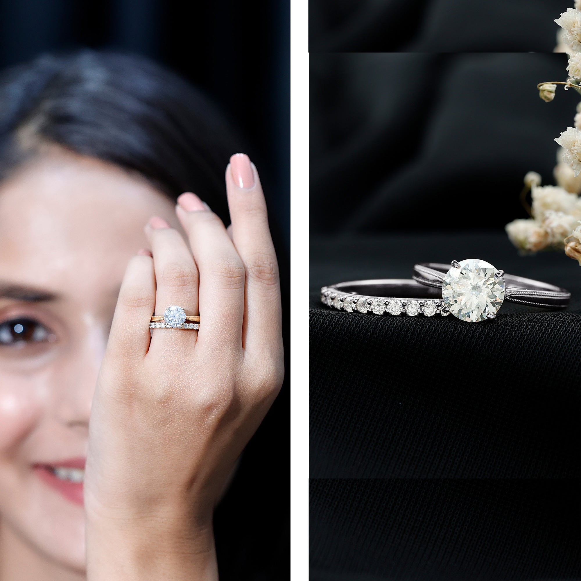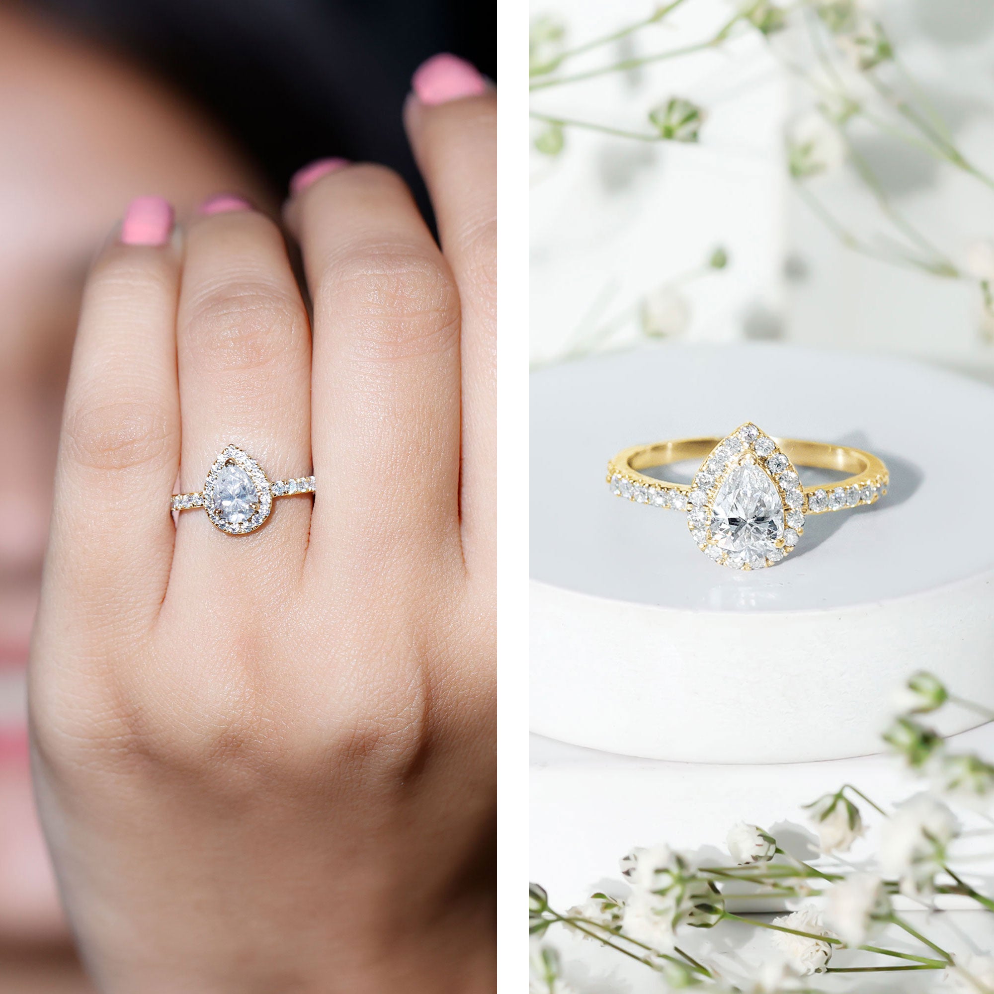 An added layer of sparkle is always a big yes! And that’s practically what drives the appeal for Gemstone Halo Rings. That’s because this style is all about sparkles and is characterized by a row of petite stones (usually diamond or moissanite) that encircle the center stone. Also, a pop of color of a colored gemstone accompanied by brilliance of diamonds/moissanite can get too hard to resist.